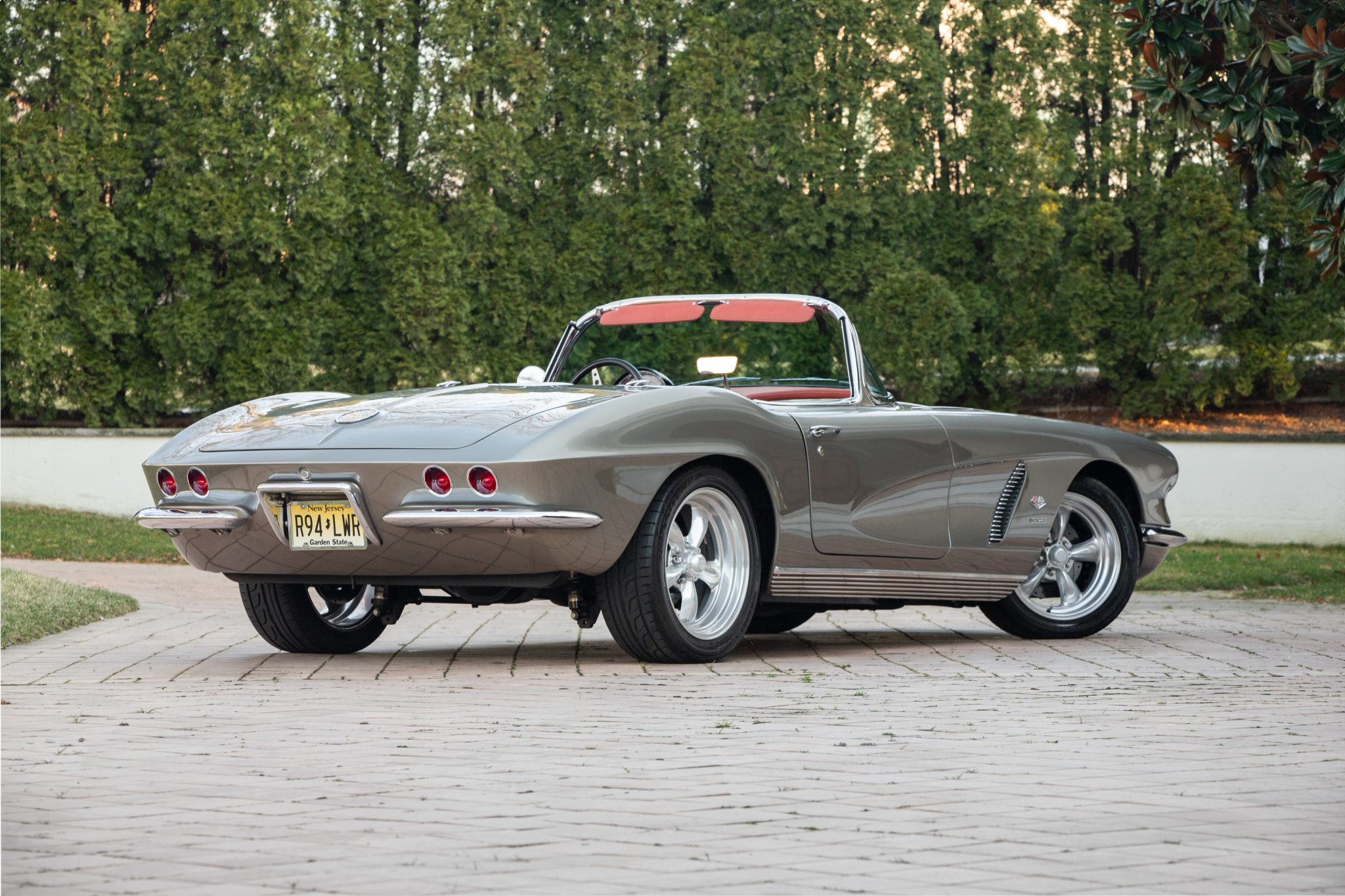 The polished American Racing Torq Thrust wheels are mounted with 215/50R17 front and 245/45R18 rear Bridgestone Potenza RE760 Sport tires. A replacement frame was reportedly fitted during the 2010s refurbishment along with a four-link rear suspension, front and rear sway bars, QA1 adjustable shocks, and a Martz front suspension kit. Stopping power is provided by Wilwood four-wheel disc brakes.
