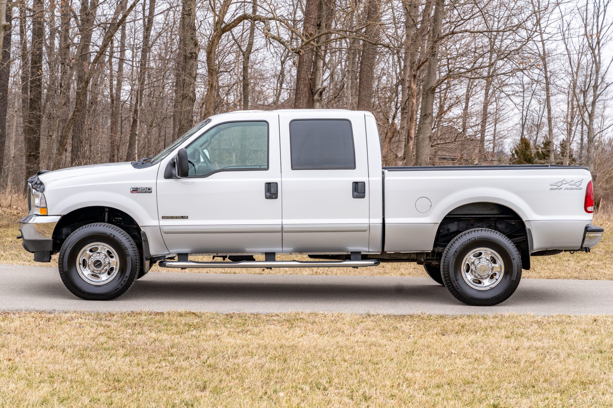 Polished 16″ wheels wear 285/75 Michelin LTX M/S2 tires. Equipment includes four-wheel disc brakes as well as manually locking front hubs. A spare wheel and tire are mounted beneath the bed.