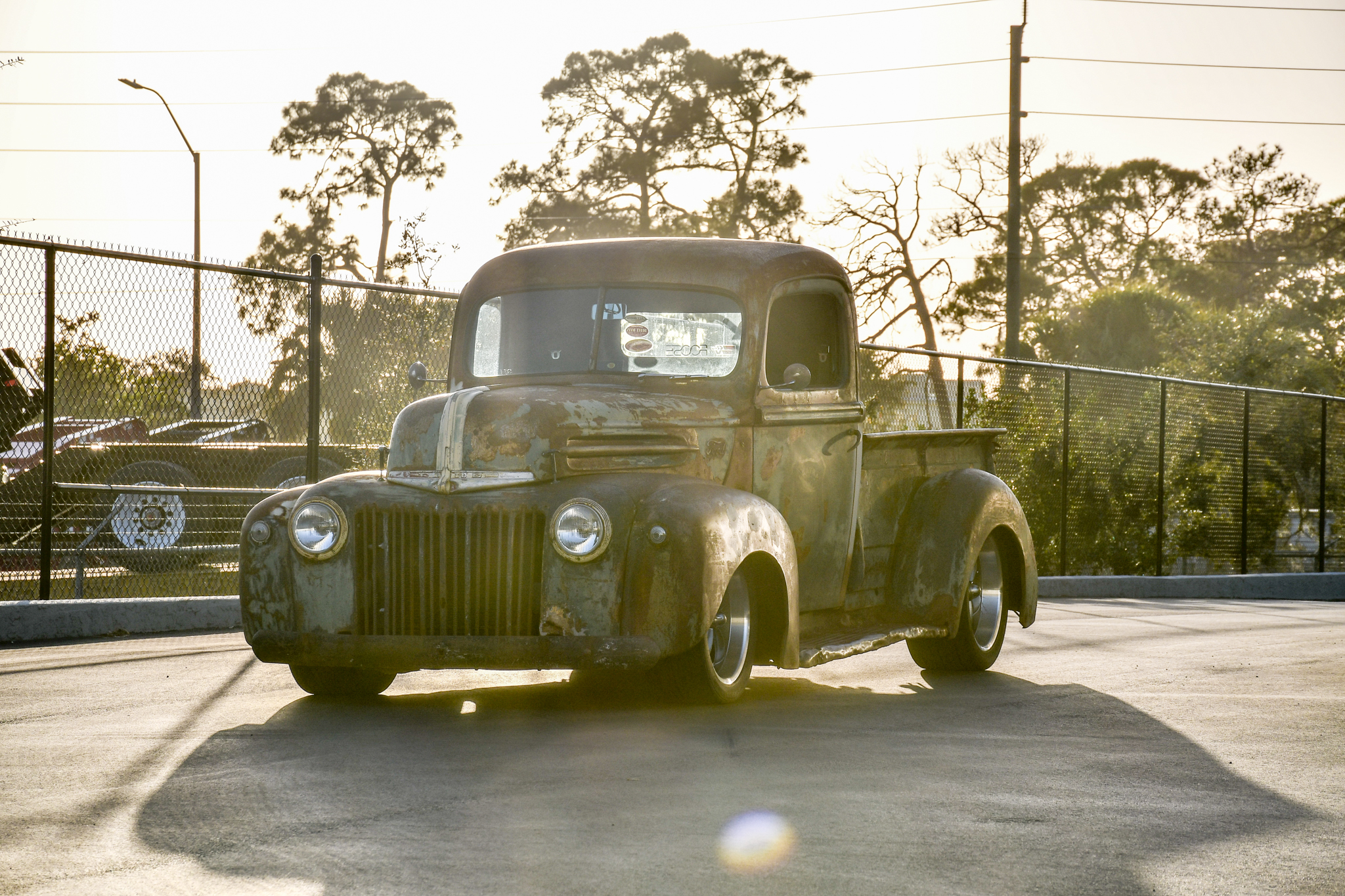 Ridler 17″ wheels feature polished lips and are mounted with Nitto NT-555 tires. The truck rides on a 1988 Chevrolet S-10 frame and a lowered suspension, while braking is handled by four-wheel Wilwood discs.