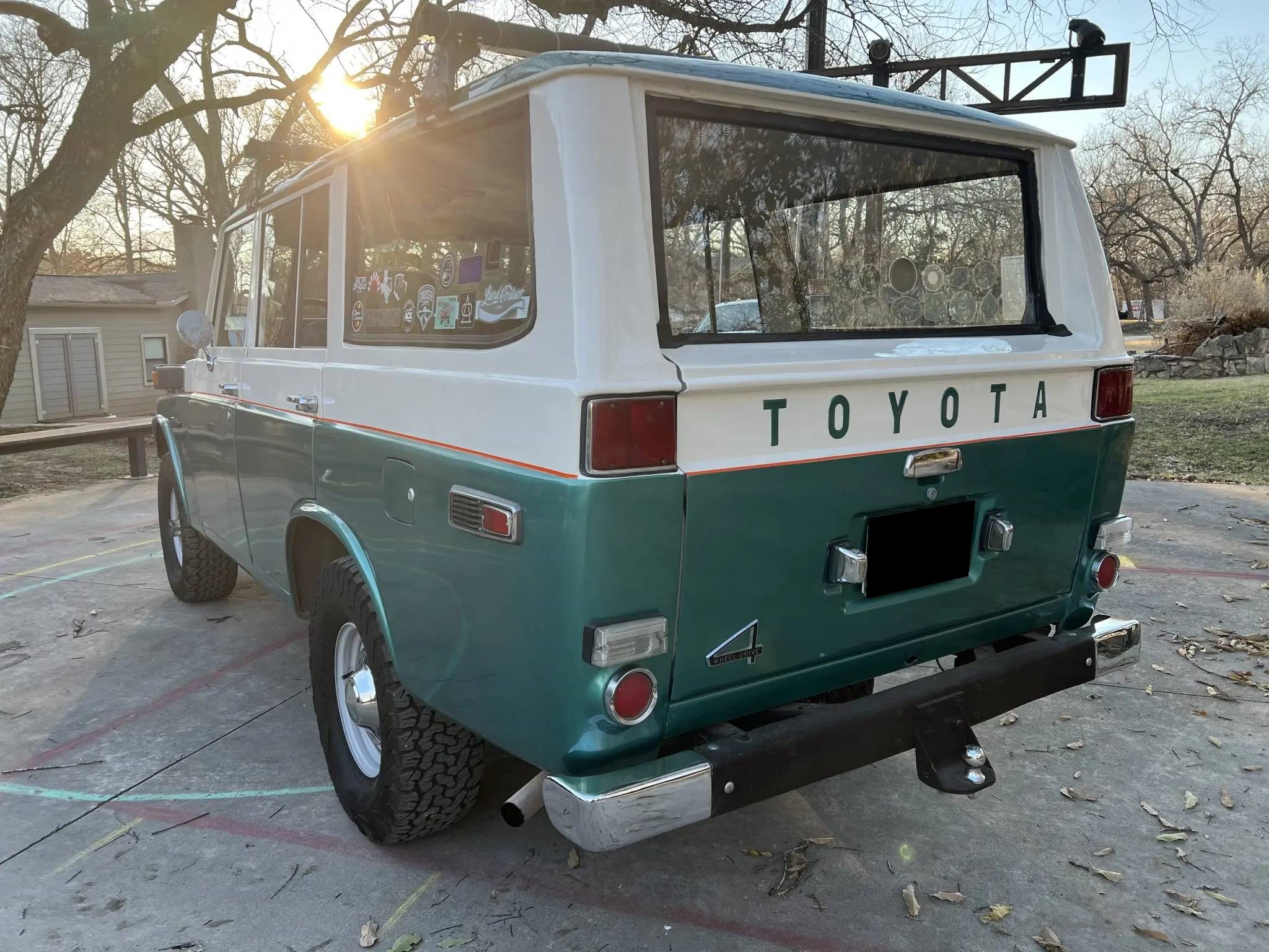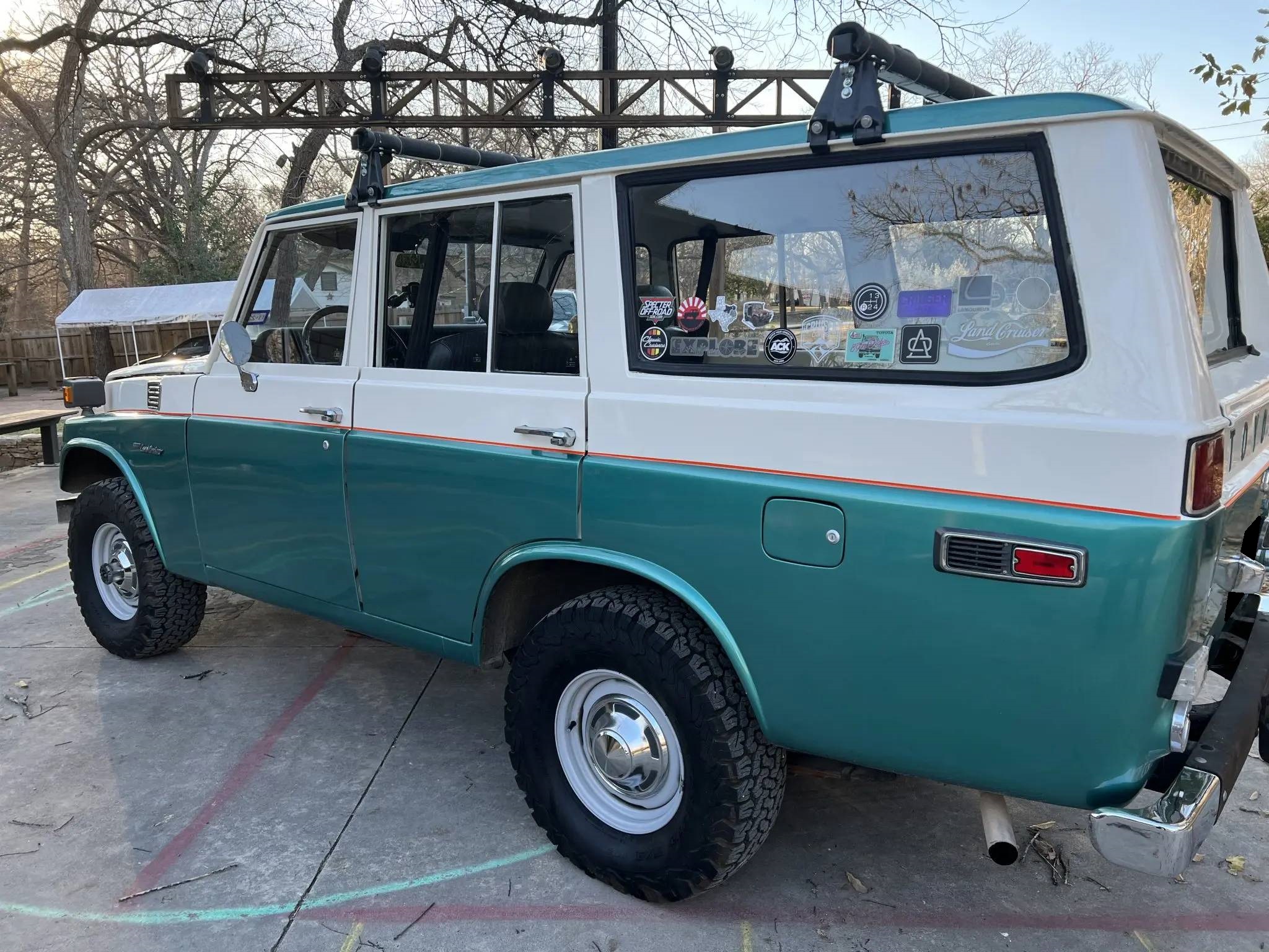 Slotted 15″ steel wheels with chrome hubcaps are fitted over manually locking front hubs and mounted with 31×10.5″ BFGoodrich All-Terrain T/A KO2 tires. The truck is equipped with power steering, and during current ownership, the suspension system was reportedly overhauled with replacement shock absorbers, and rear disc brakes were installed in place of the factory drums.