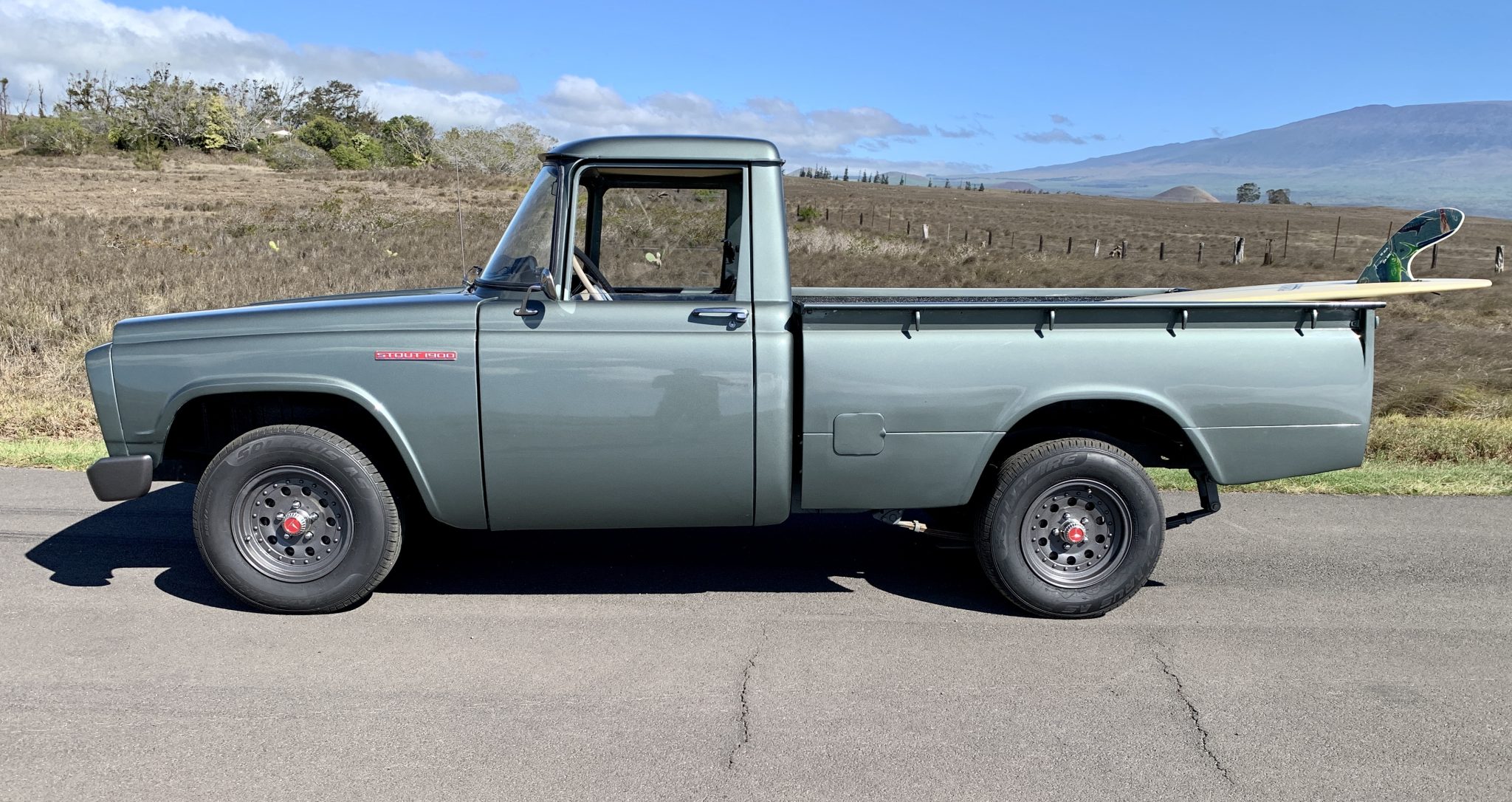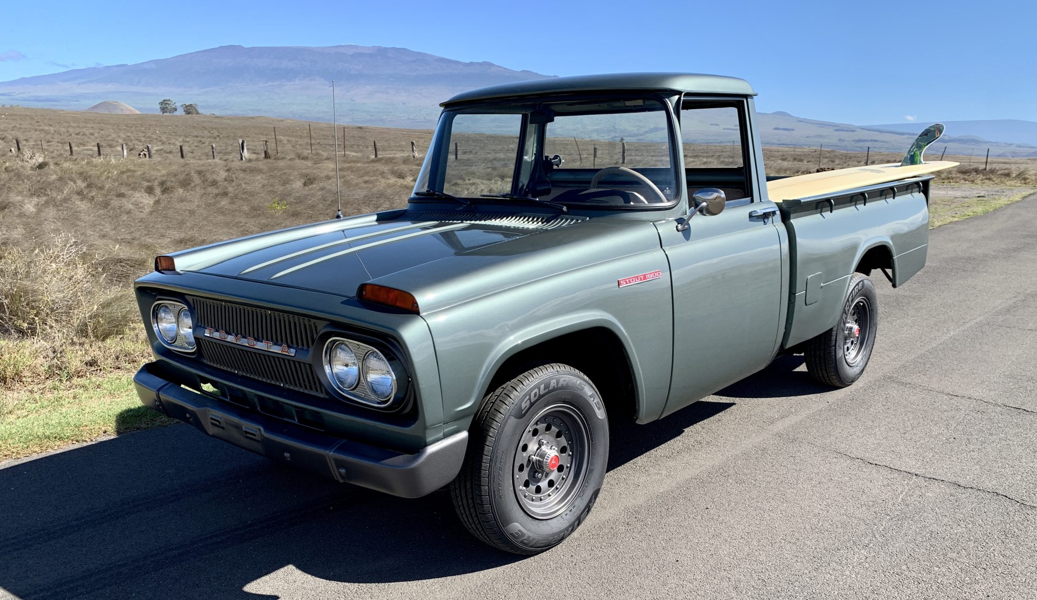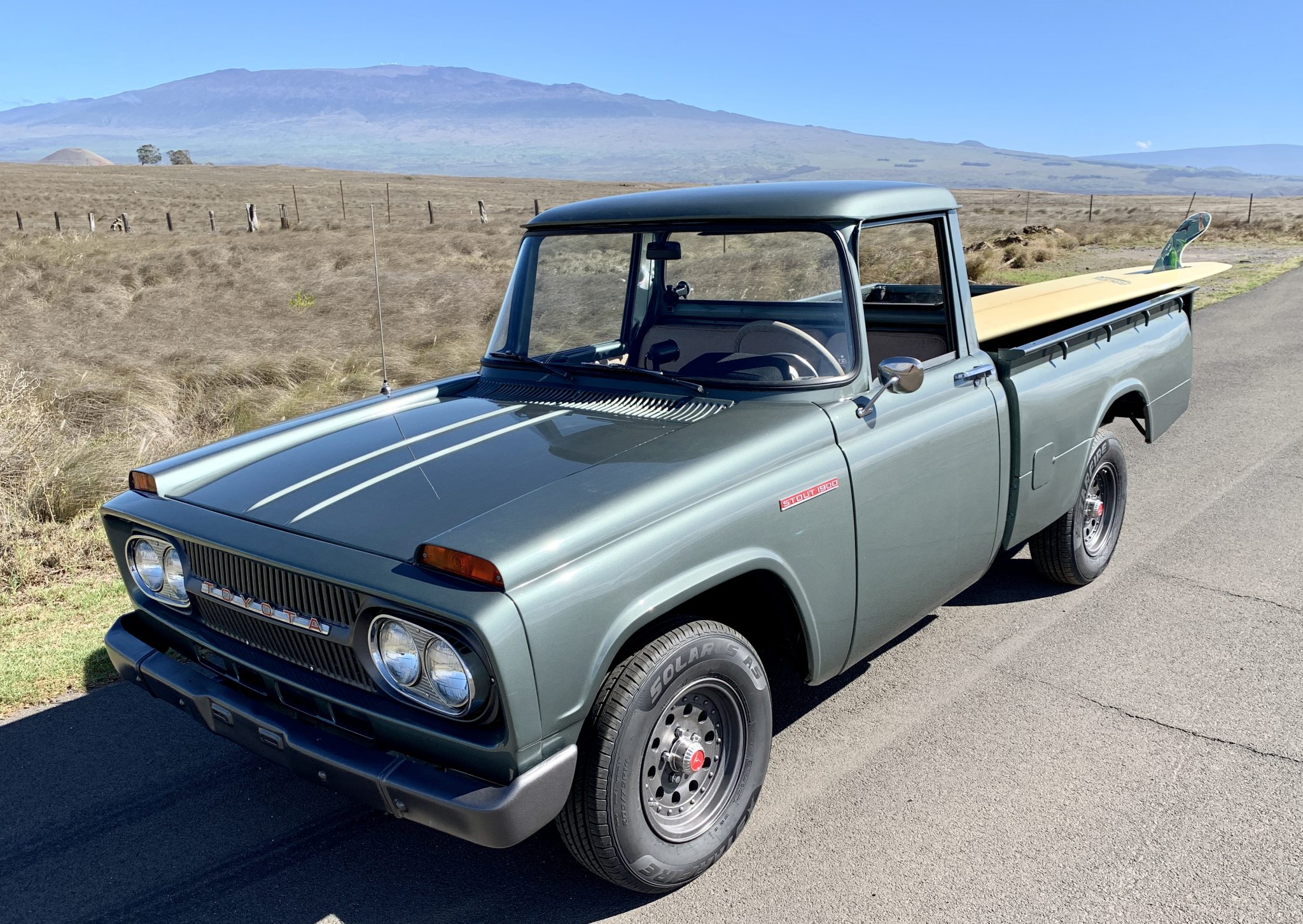 Aluminum 14″ wheels wear Toyota SR center caps and are wrapped in 205/75 Starfire Solarus AS tires said to have been mounted in 2021. The brakes are equipped with a dual-circuit master cylinder and stainless steel lines, and work performed during current ownership is said to include refinishing the wheels in dark metallic grey along with a brake fluid flush, an alignment, and replacement of the front sway bar adapters and rear shocks.