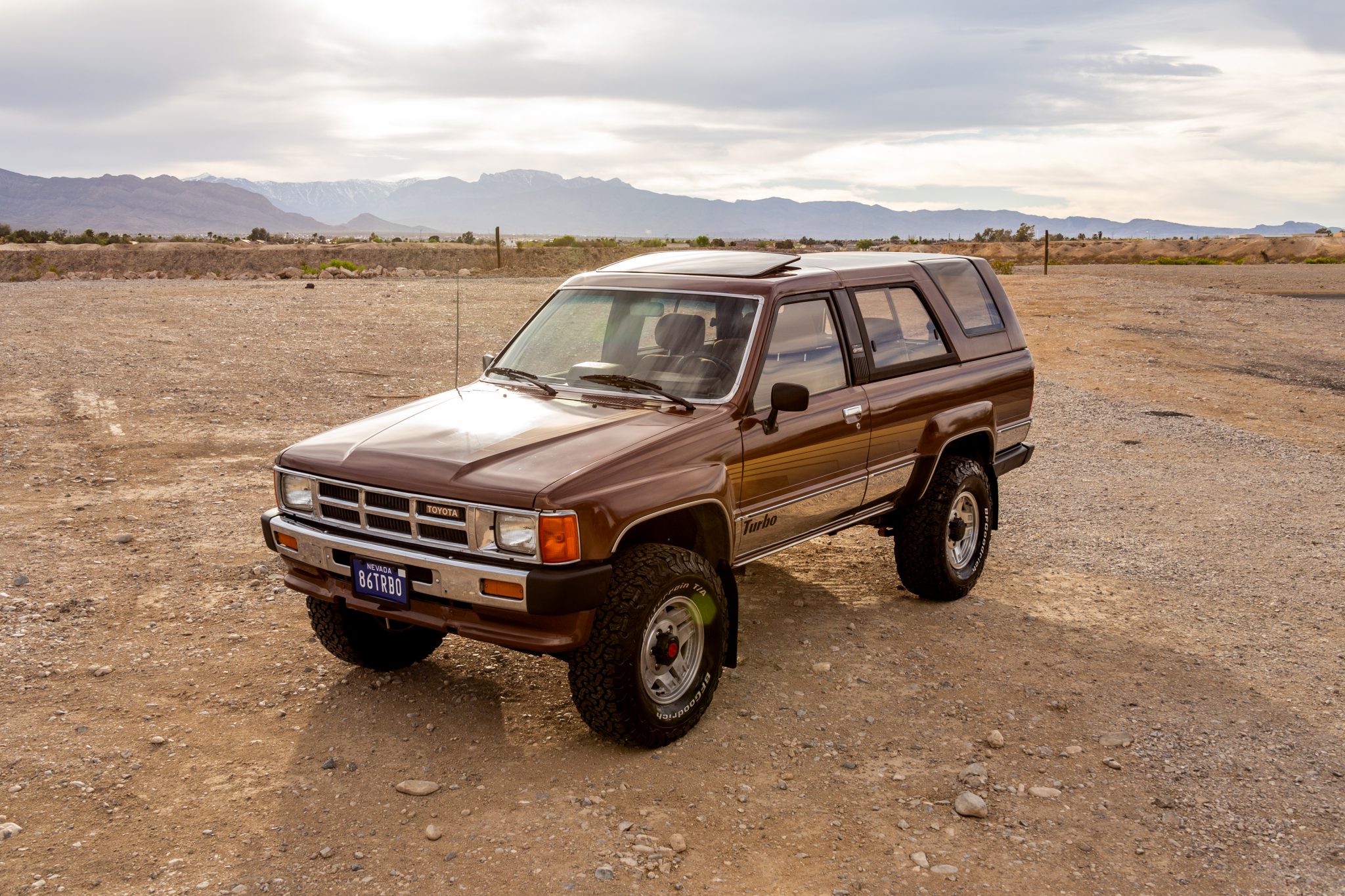 Polished 15″ alloy wheels are mounted with 31×10.5″ BFGoodrich All-Terrain KO2 tires. The truck is equipped with manually locking front hubs and Bilstein shocks. The tie rods, shocks, brake components, steering damper, wheel bearings, and upper and lower ball joints are said to have been replaced under current ownership.