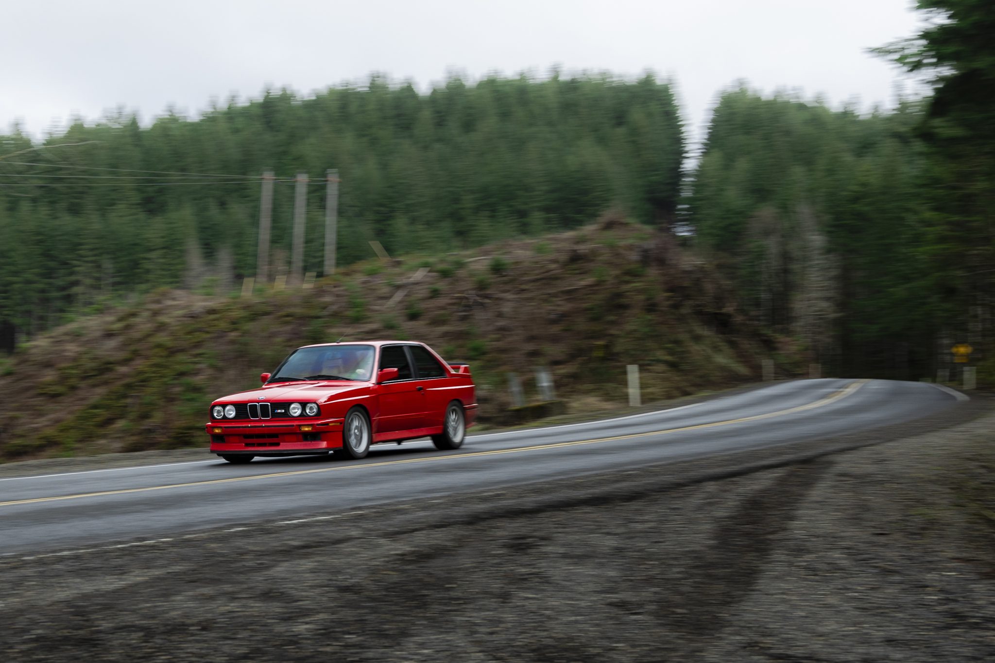 Aftermarket 16″ Hartge wheels are wrapped in 225/45 front and 245/45 rear Toyo Proxes R888 tires. Modifications reportedly consist of aluminum front control arms, polyurethane control arm bushings, a Racing Dynamics front strut brace, H&R 15mm spacers, and a Dinan S3 suspension package that included updated shocks, springs, and sway bars. A removed set of style 5 wheels is included in the sale.