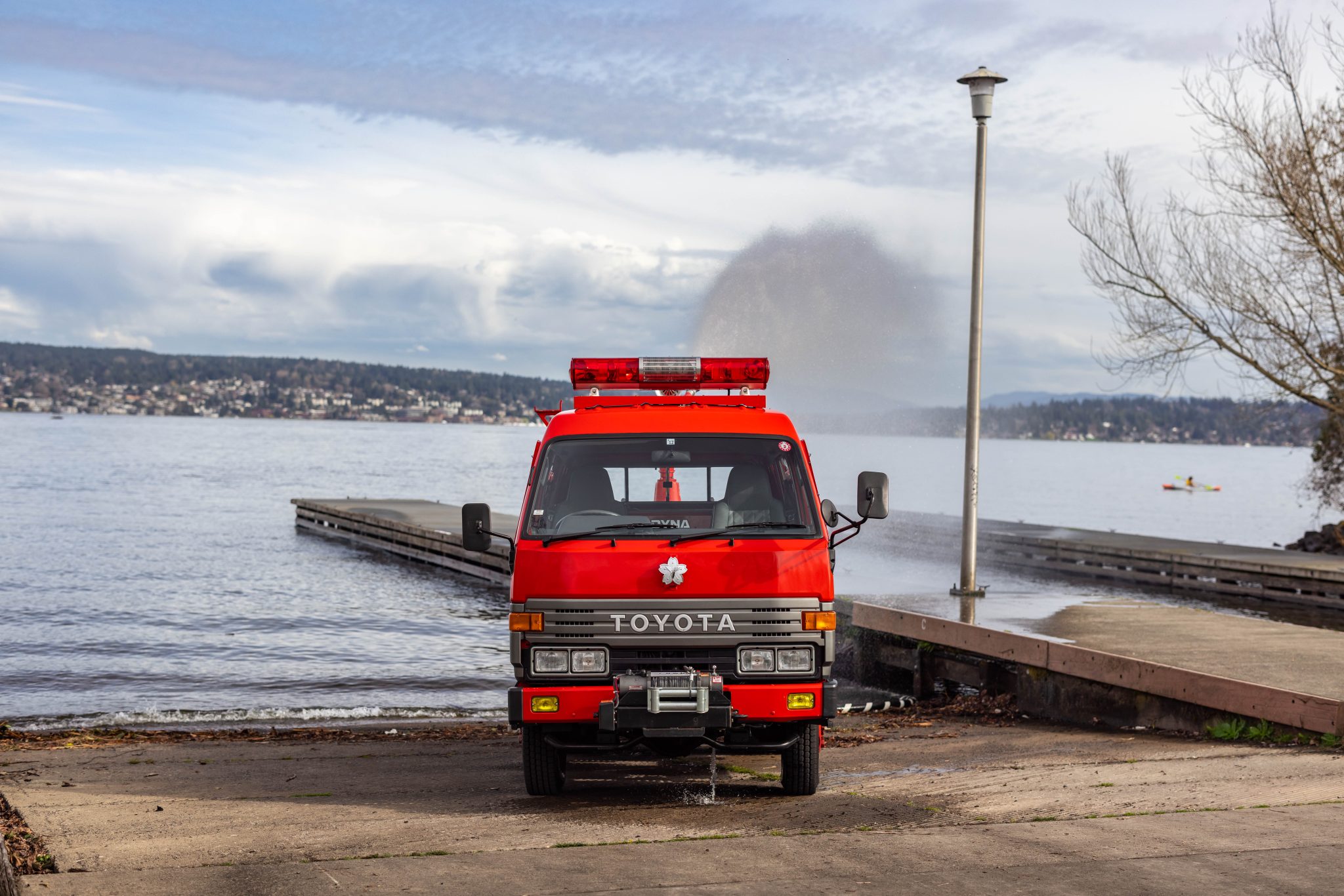Body-color steel 16” five-lug wheels are mounted with Yokohama Proforce Studless SY01 tires. A full-size spare is mounted beneath the truck, along with a shovel. The front axle features manually-locking hubs and the four-wheel drive system is activated via a switch on the dashboard.