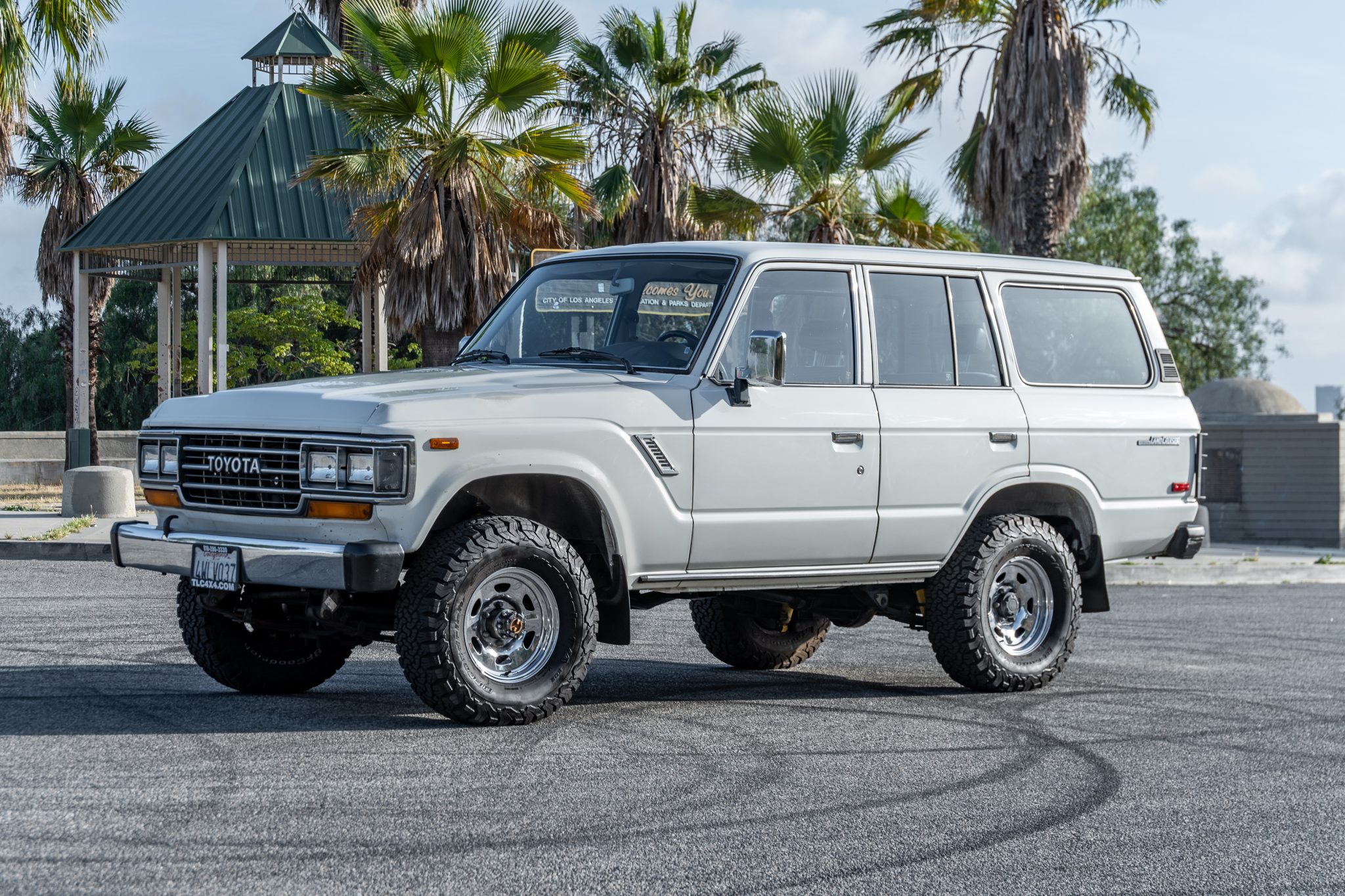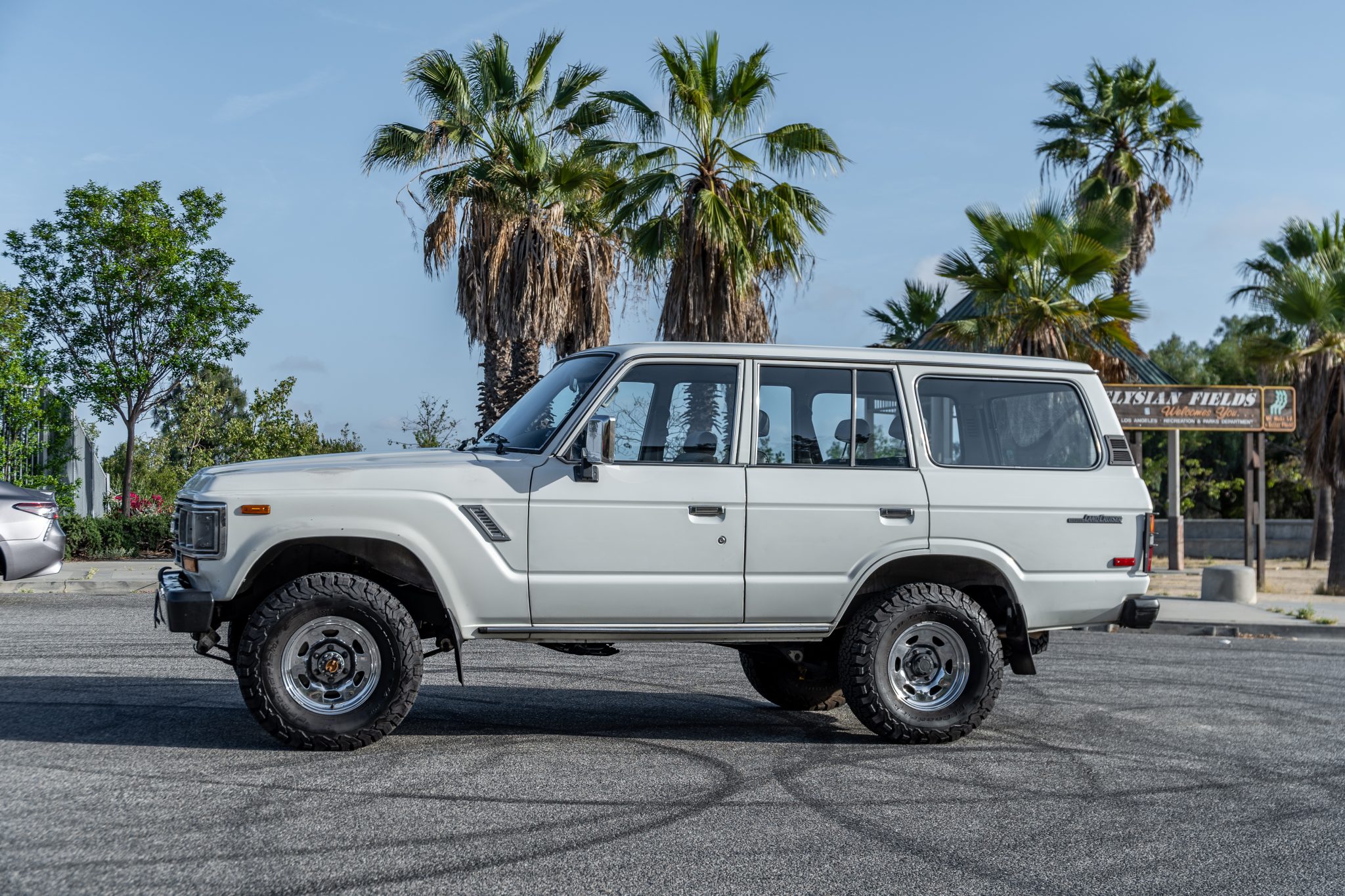 Polished 15″ steel wheels are mounted with 31×10.5″ BFGoodrich All-Terrain T/A KO2 tires. An Old Man Emu lift kit and steering stabilizer are installed, and the front axle is equipped with Aisin manually locking hubs. Braking is handled by front discs and rear drums. Service in September 2021 is said to include the replacement of the front brake rotors and pads, front hub seals, and the rear sway bar bushings in addition to adjusting the rack and pinion power steering gears and performing an alignment.