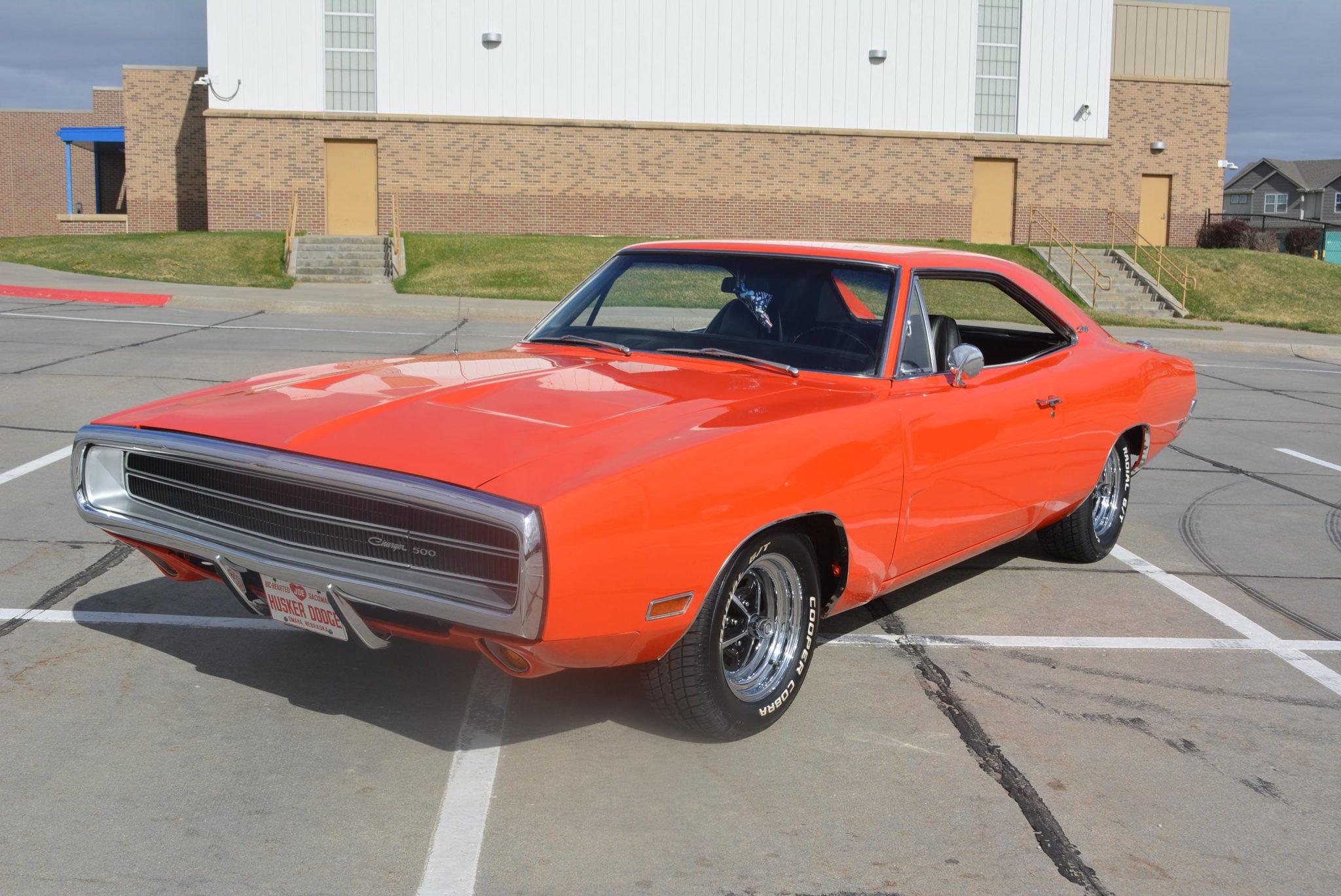 The 15″ Magnum 500-style wheels wear Cooper Cobra Radial G/T tires installed in 2021. Additional work completed under current ownership included installing power-assisted front disc brakes and replacing the front suspension bushings in 2009. A full-size spare wheel is mounted in the trunk.