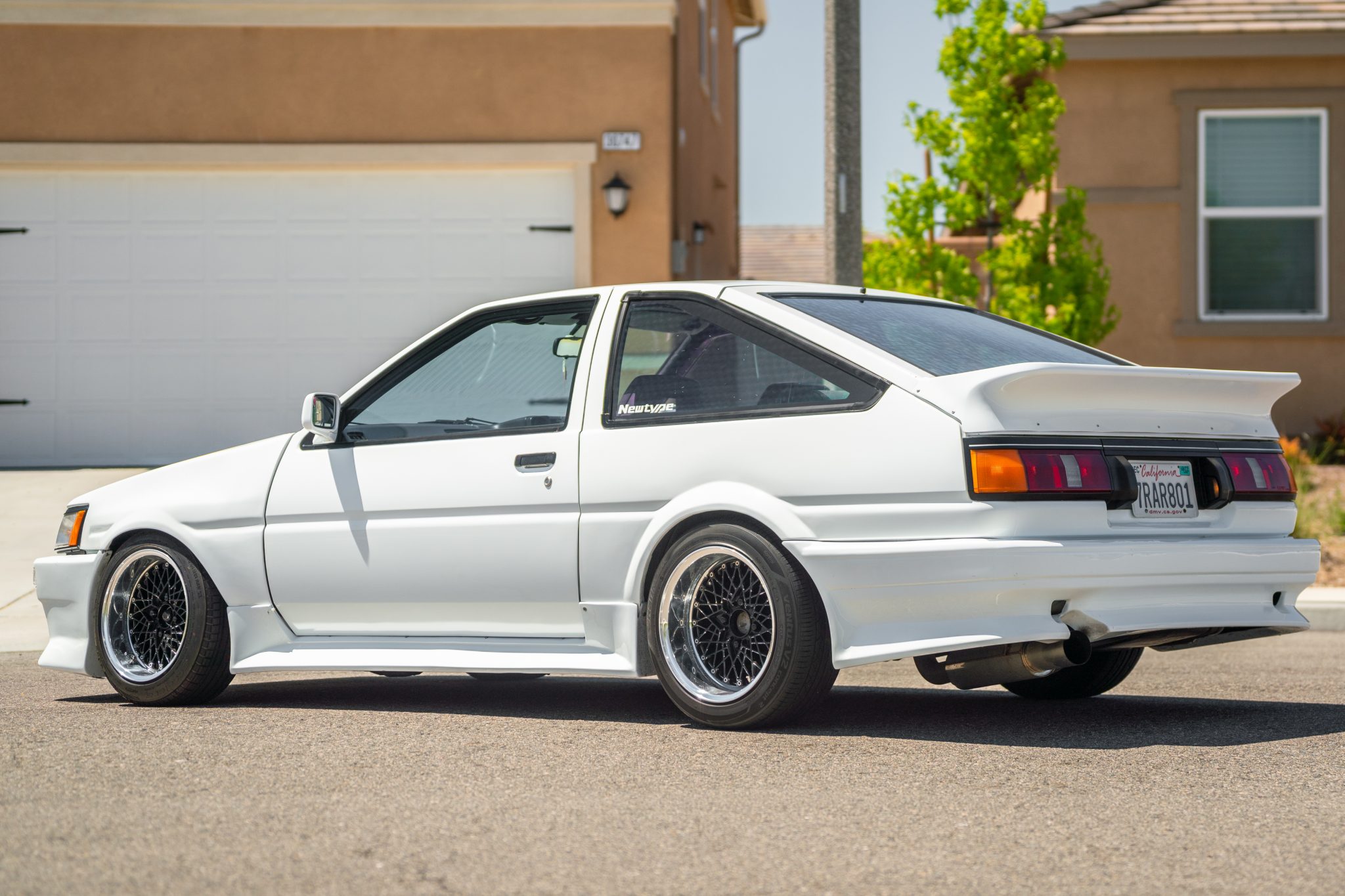 SSR 15″ basketweave wheels measure 9″ wide up front and 10″ wide out back and wear a mixed set of Accelera and Hankook tires that are said to have been replaced in preparation for the sale. The car is equipped with a front strut tower brace and Blitz Damper adjustable coilovers.