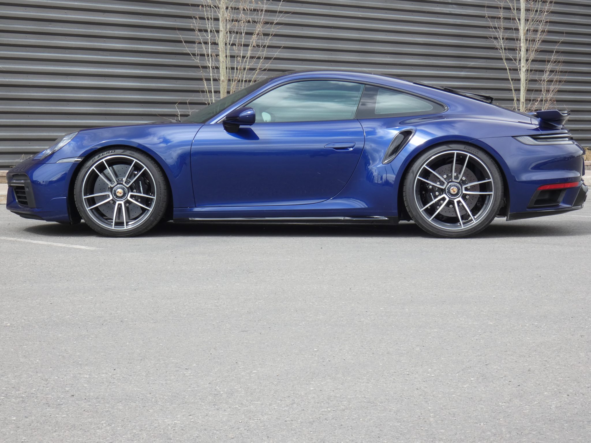 Center-lock 20″ and 21″ wheels are mounted with Pirelli P Zero tires measuring 255/35 up front and 315/30 out back. Braking is provided by black-finished calipers over multi-piece cross-drilled rotors, and the car was optioned with a front-axle lift system, and a lowered sport suspension with Porsche Active Suspension Management (PASM).