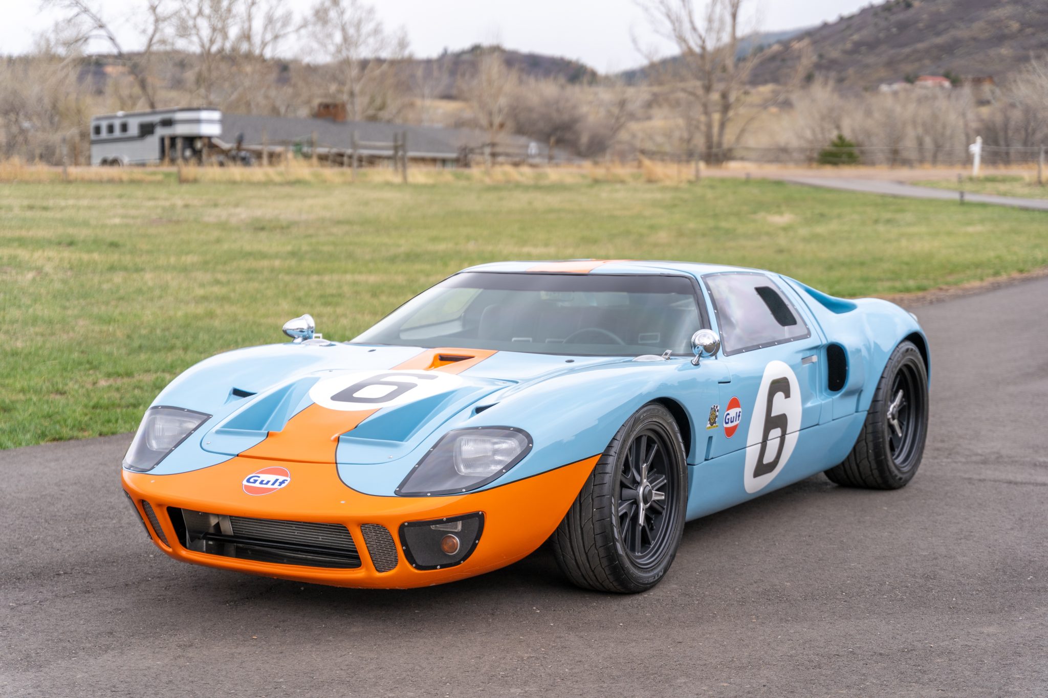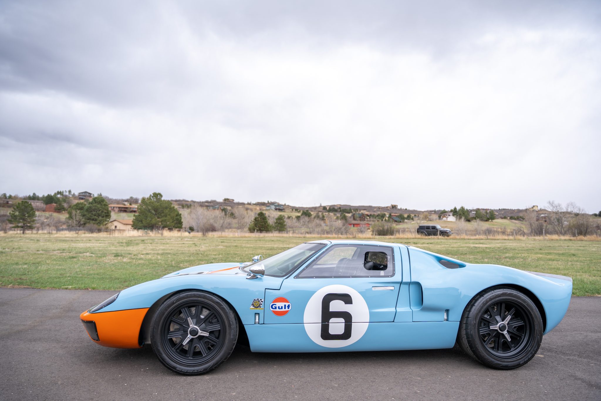 The suspension and braking systems are borrowed from a C6 Corvette, and adjustable QA1 coilovers are utilized along with cross-drilled and slotted brake rotors. The brake bias is adjustable. Black 17″ Halibrand-style wheels are mounted with 235/45 front and 315/35 rear Nitto NT555 G2 tires.