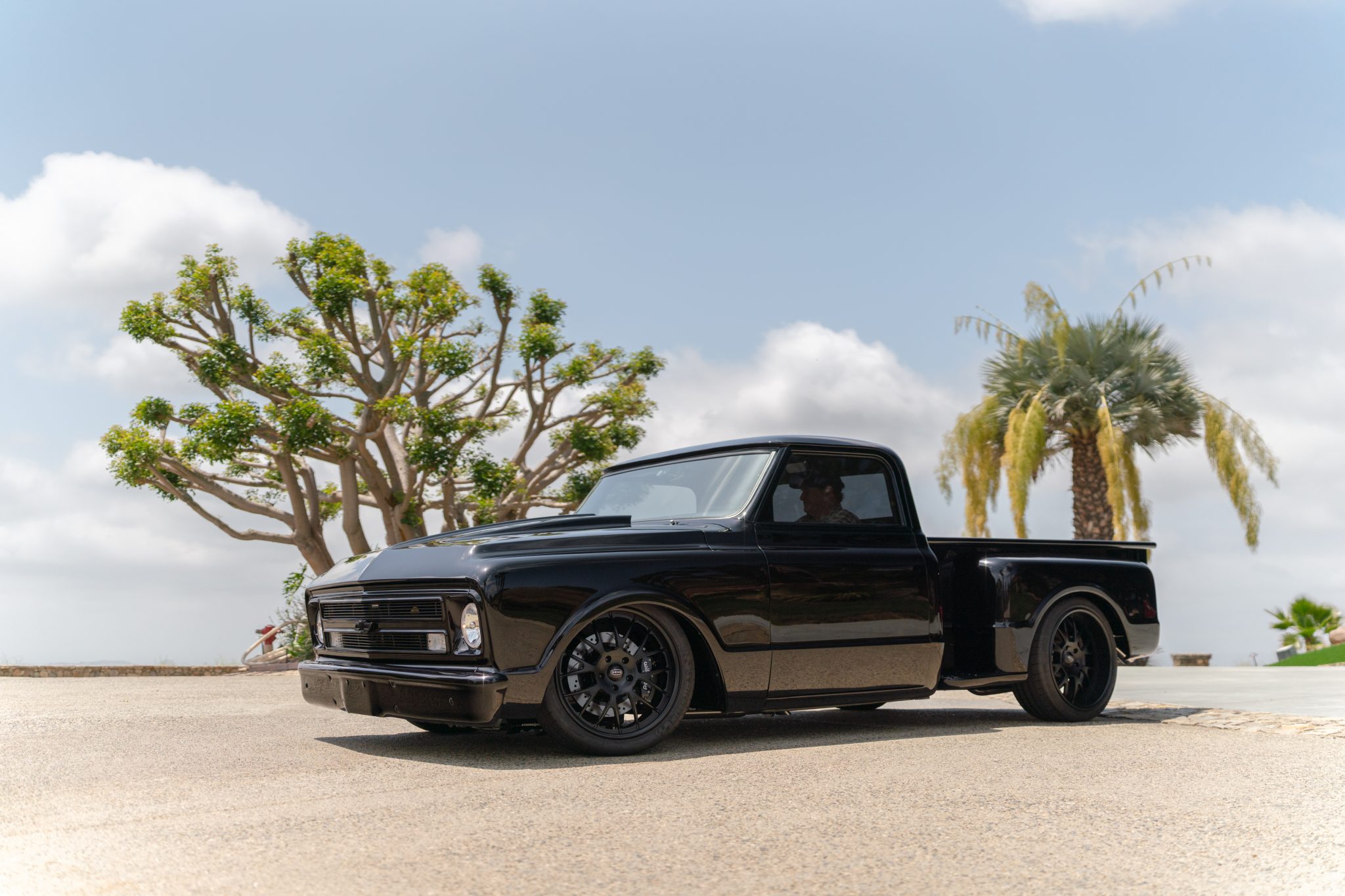 Forged 20″ Boze wheels are mounted with Michelin Pilot Super Sport tires. The truck is equipped with dropped front spindles, Strong Arms upper and lower control arms, and an Air Ride Technologies adjustable air suspension. Stopping power is provided by Wilwood calipers over drilled and slotted rotors at all four corners.