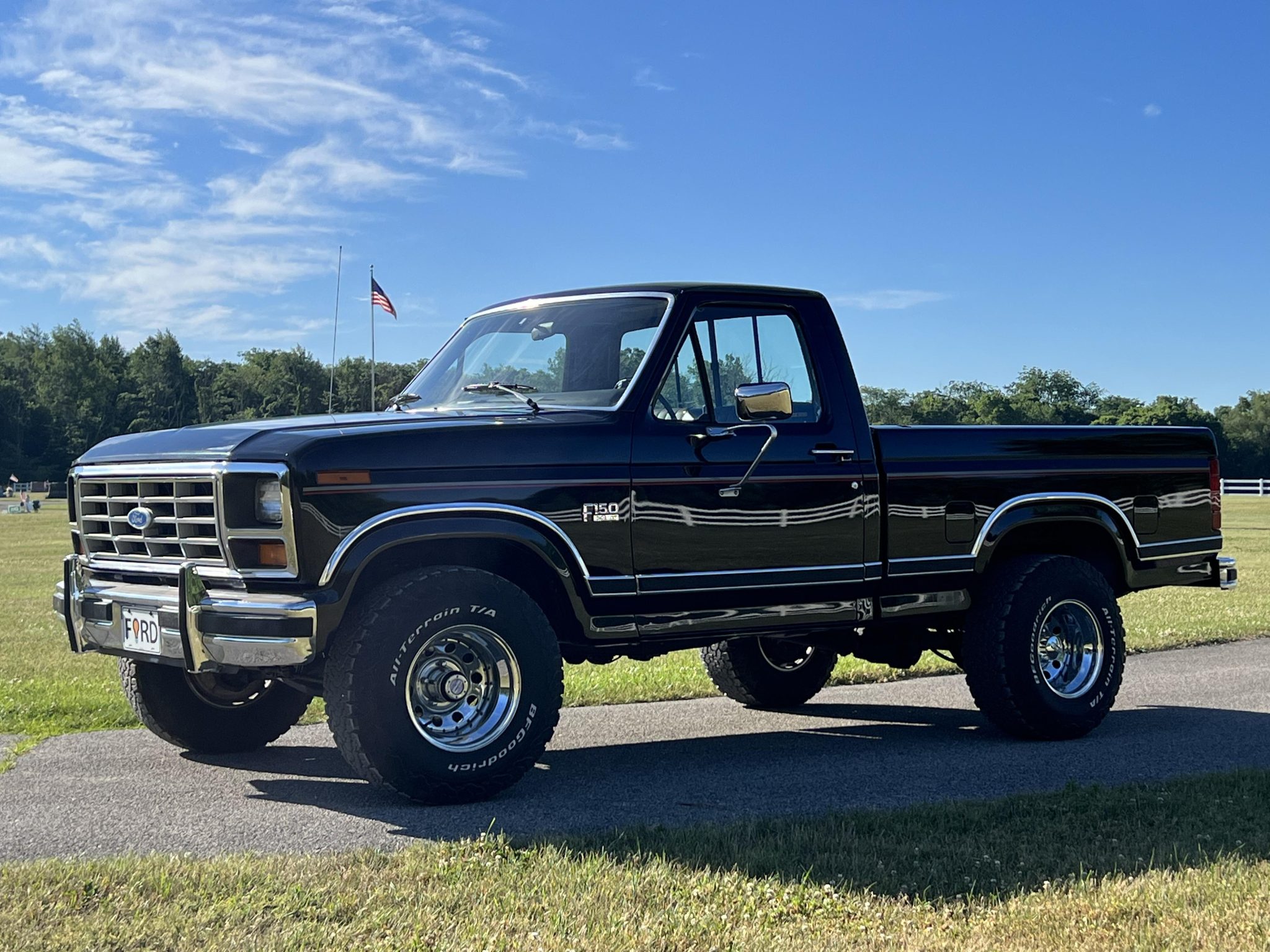 Chrome 15″ Cragar wheels wear BFGoodrich All-Terrain T/A K02 tires. Equipment includes power-assisted brakes and manually-locking front hubs. Maintenance carried out in 2021 reportedly included flushing the brake fluid and greasing the chassis.
