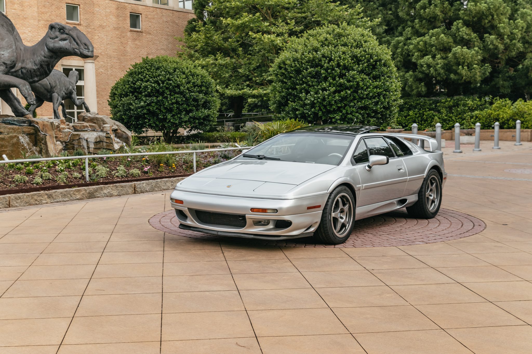 Five-spoke 17″ front and 18″ rear OZ Racing Magnesio wheels are mounted with Nitto NT555 G2 rubber measuring 265/45 and 285/40, respectively. The tires are said to have been mounted in preparation for the sale, and the seller notes that chipping paint is visible on the wheels. Stopping power is provided by two-piece cross-drilled rotors at all four corners with Lotus-branded AP Racing calipers up front, and the emergency brake is said to have been serviced under previous ownership in 2020.