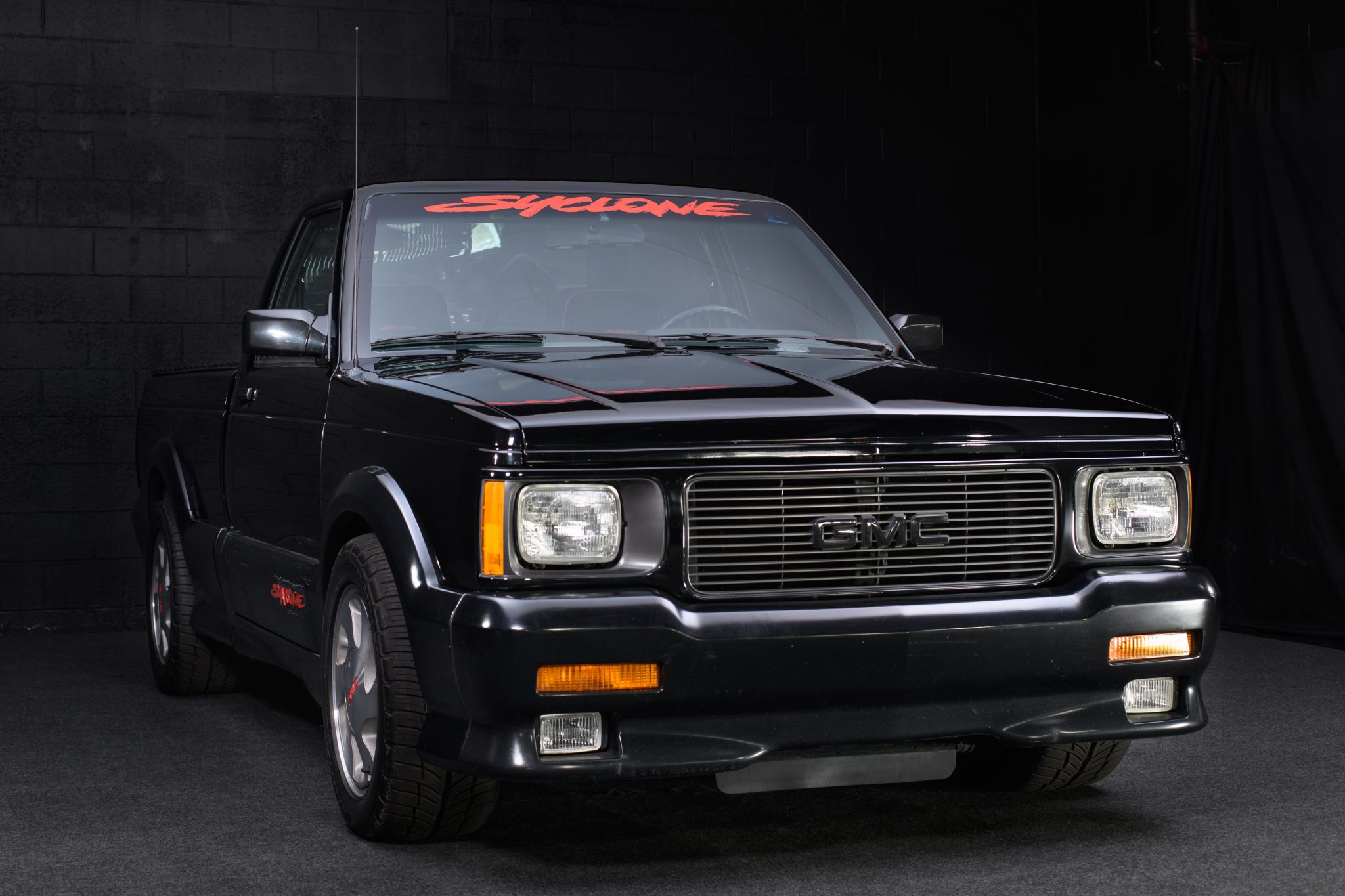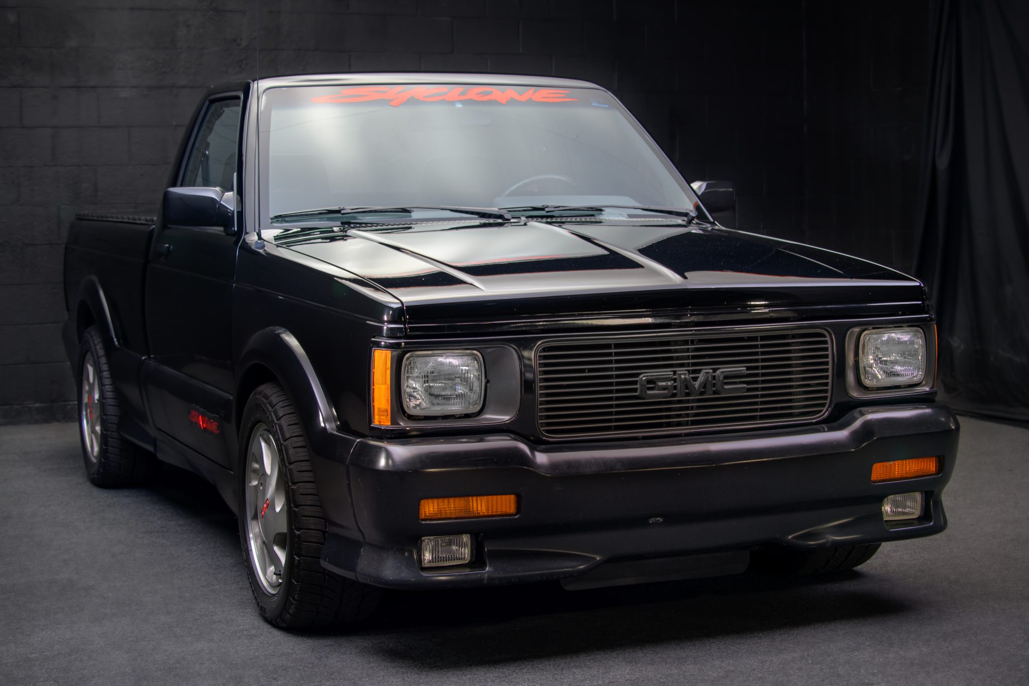 Six-spoke 16″ aluminum wheels feature GMC-branded center caps and are wrapped with 245/50 BFGoodrich g-Force Comp-2 tires. The truck is equipped with power steering, a sport-tuned suspension, and front disc brakes with ABS.