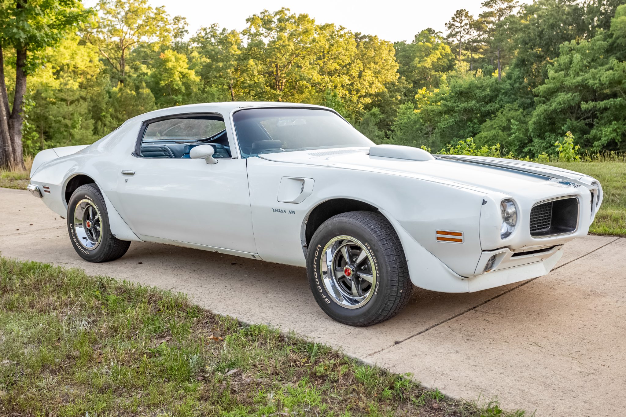 Rally II wheels wear 15″ BFGoodrich Radial T/A raised-letter tires. Power-assisted front disc brakes and variable-ratio steering were standard equipment for the 1970 Trans Am.