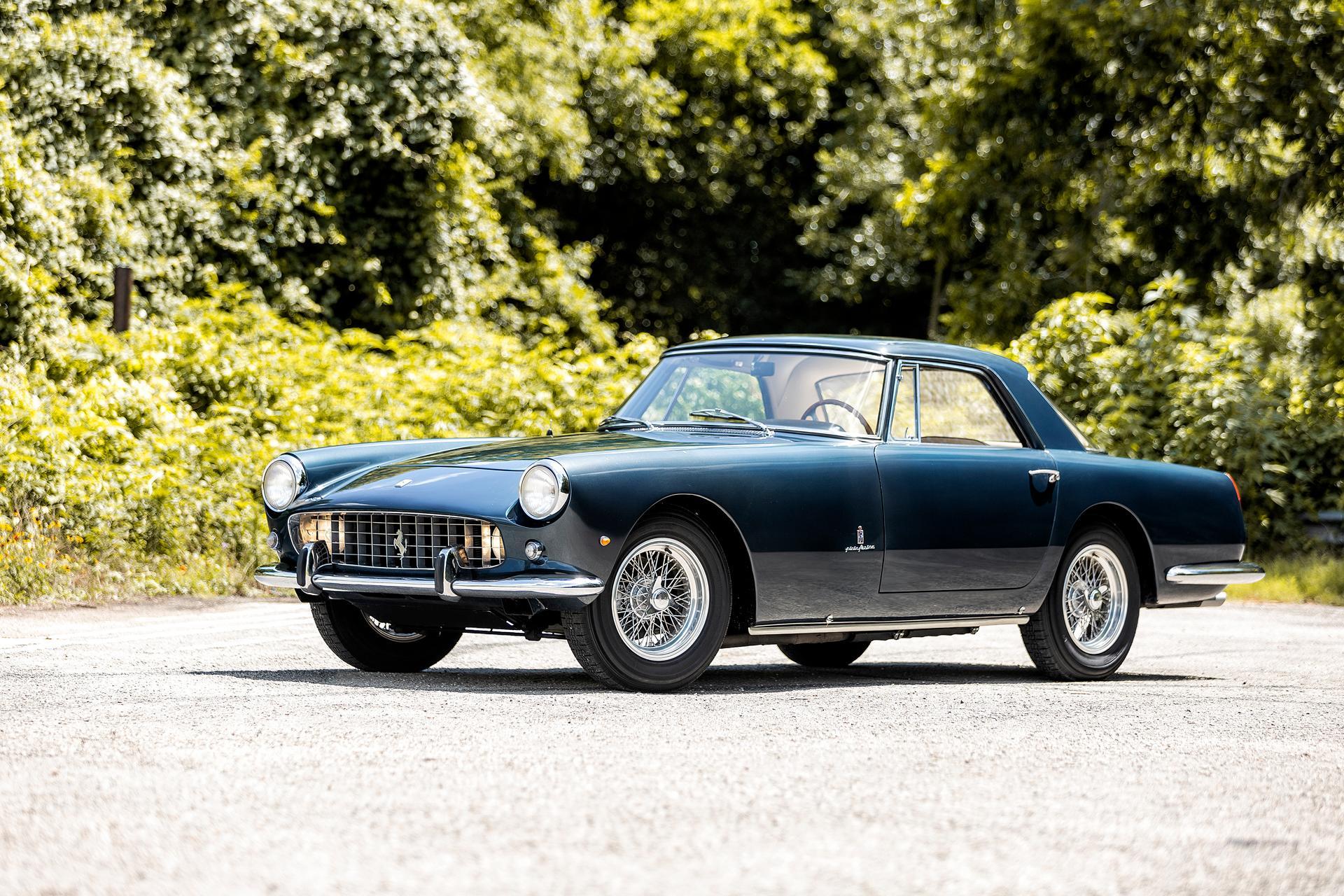 This example left the factory finished in Blu Sera and received a repaint in the early 1990s in its original shade during a refurbishment by Harry Pappas’ Automobili Scuderia in San Francisco. Closeups of imperfections in the finish are provided in the photo gallery below. Various pieces of brightwork were refinished by San Jose Plating Works in 1993. Work performed between 2016 and 2018 included the replacement of body seals, repairs to the door hinges and hood latch, and adjustment of the doors and bumpers. Pinin Farina job number 29486 is stamped on the trunk floor and can be seen in the gallery below, as can its last three digits stamped on the hood and trunk lid.