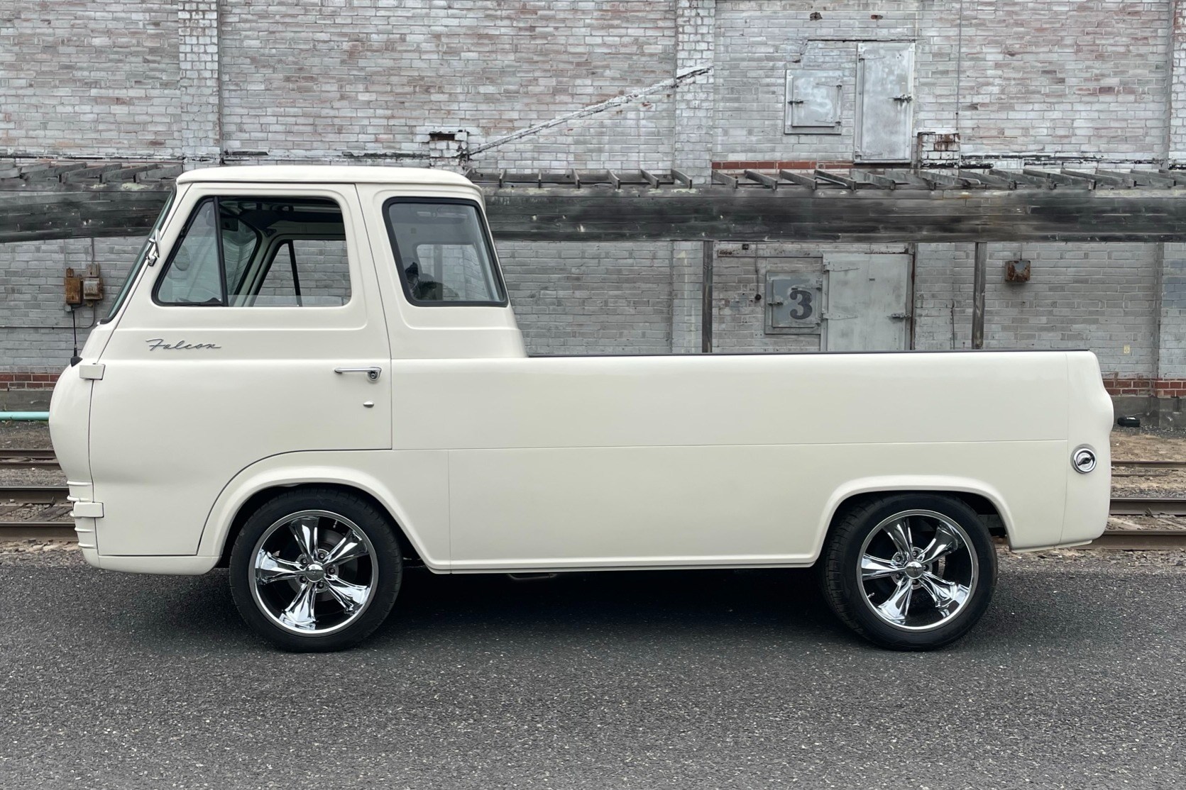 Chrome-finished 17×8″ Chip Foose Legends wheels wear Dunlop Zeon RS3-A tires measuring 225/45 up front and 275/40 out back. The seller notes chrome pitting on two of the wheel surfaces. Braking is handled by a front disc brake conversion with a dual master cylinder, while work performed under previous ownership reportedly included replacing the brake lines, and the front and rear wheel bearings as well as the tie-rod ends and shocks. Additional work included installing a custom bed-slide which aids with weight distribution.