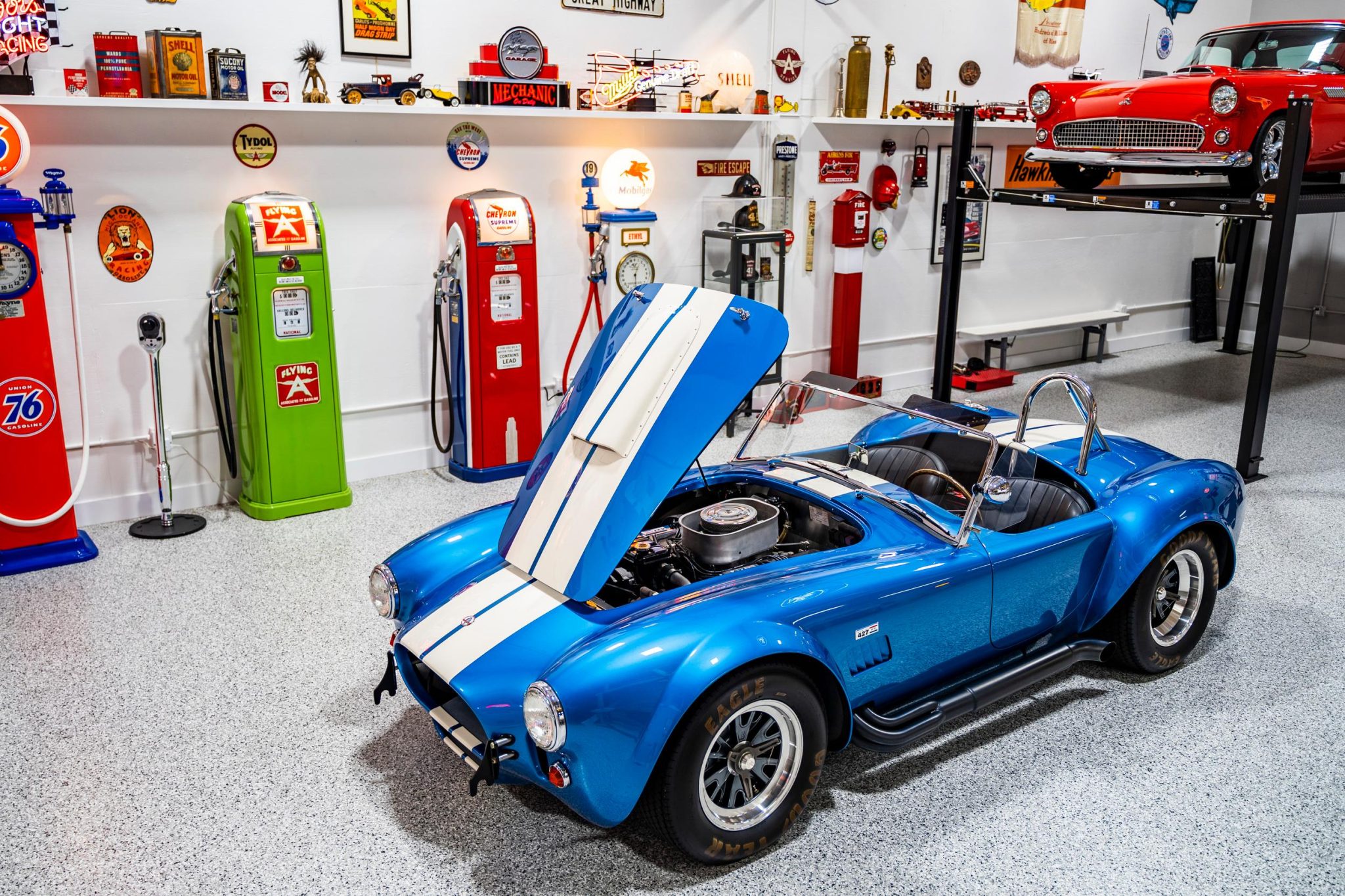Staggered-width 15″ Shelby Trigo wheels are mounted with knock-off spinners and wear Goodyear Eagle tires with raised lettering. The car is fitted with Bilstein adjustable coilovers at all four corners, and stopping power is provided by Wilwood four-wheel disc brakes. The front swaybar bushings are said to have been replaced in 2022.