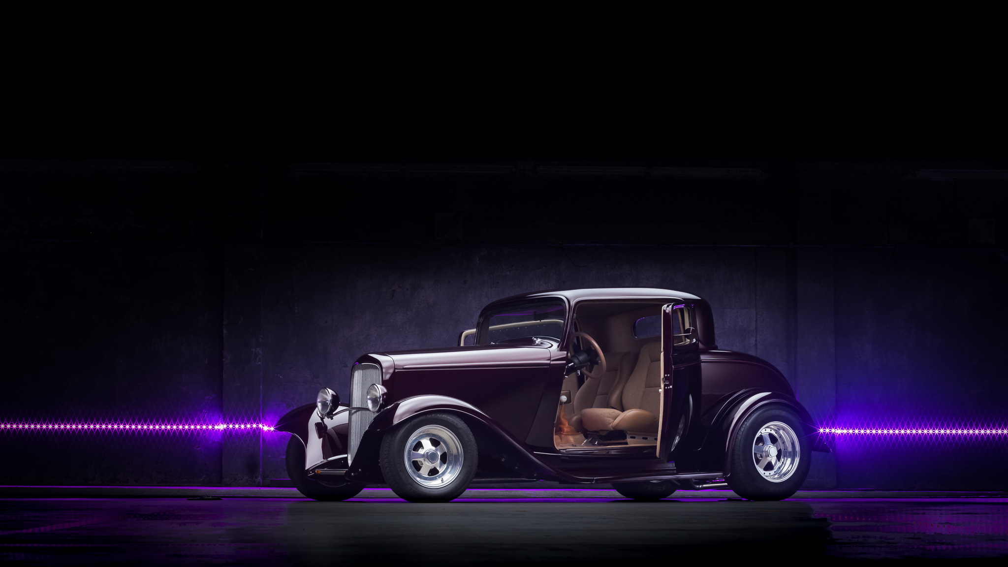 Center-lock 14″ and 15″ Boyd Coddington wheels are wrapped in 185/70 front and 235/70 rear General Altimax RT tires. The suspension and four-wheel disc brakes were reportedly sourced from a C4 Chevrolet Corvette.