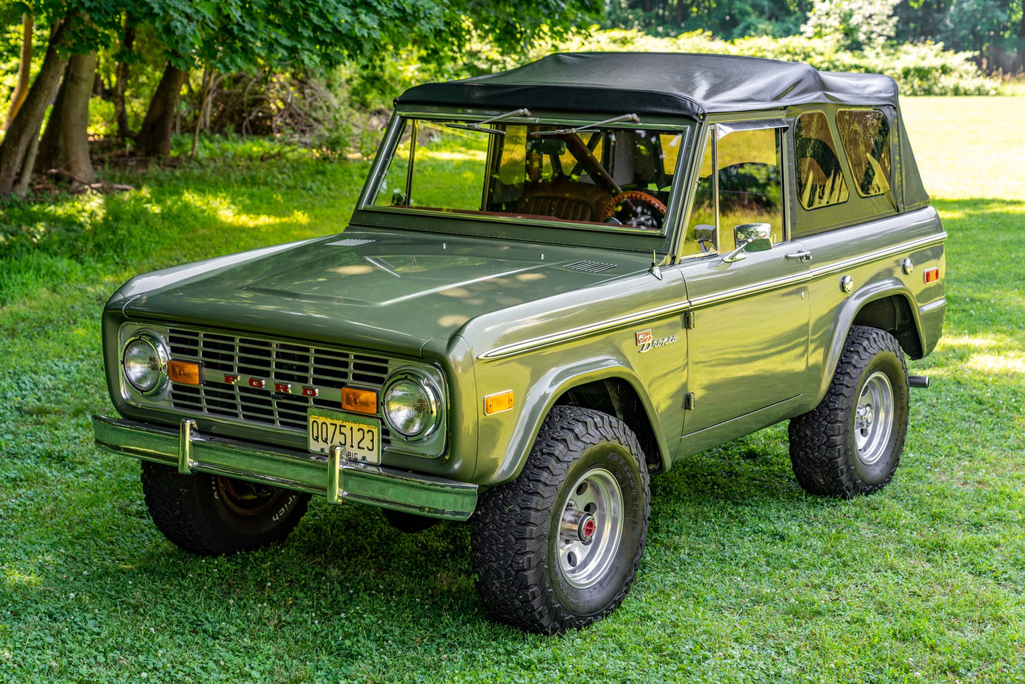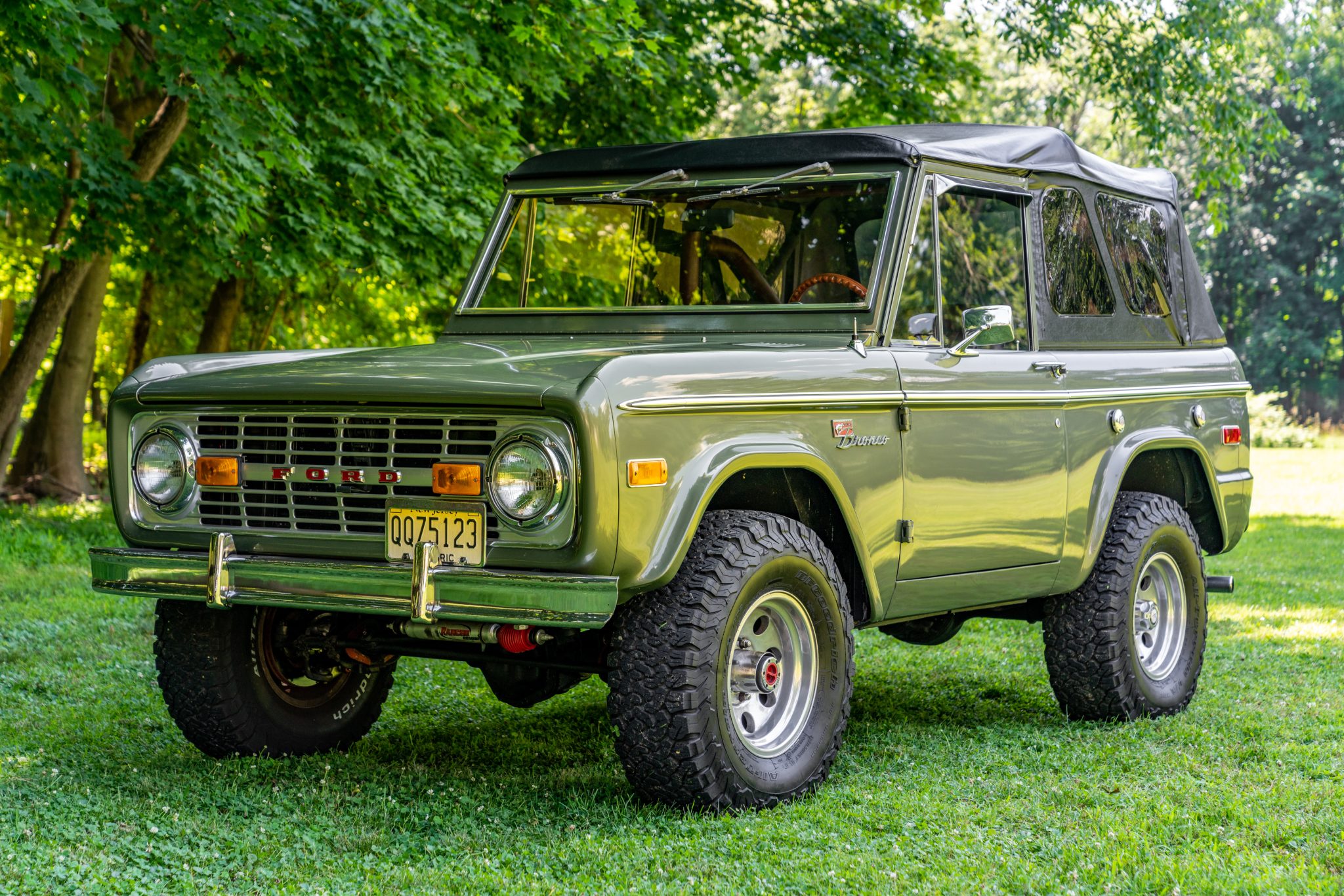 American Racing 15″ wheels are wrapped in 32×11.5″ BFGoodrich All-Terrain T/A K02 tires, and a black 15″ steel spare is mounted on the swing-away rear carrier. The truck is equipped with locking front hubs and has been modified with a Rancho suspension lift kit along with a Wild Horses power steering system and power-assisted front disc brakes. Other work performed during current ownership included installing copper brake lines, rebuilding the steering rack, and replacing the ball joints along with the rear brake shoes and wheel cylinders.