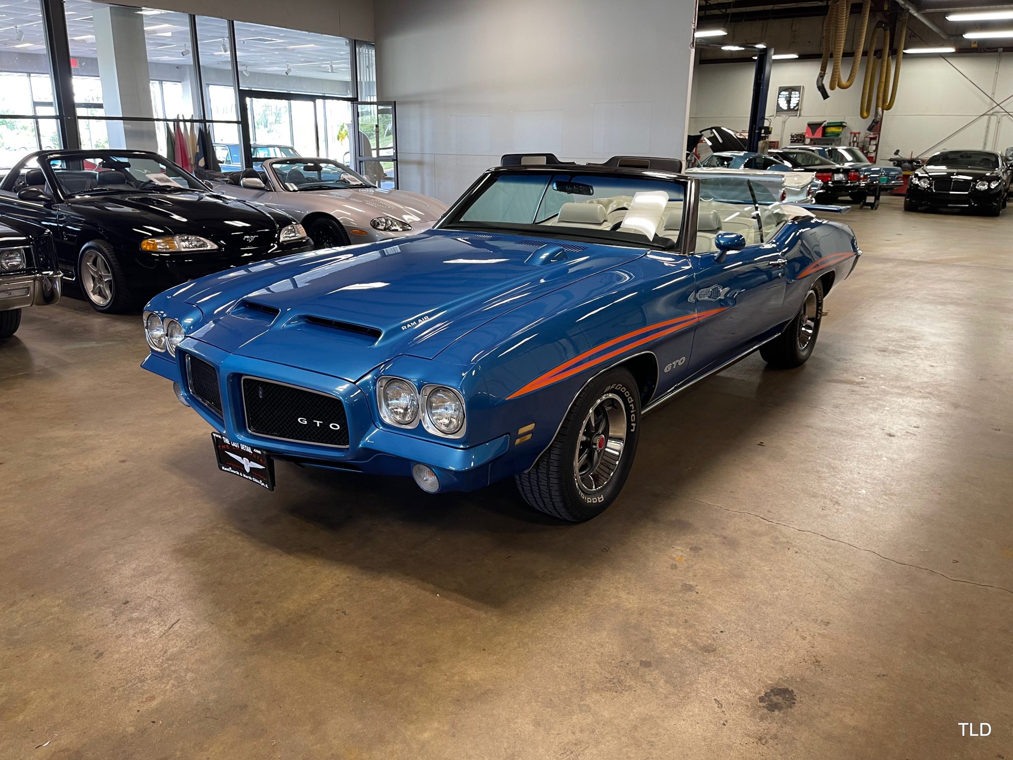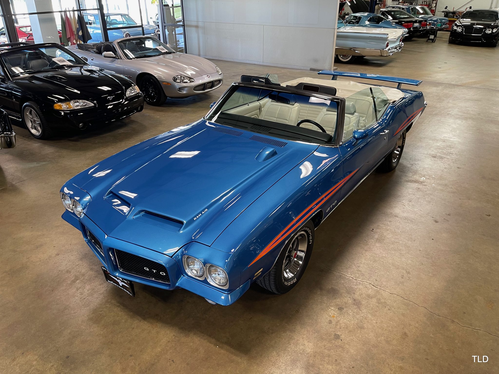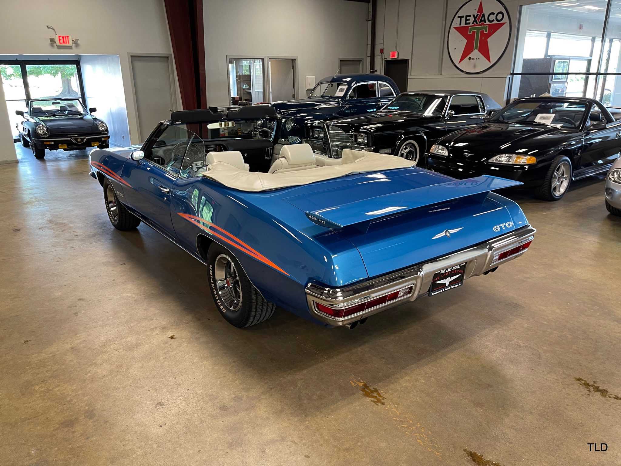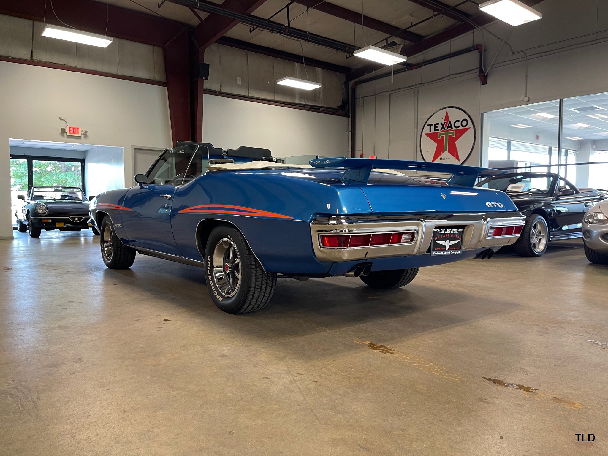 The 15″ Rallye II wheels wear PMD center caps and are mounted with BFGoodrich Radial T/A white-letter tires. A full-size spare is mounted in the trunk. The car is equipped with power steering, and braking is handled by power-assisted front discs and rear drums.