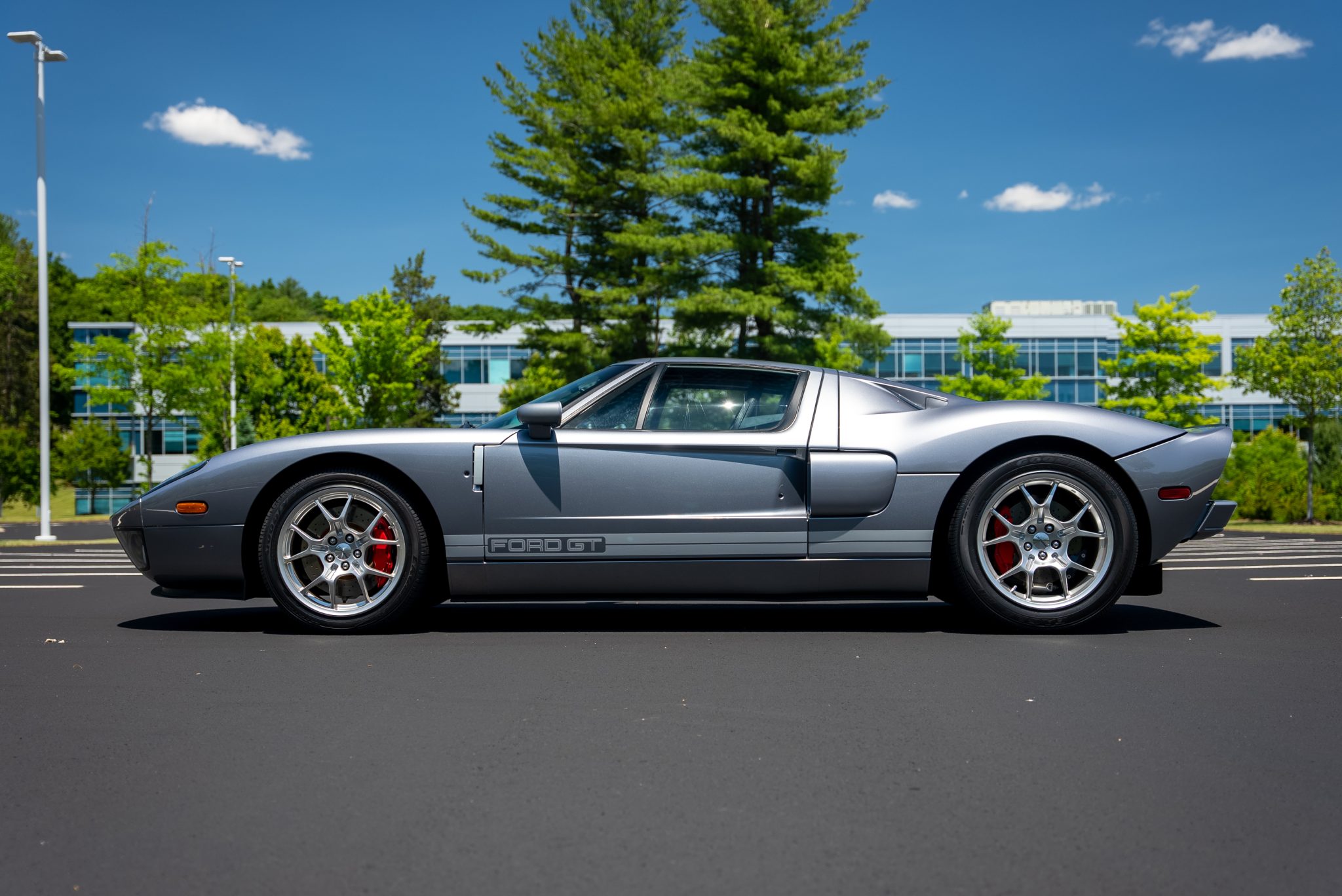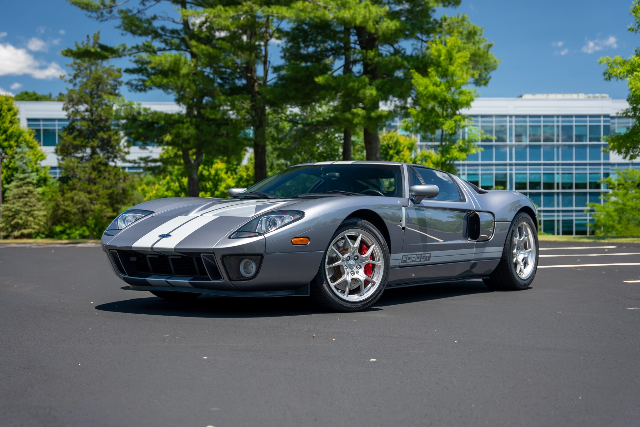 Factory-optional BBS forged alloy wheels measure 18” in diameter up front and 19” out back and are mounted with Goodyear Eagle F1 Supercar tires measuring 235/45 and 315/40, respectively. The Brembo braking system features optional red-painted four-piston monoblock calipers with cross-drilled and ventilated rotors that measure 14” up front and 13.2” out back.