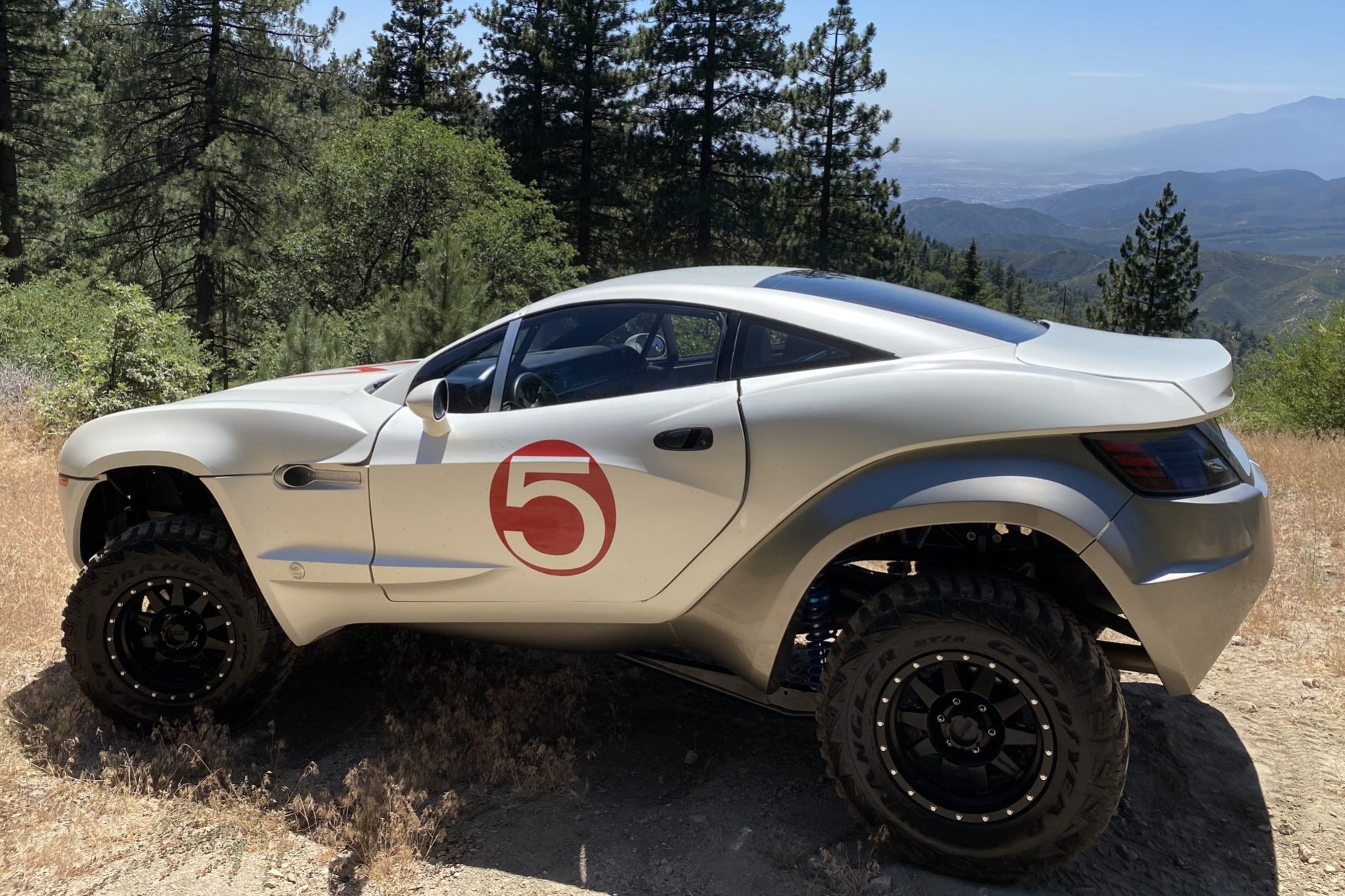 Black-finished 17” simulated beadlock wheels are mounted with 285/70 Goodyear Wrangler tires. A full-size spare is found in the trunk. Braking is through four-wheel discs. The truck rides on front and rear King coilovers with remote reservoirs.