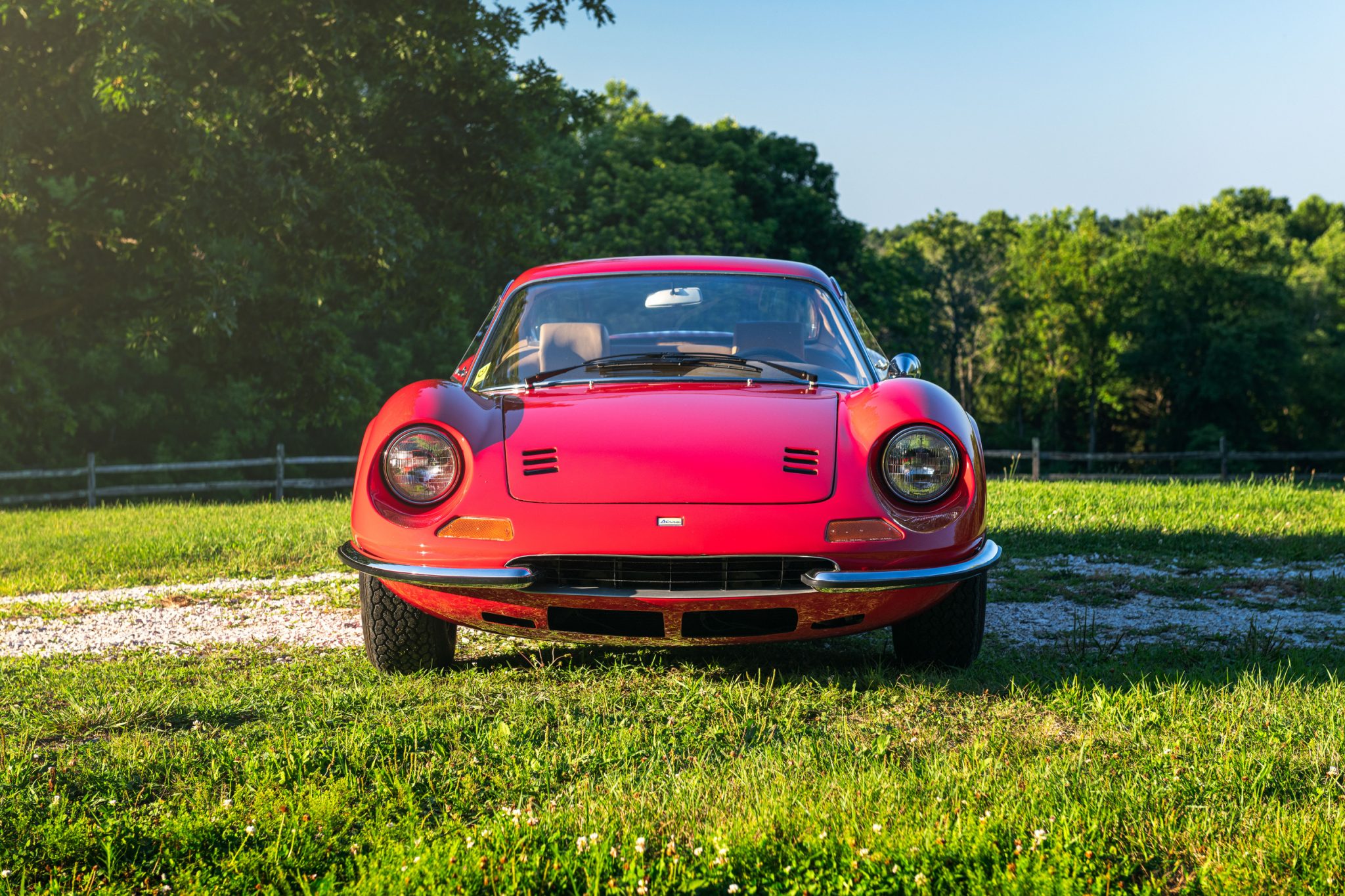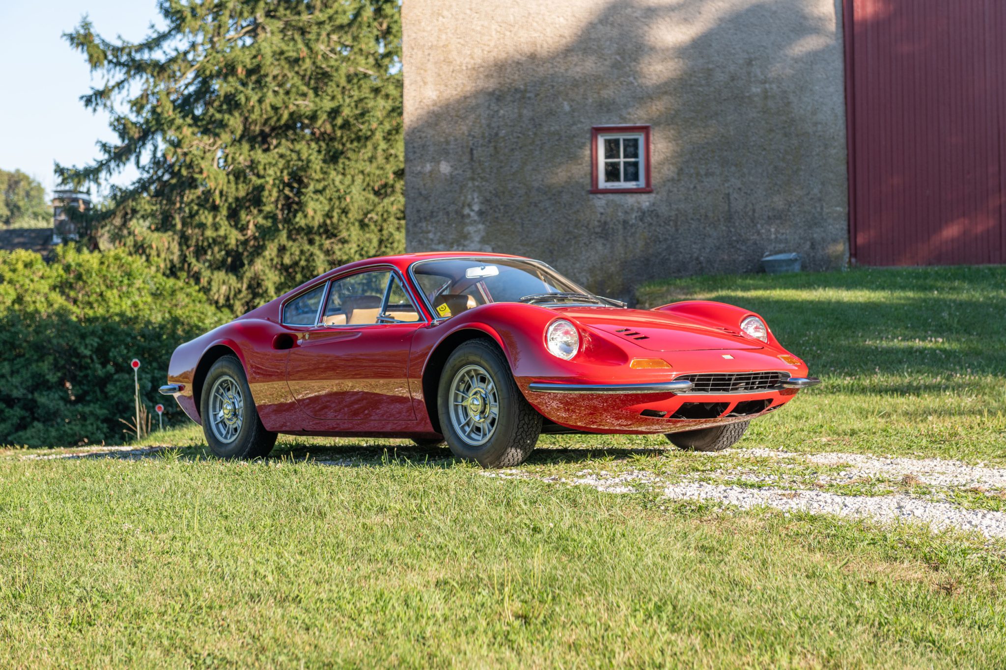 The 14″ Cromodora wheels feature three-eared knock-off hubs and are mounted with 205/70 Michelin XWX radial tires. A matching spare wheel is mounted in the front trunk. The 246 GT features a double wishbone suspension with anti-roll bars front and rear. A replacement brake master cylinder was installed by Scuderia Performante of Malvern, Pennsylvania, in December 2021, and a rebuild of the brake calipers with new pistons and hoses was also performed at that time.
