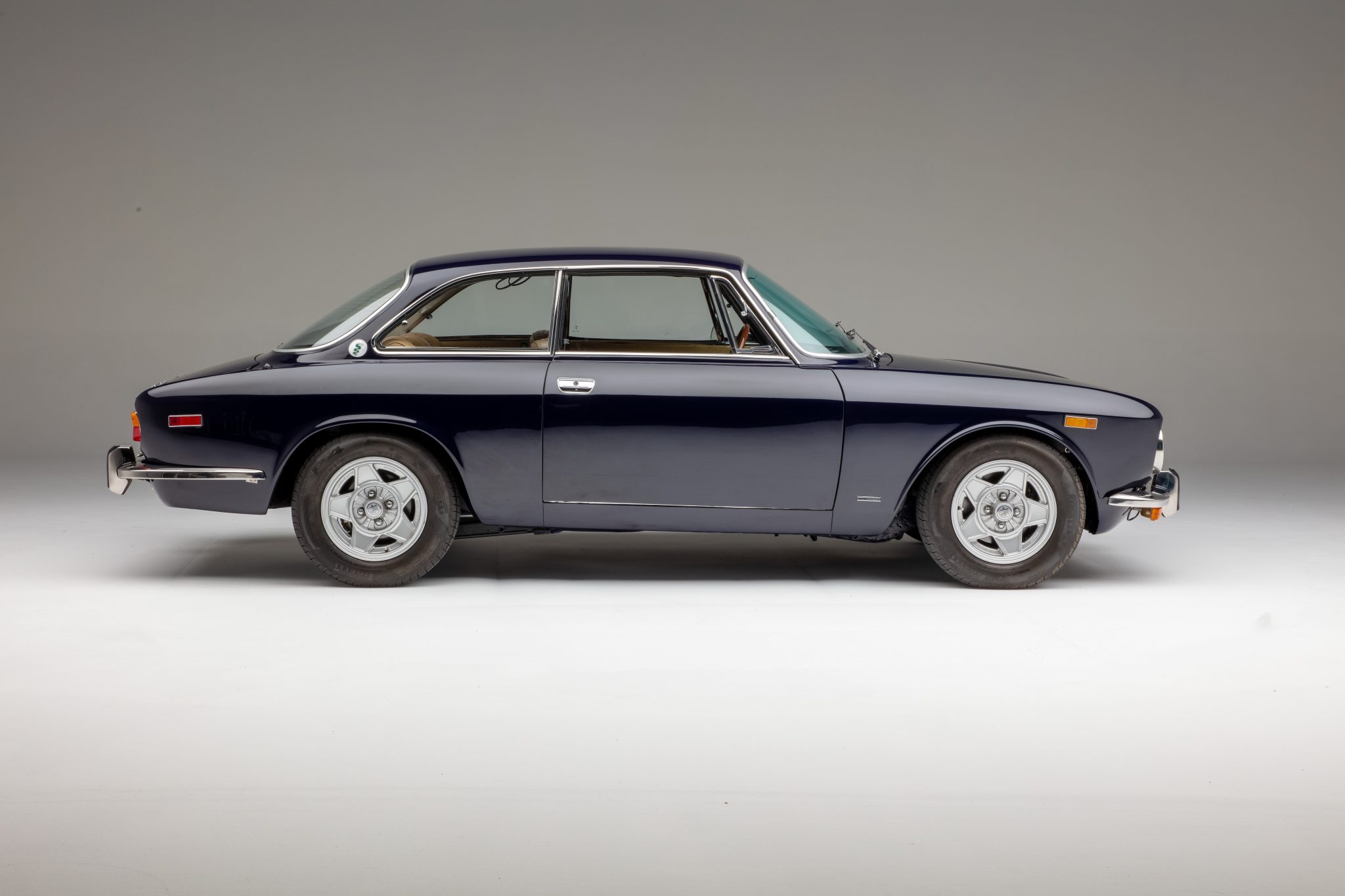 Silver 14″ Cromodora alloy wheels are mounted with 185/70 Pirelli P4 tires. Braking is handled by power-assisted four-wheel discs, and four-piston calipers have been installed up front. The suspension is said to have been overhauled and modified with Koni adjustable dampers and Ward & Dean lowering springs and sway bars.