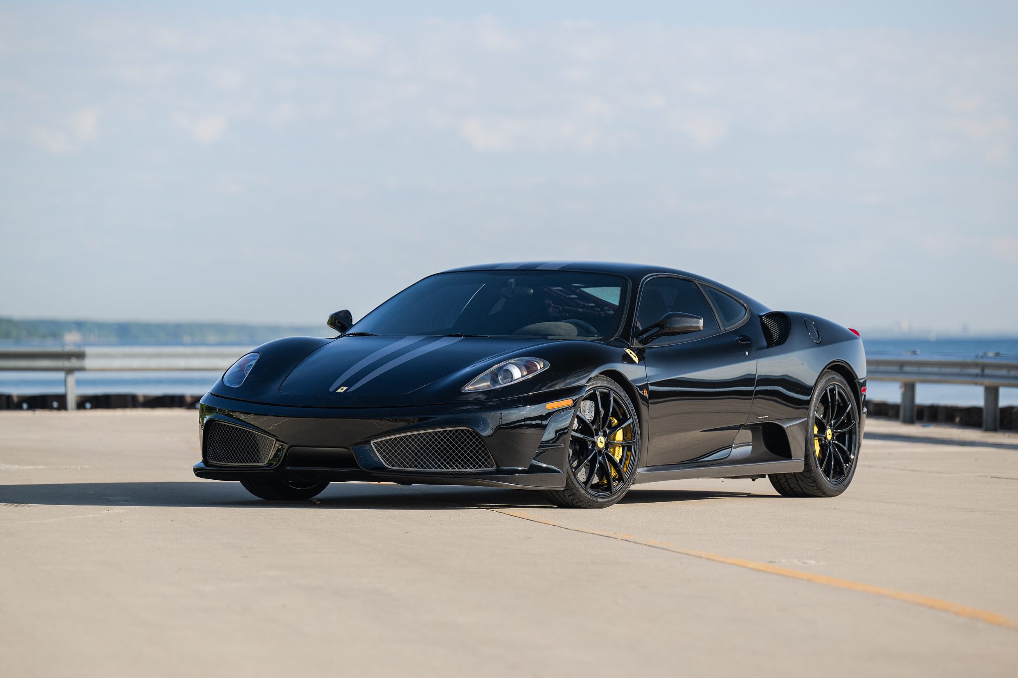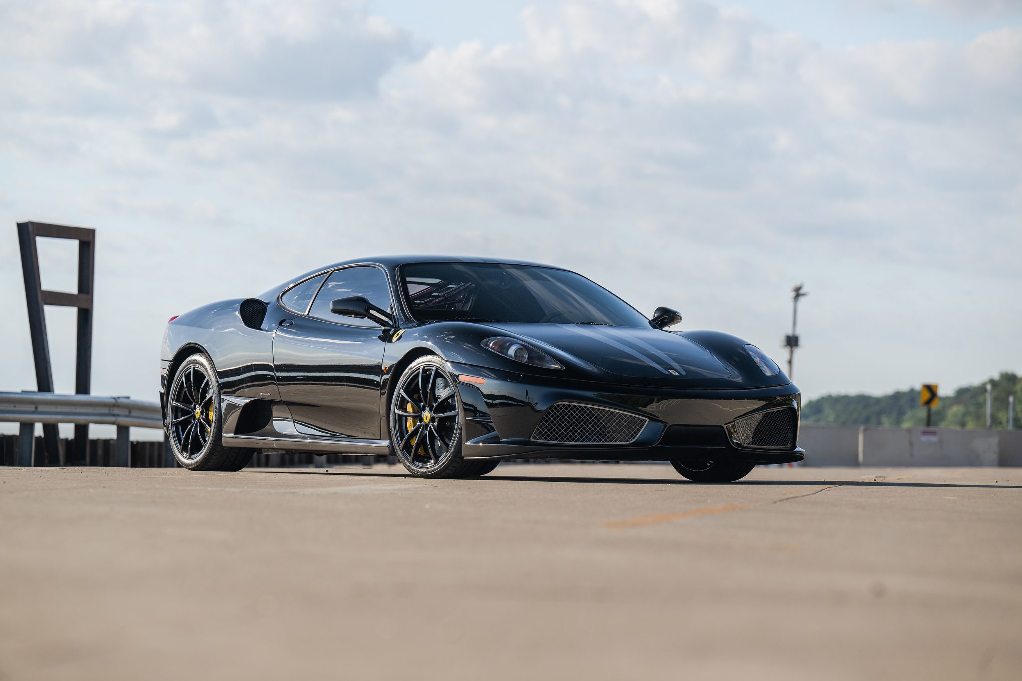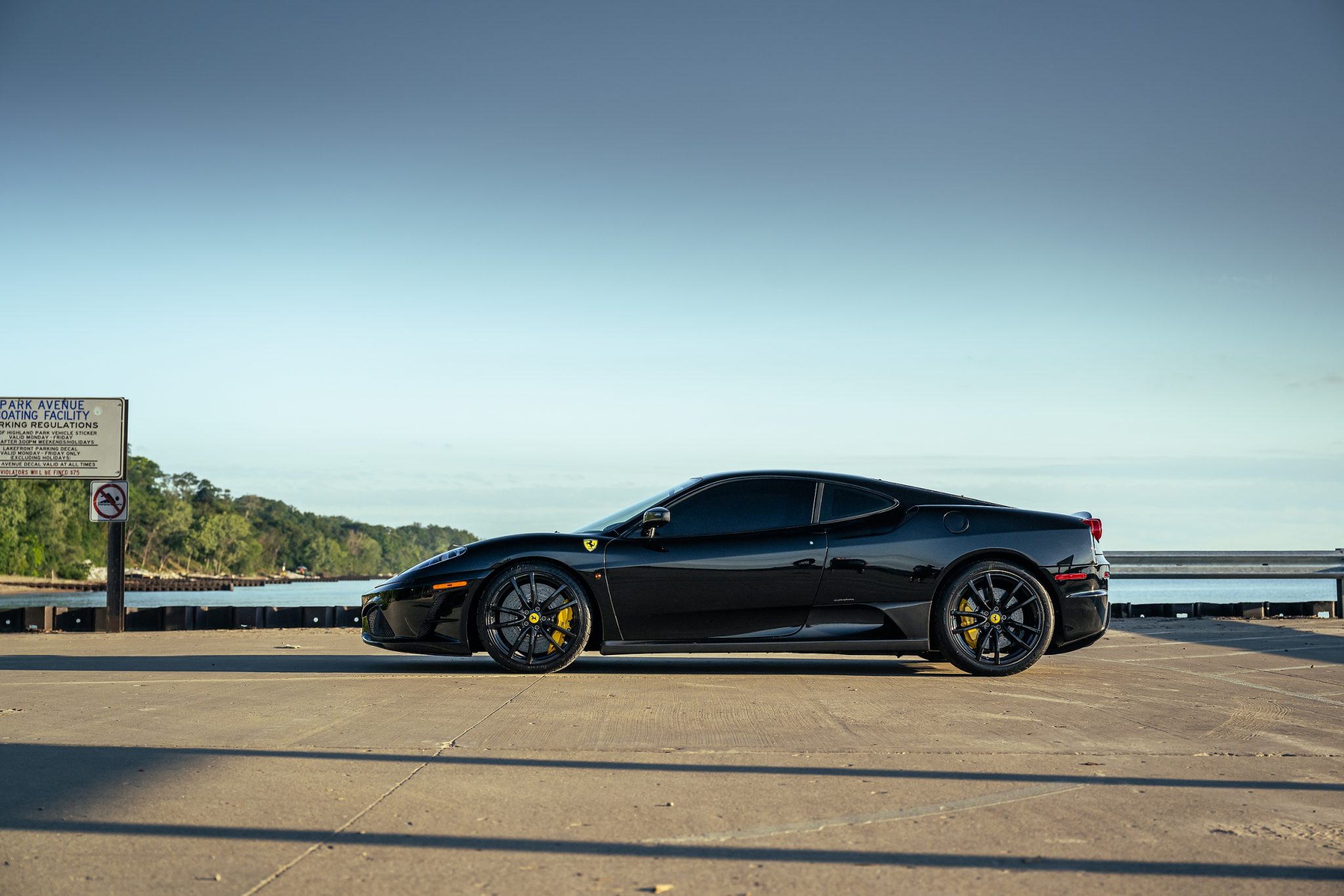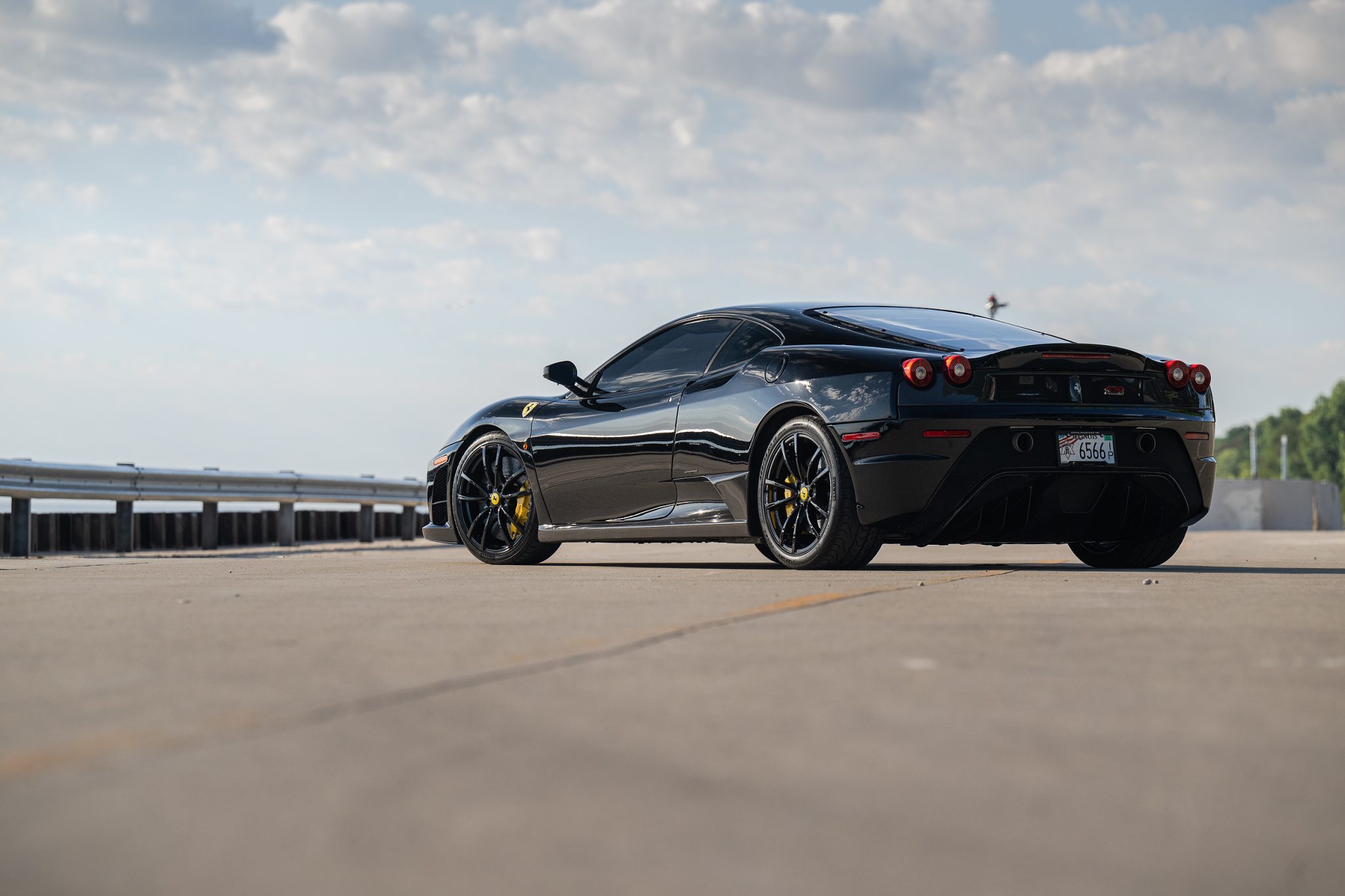 The 19″ Scuderia alloy wheels were refinished in black by Ferrari of San Antonio in December 2021, and they are mounted with 235/35 front and 285/35 rear Pirelli P Zero Corsa tires. Braking is handled by yellow-finished brake calipers fitted over carbon-ceramic rotors at all four corners. The brake fluid was flushed in December 2021, and fresh power steering fluid was also added at that time.