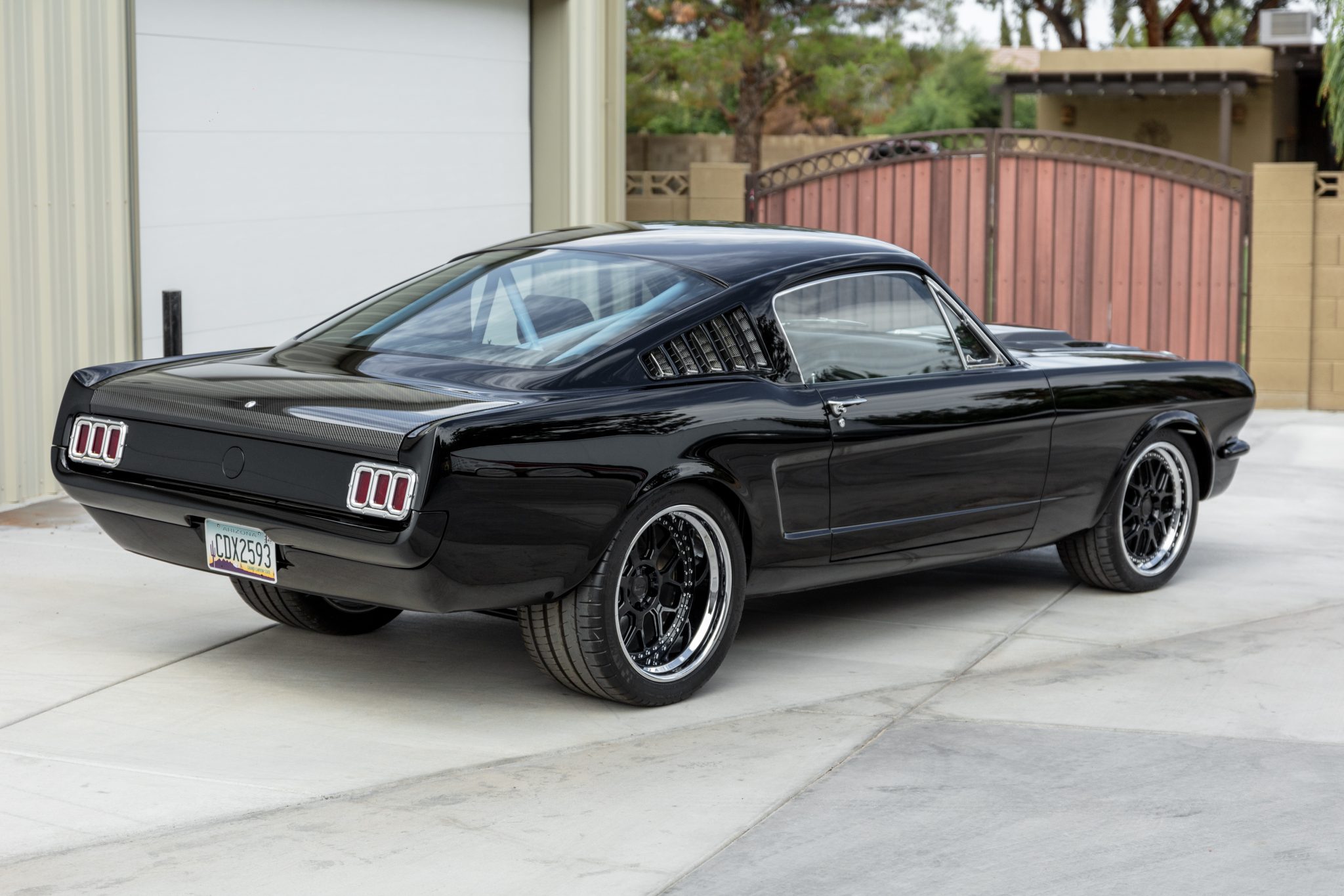 The 18″ and 19″ diameter Niche three-piece wheels wear Michelin Pilot Super Sport tires measuring 265/35 up front and 345/30 out back. The rear axle is mounted using custom-fabricated four-link geometry, and additional modifications include Wilwood four-wheel disc brakes along with QA1 adjustable coilovers.