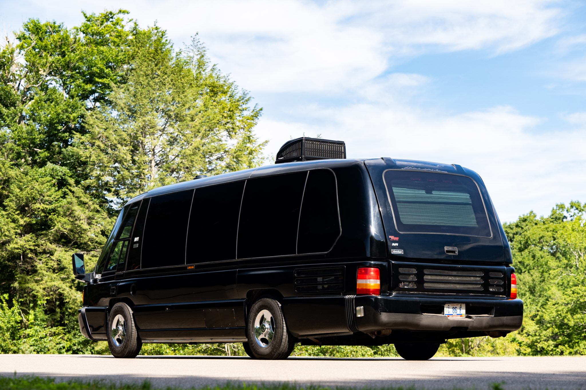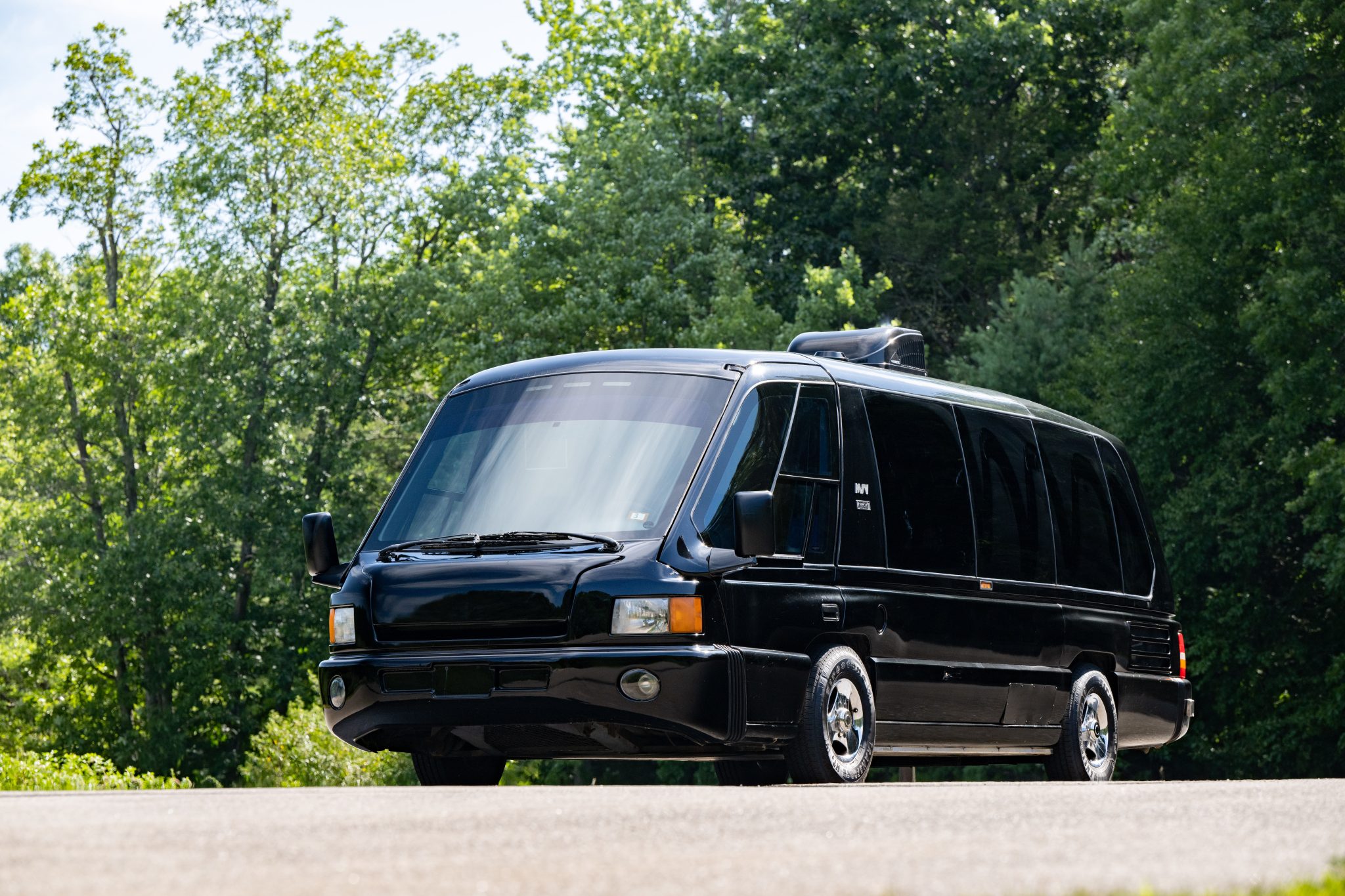 Chrome 16″ MHT wheels are wrapped in Firestone Transforce HT2 tires, and stopping power is provided by four-wheel disc brakes. The coach is equipped with an air suspension system, and the seller notes that the original-equipment tag axle has been removed. The chrome is peeling on one of the wheels.
