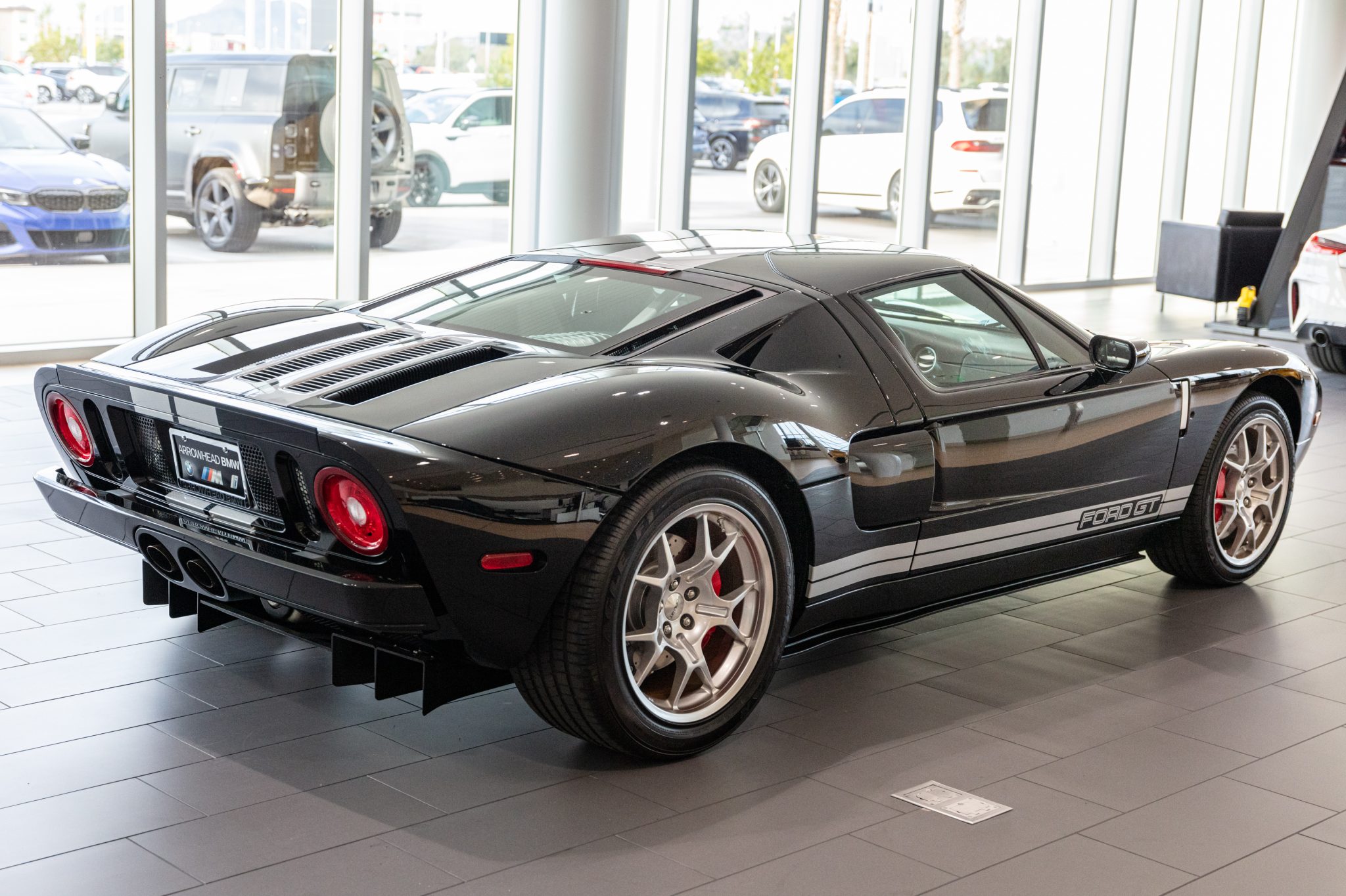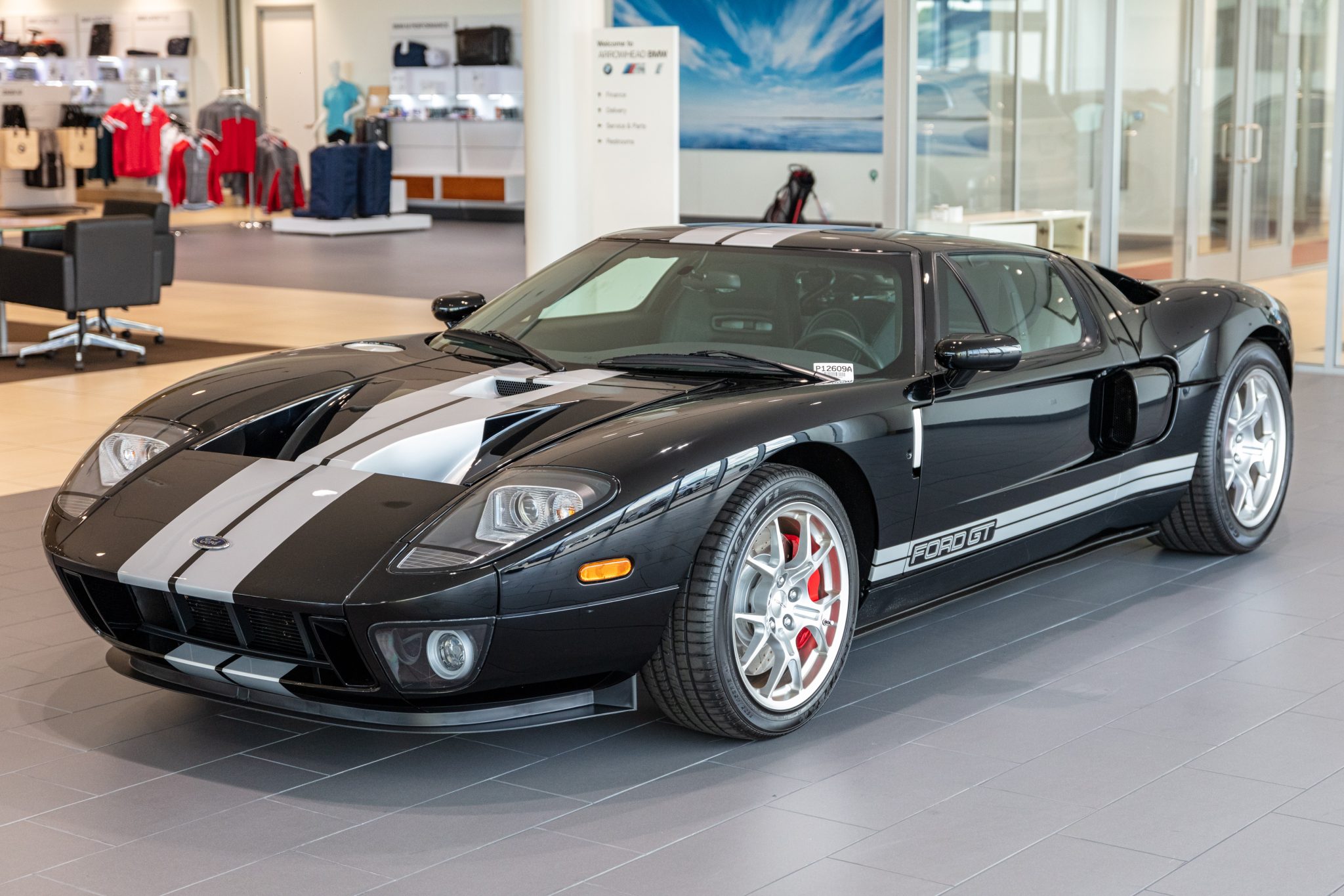 Factory-optional BBS forged alloy wheels measure 18” in diameter up front and 19” out back and are mounted with 235/45 front and 315/40 rear Goodyear Eagle F1 Supercar tires. The Brembo braking system features optional red-painted four-piston monoblock calipers with cross-drilled and ventilated rotors that measure 14” up front and 13.2” out back.