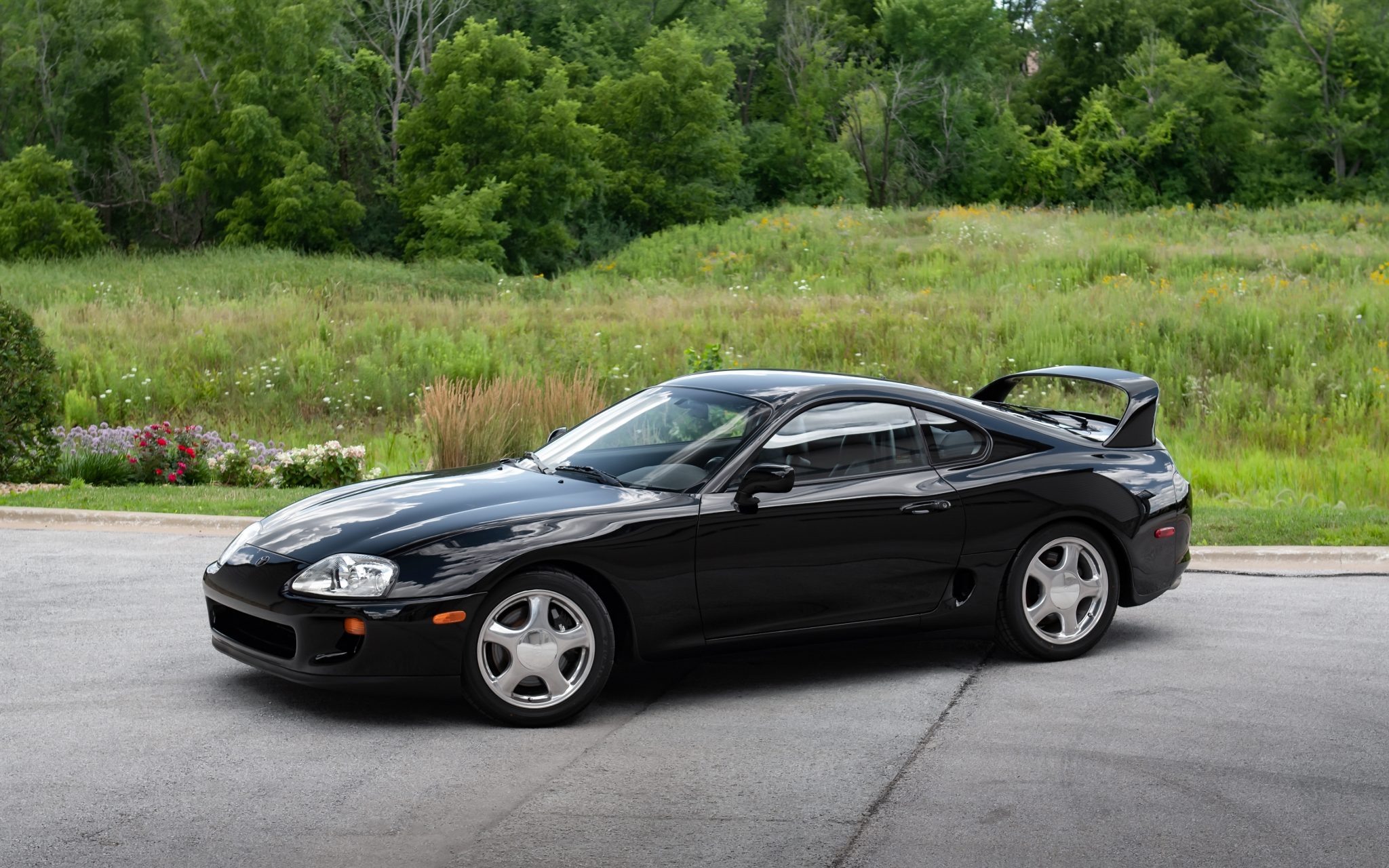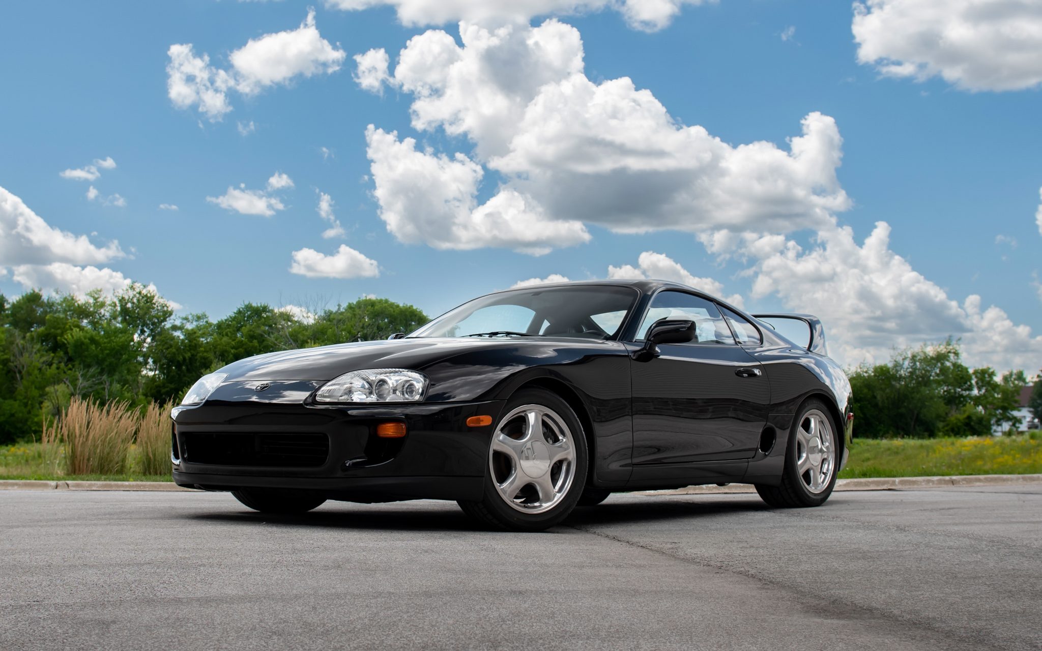 Chrome-finished 17″ alloy wheels are mounted with staggered-width Sumitomo HTR II tires. The car is equipped with Eibach springs as well as traction control, and stopping power is provided by Supra-branded calipers over vented discs at all four corners.