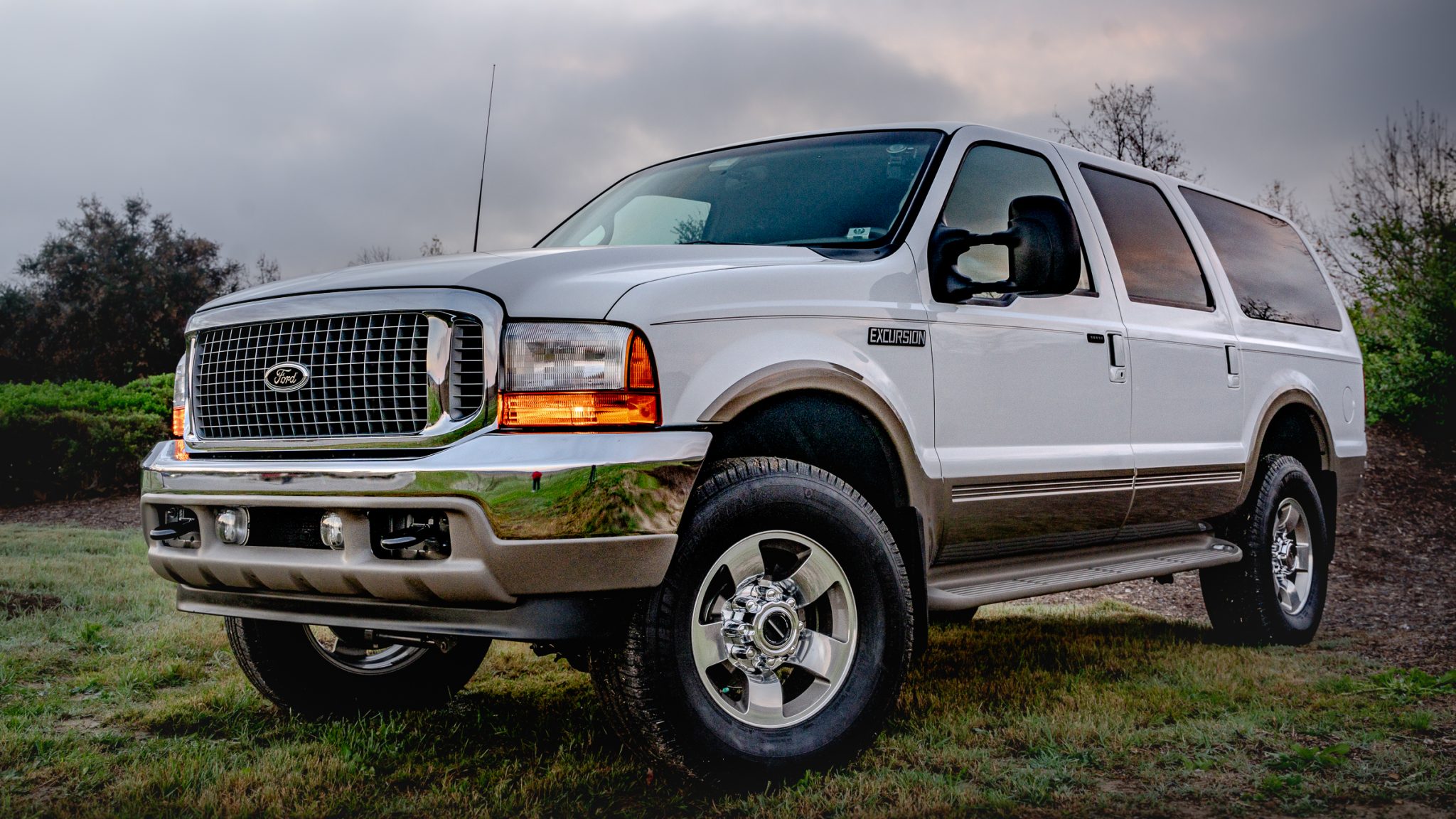 Polished 18″ wheels are mounted with 295/70 Michelin Defender LTX M/S tires that are said to have been installed in 2016. Stopping power is provided by four-wheel antilock disc brakes featuring slotted and cross-drilled rotors. Modifications include F-250-sourced springs, a rear sway bar, and Bilstein dampers.