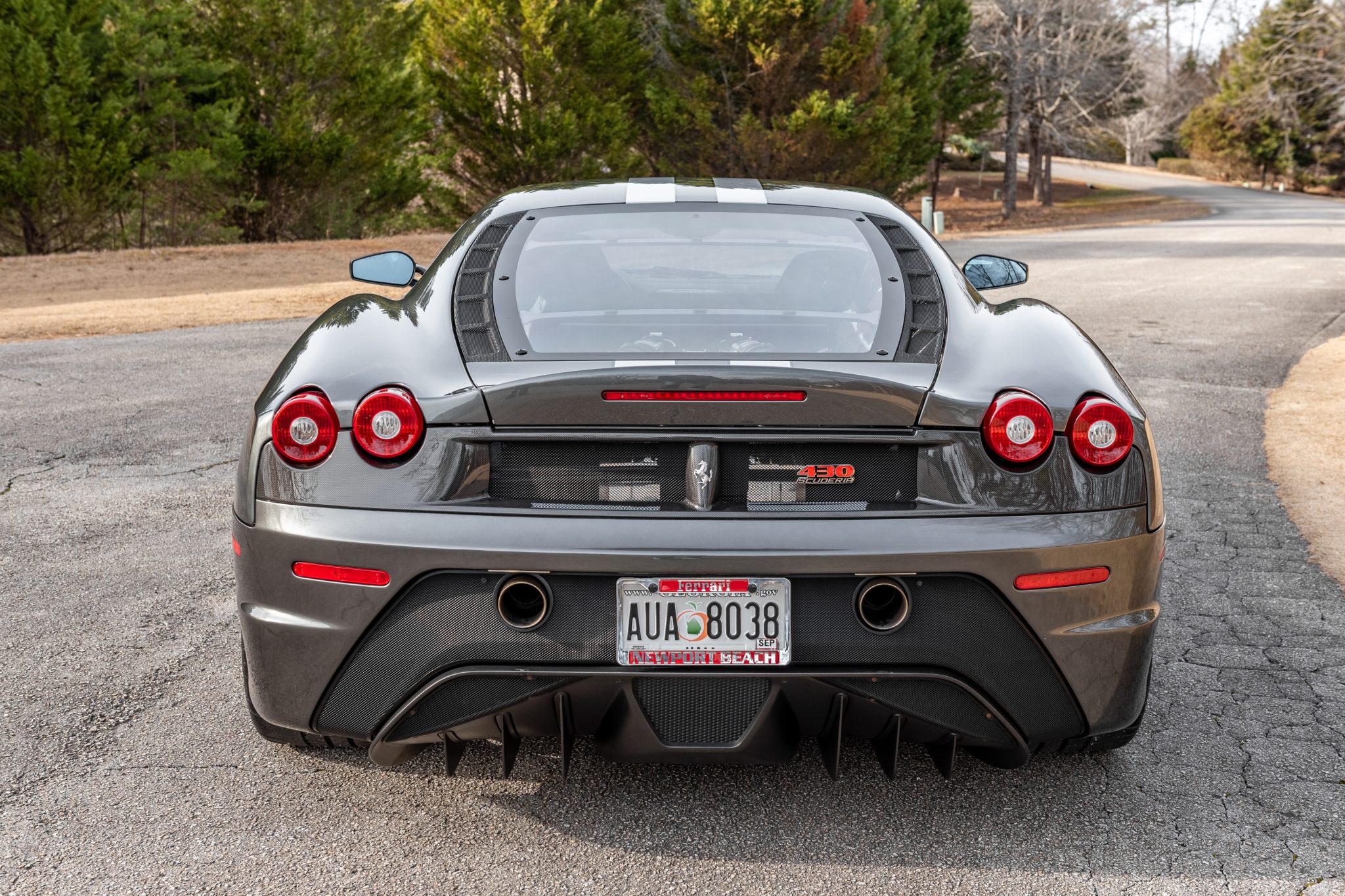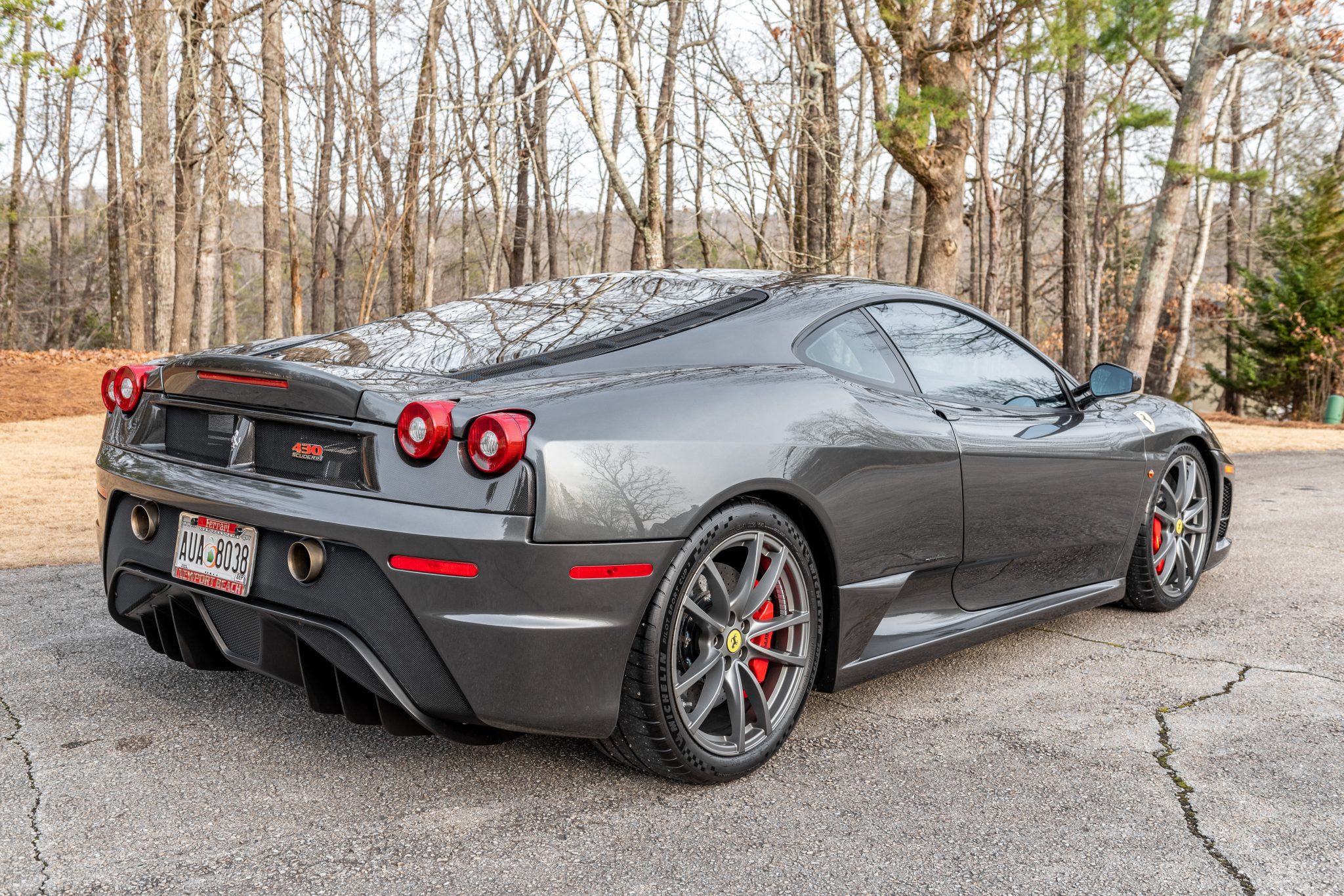 The 19″ Scuderia alloy wheels are wrapped with 235/35 front and 285/35 rear Michelin Pilot Sport Cup 2 tires mounted in October 2022. Braking is handled by red-finished brake calipers fitted over Brembo carbon-ceramic rotors.