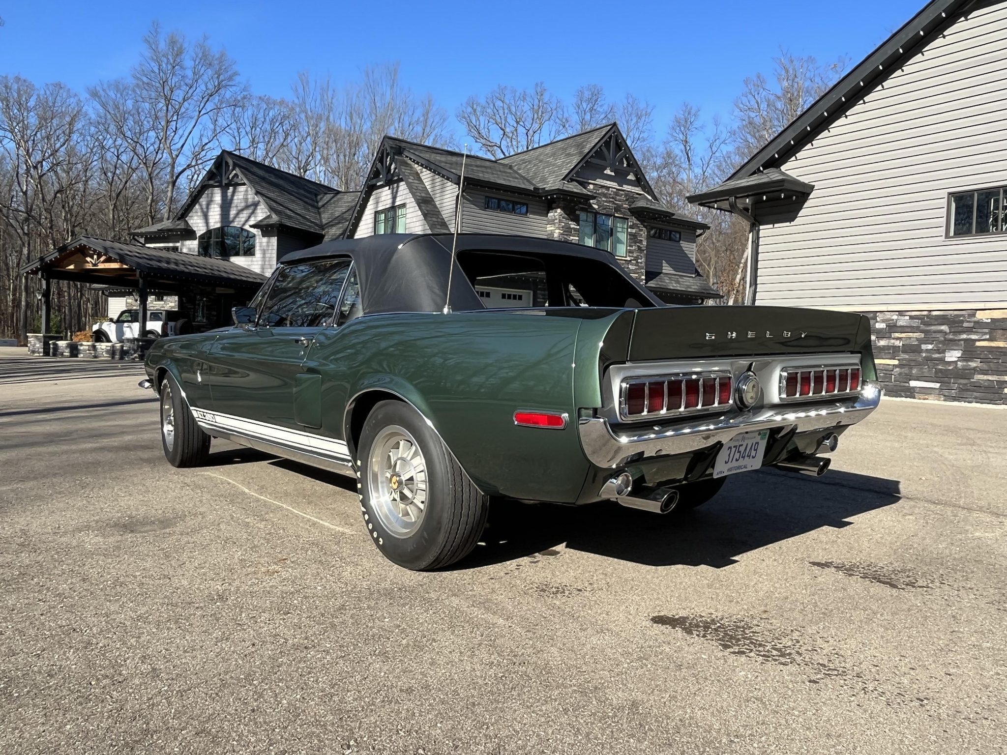 Ten-spoke 15″ wheels wear Shelby Cobra center caps and are mounted with F70-15 Goodyear Speedway white-letter tires. The car is equipped with power steering and braking is handled by power-assisted front discs and rear drums.