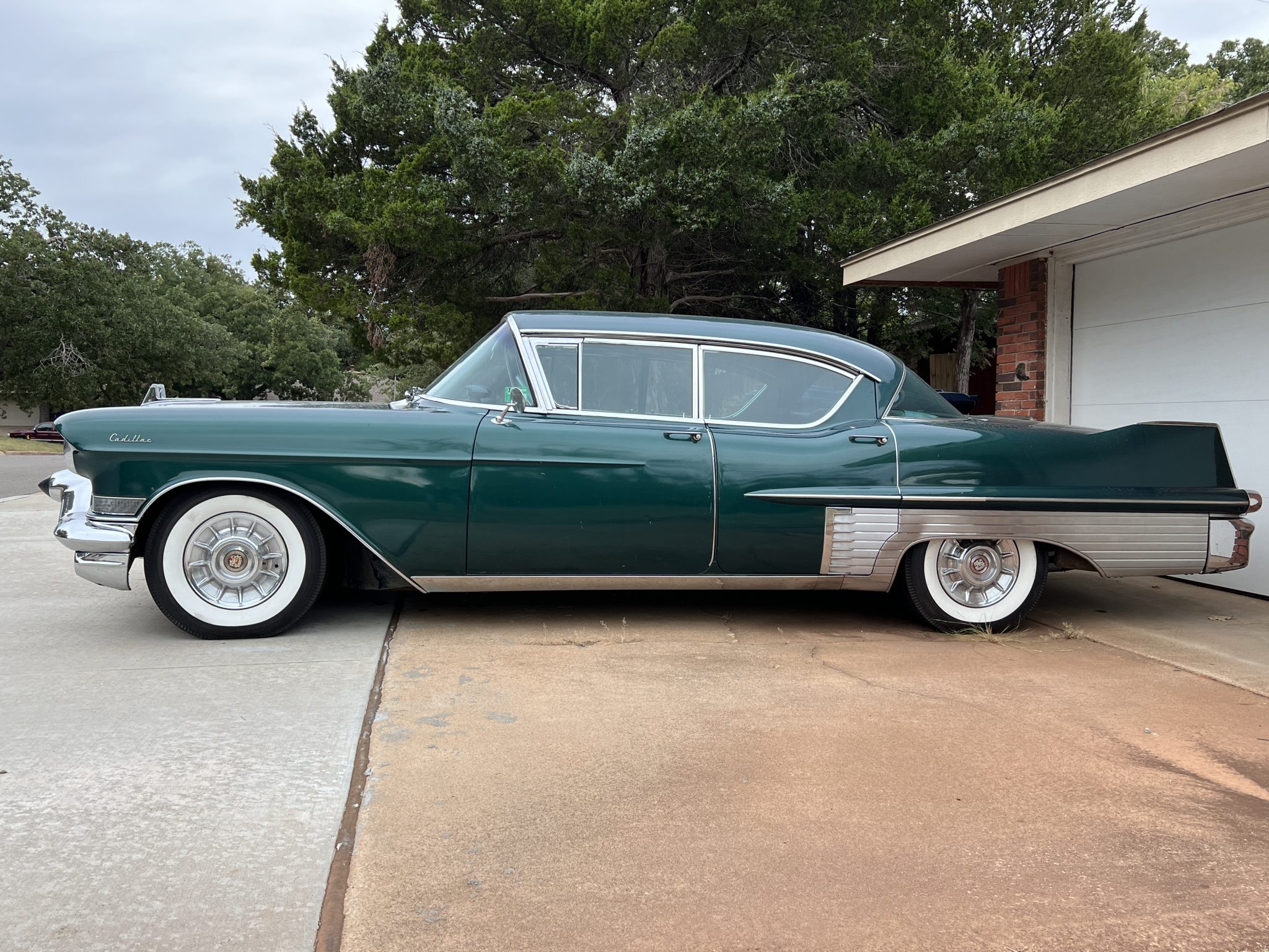 Steel wheels are fitted with full covers and wear 15″ Diamond Back Classic wide-whitewall tires that were reportedly mounted under current ownership. The car features independent front and four-link rear suspension with coil springs all around. Braking is managed by four-wheel power-assisted drums, and the selling dealer states the system was overhauled in 2022.