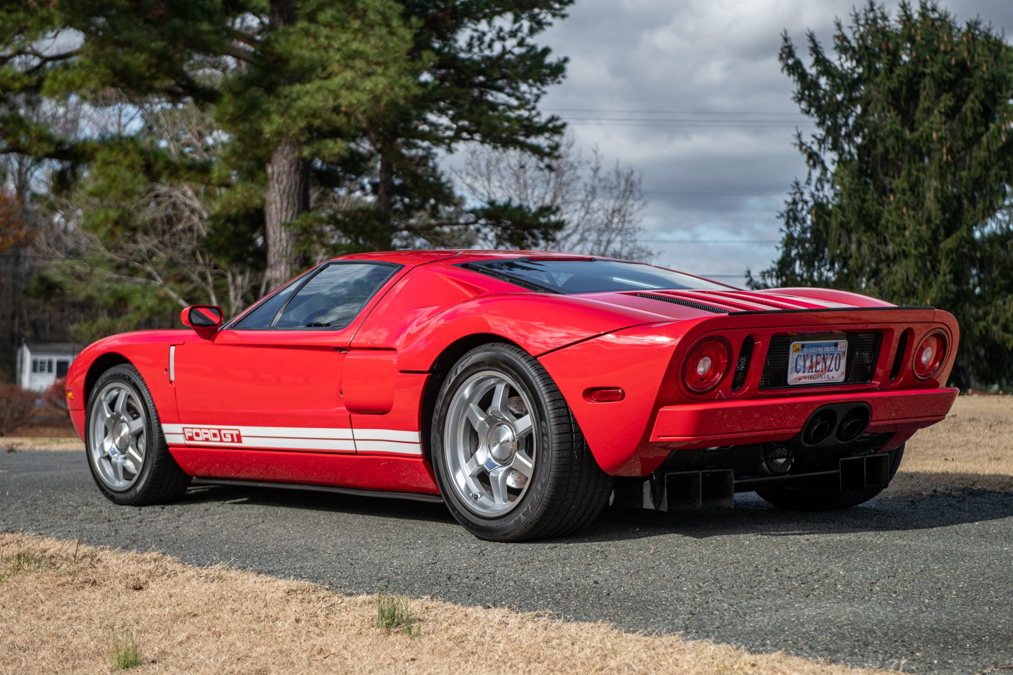 Cast aluminum wheels measure 18″ up front and 19″ out back and are mounted with 235/45 front and 315/40 rear Goodyear Eagle F1 Supercar tires. The Brembo braking system features four-piston monoblock calipers with cross-drilled and ventilated rotors that measure 14” up front and 13.2” out back. The seller states that the rear dampers were replaced in March 2018.