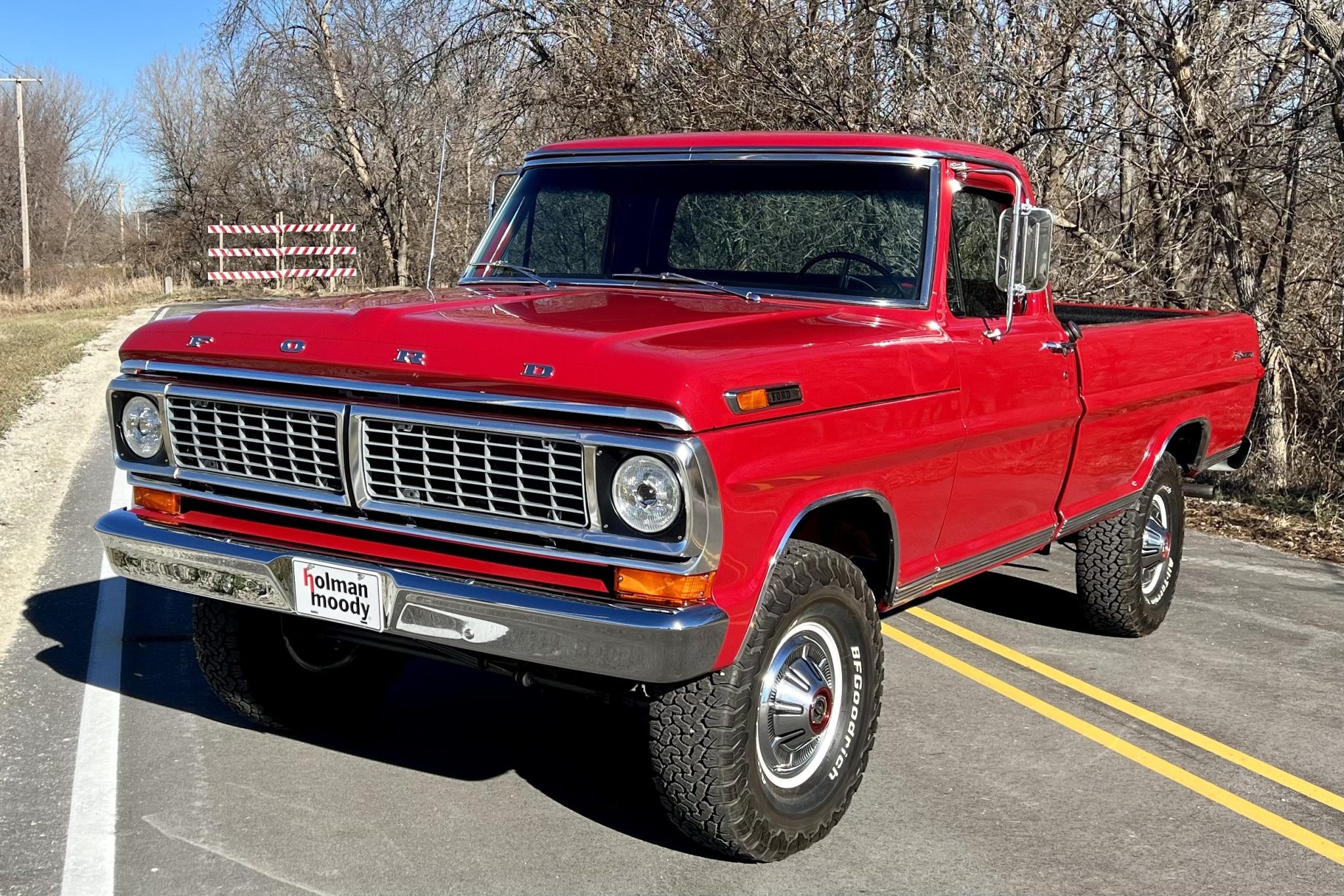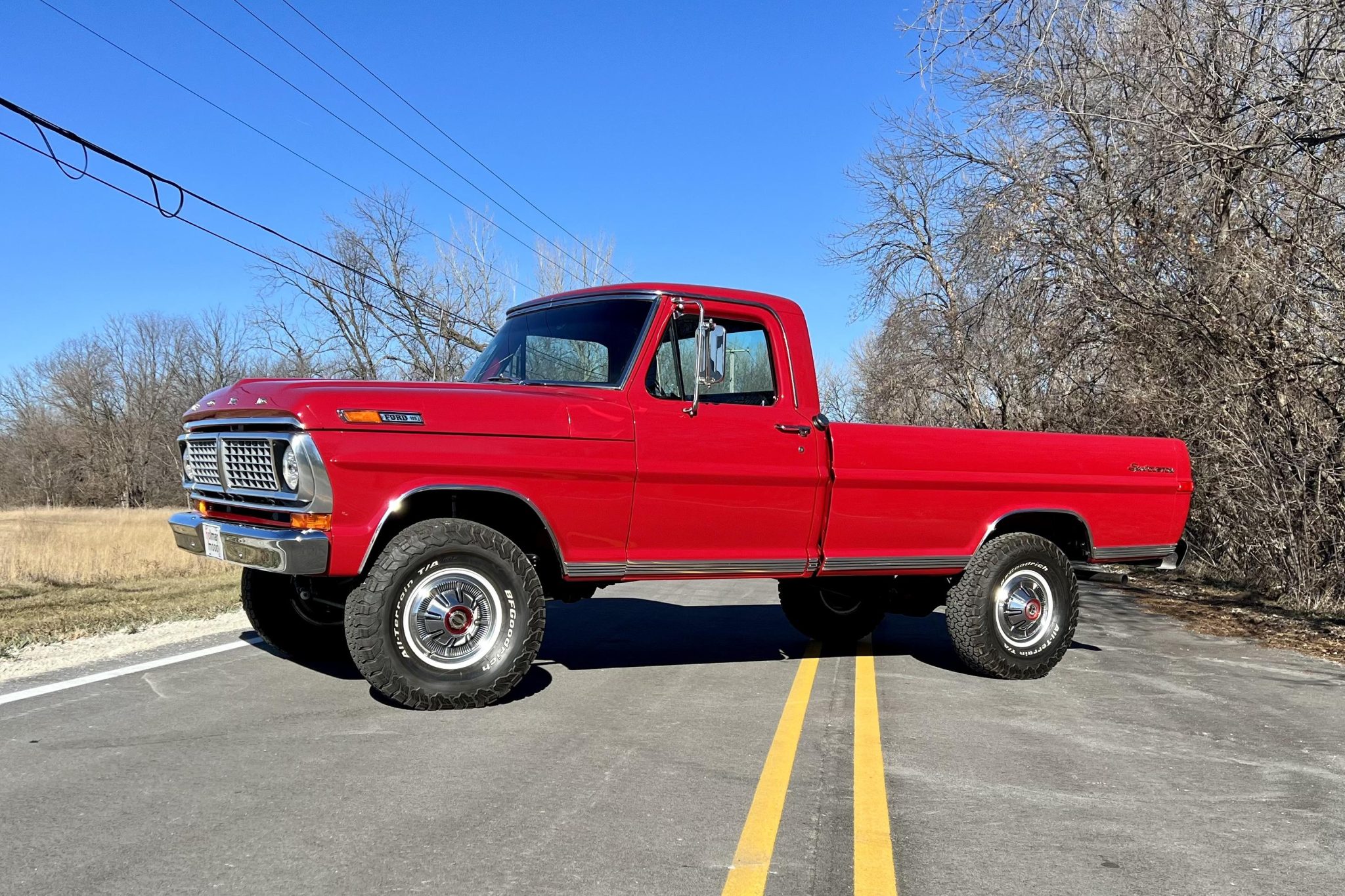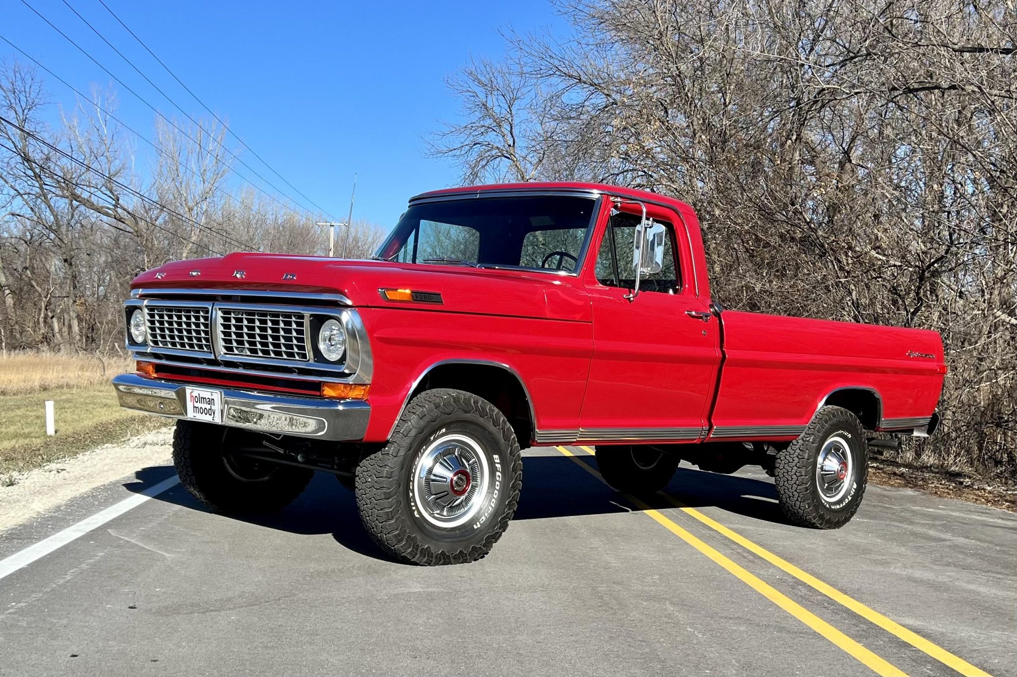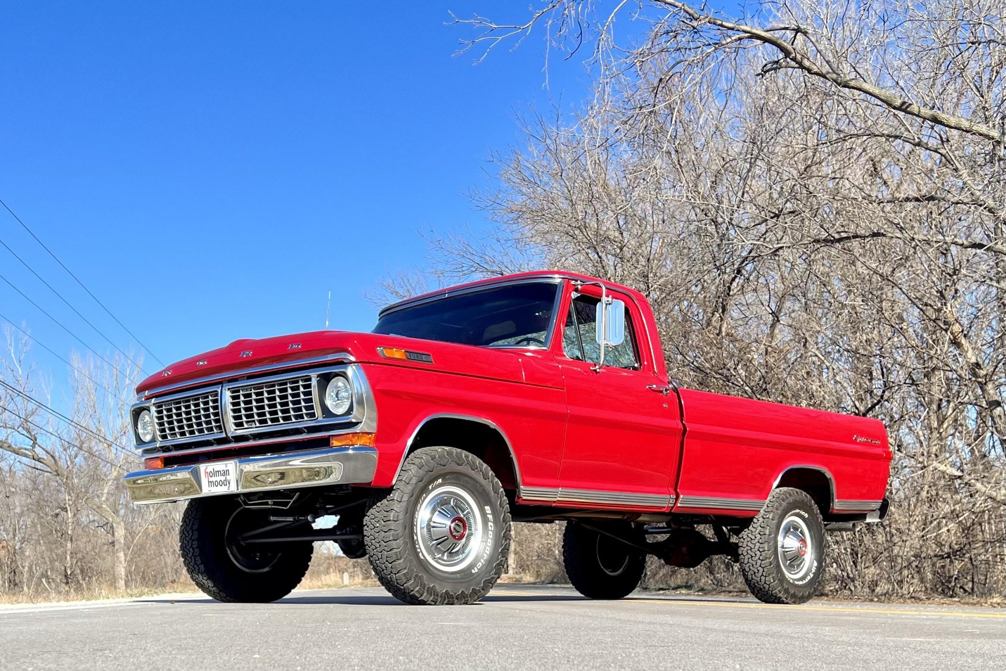 The 15″ steel wheels wear polished covers and are mounted with 33×10.5″ BFGoodrich All-Terrain T/A KO2 tires. The truck is equipped with power steering, Warn manually locking front hubs, and Bilstein shock absorbers. Stopping power is provided by power-assisted front disc and rear drum brakes.