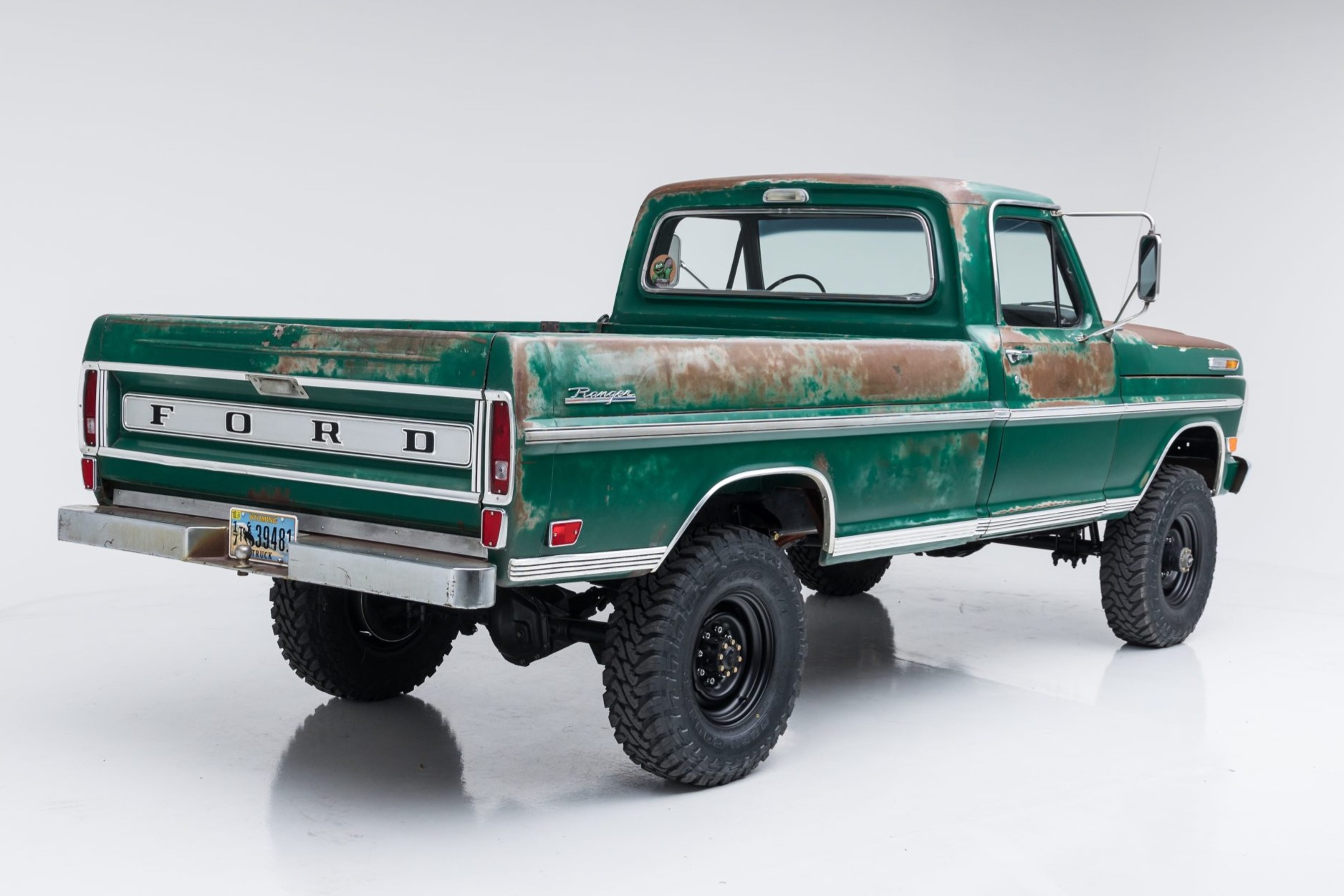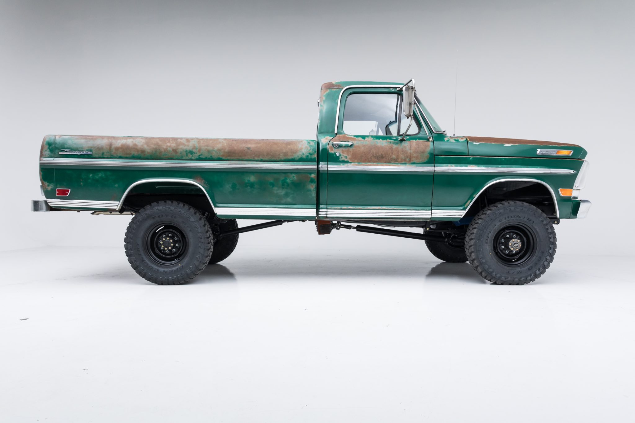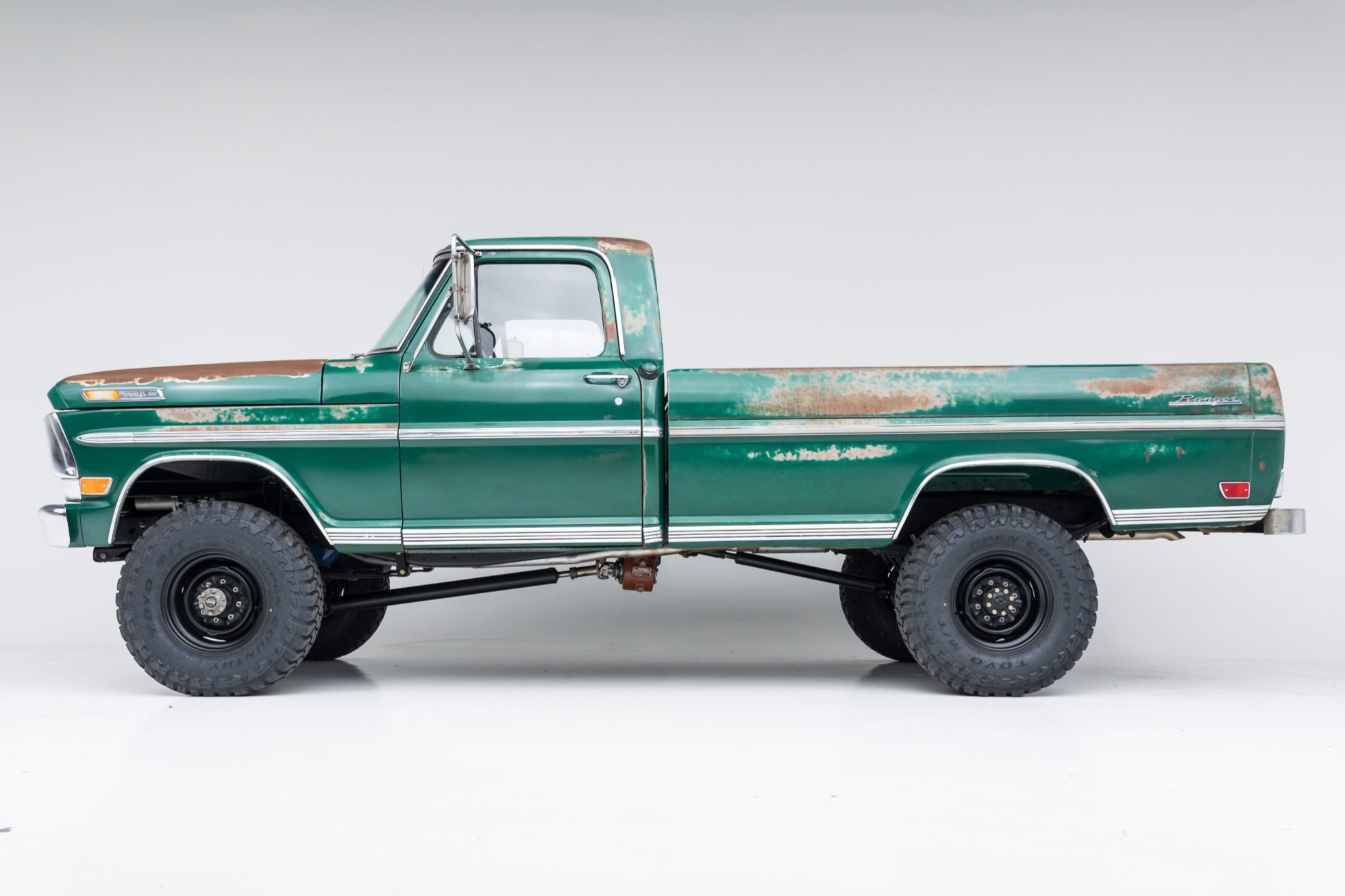 Satin black powder-coated 16″ steel wheels are mounted with 255/85 Toyo Open Country M/T tires. A later-model power steering system and power brakes were installed under current ownership.