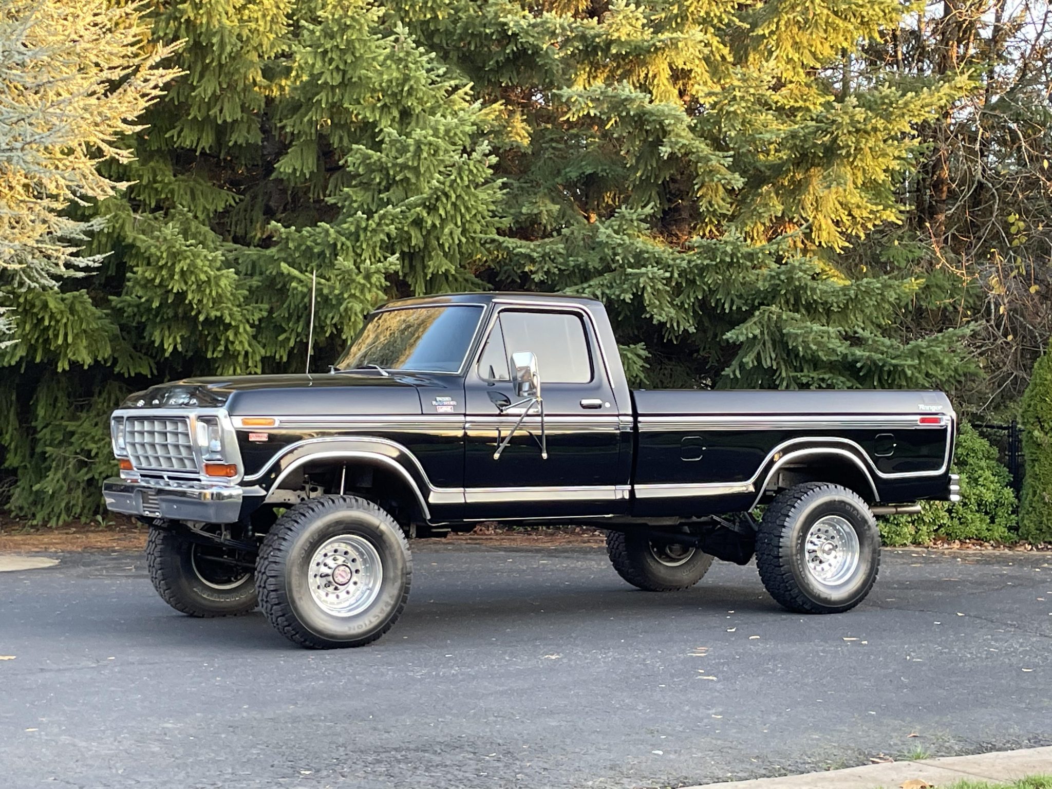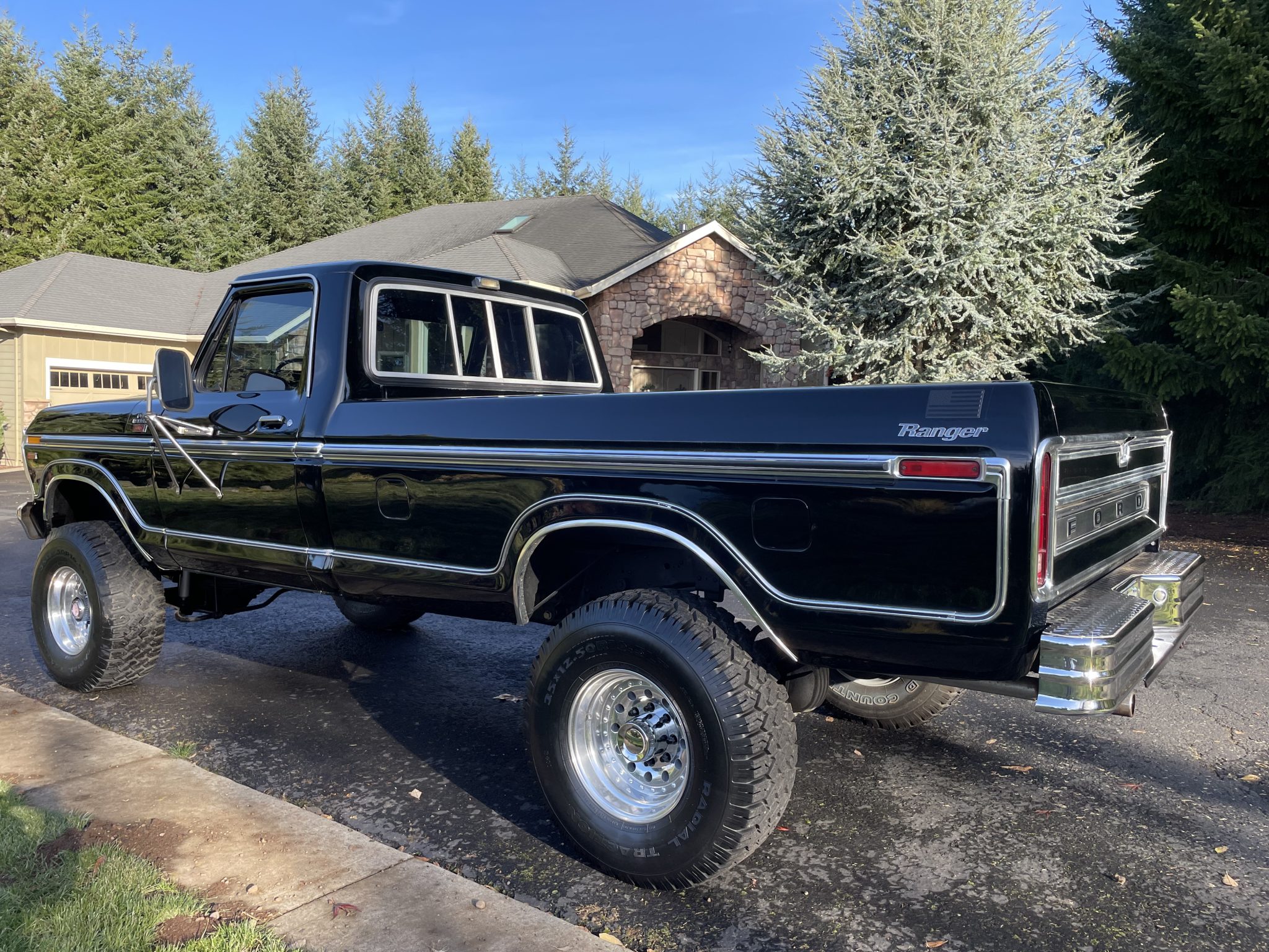 Alloy 16.5″ wheels are wrapped in 35×12.5″ Wild Country Radial TXR tires. The truck is equipped with power steering, locking front hubs, a 4″ suspension lift kit, Rough Country shocks,, polyurethane suspension bushings, and front and rear sway bars. Braking is handled by power-assisted front discs and rear drums. The seller states that the front brake calipers, pads, and rear wheel cylinders have been replaced, along with the steering drag link and leaf springs.