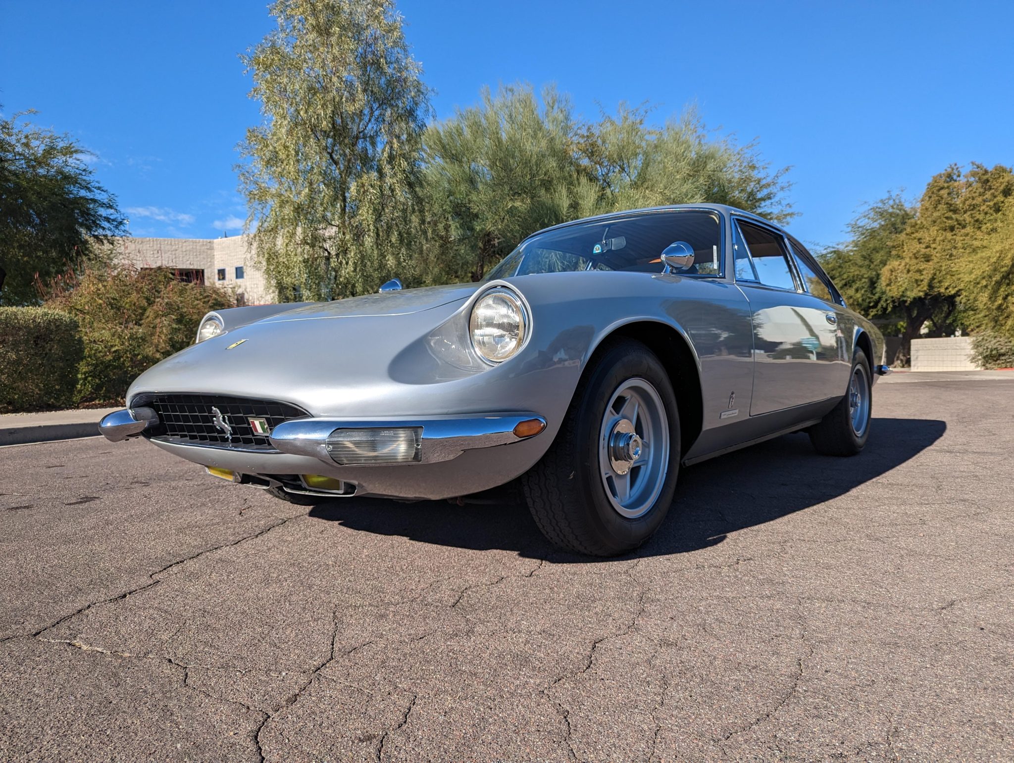The 15″ five-spoke wheels wear Borrani knock-off hubs and are mounted with 215/70 Vredestein Sprint Classic tires. The 365 GT 2+2 model was the first Ferrari 2+2 offered with an independent rear suspension, and this example’s factory rear self-leveling system was removed in favor of Koni coilovers. Power-assisted four-wheel disc brakes were standard equipment, as was power steering.