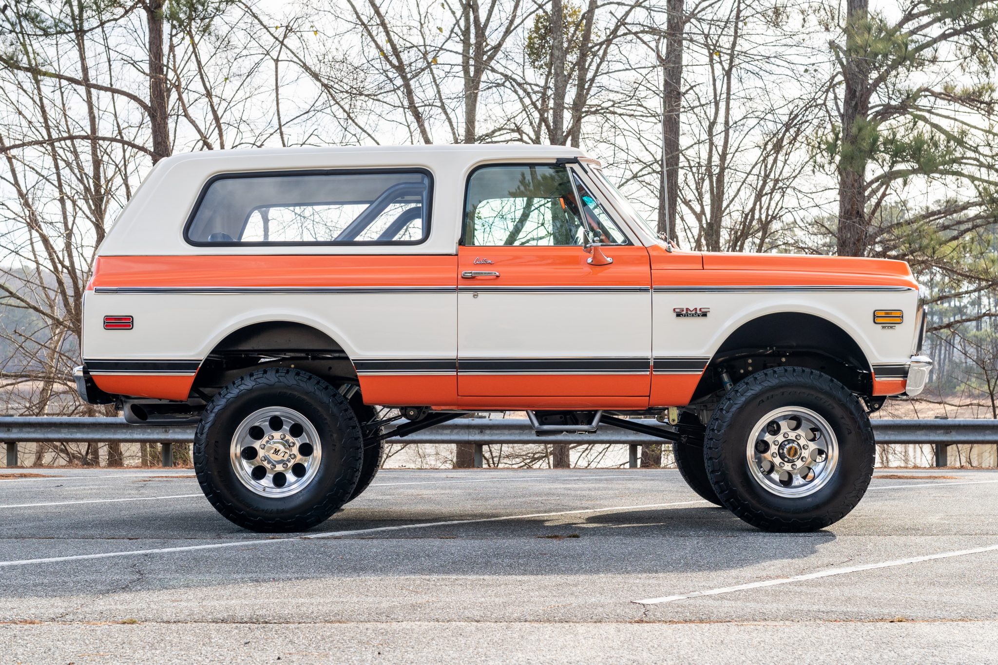 Polished 17″ Mickey Thompson MT3 Classic alloy wheels are mounted with 35×12.5″ BF Goodrich K02 tires. The suspension was modified with a Tuff Country EZ Ride 4″ lift up front and 6″ lift out back with custom-length Bilstein shocks. The brake system is said to have been fitted with a Hydroboost system and overhauled with replacement front calipers, pads, rotors, seals and bearings, along with rear drums, shoes, wheel cylinders, and seals. According to the seller, a Red-Head power steering gearbox was installed, custom lines were added, and the steering components were refreshed.