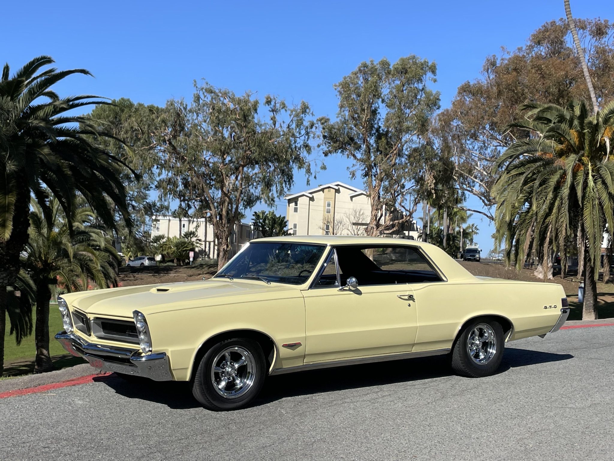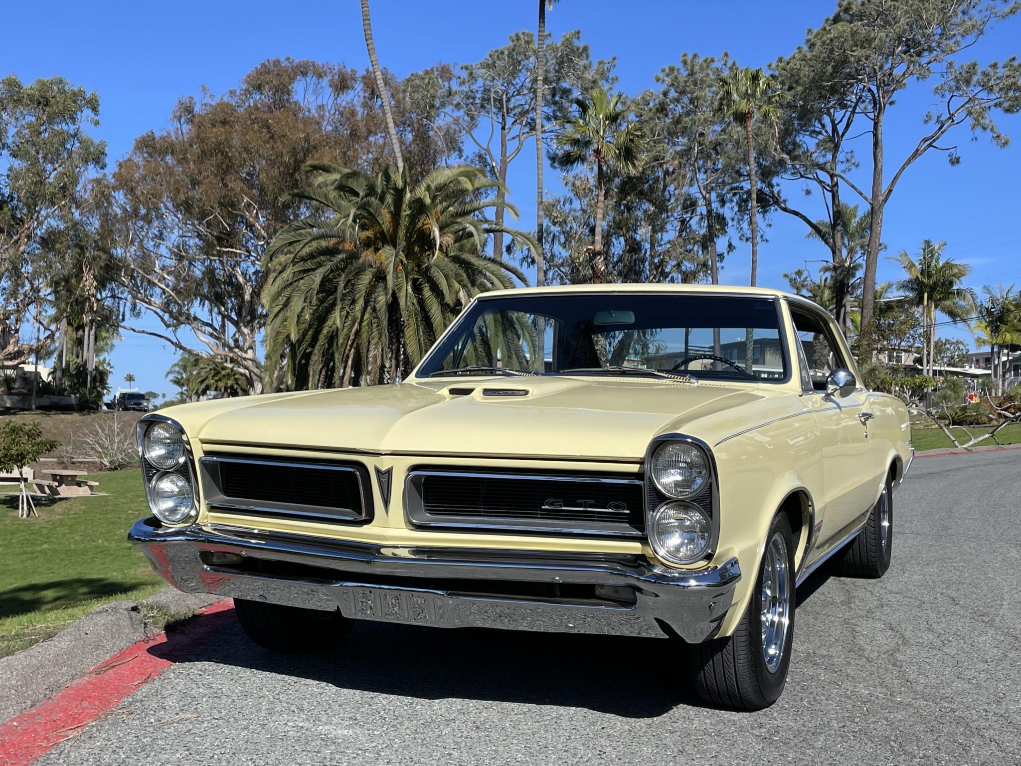 The 15″ American Racing wheels are mounted with Accelera Eco Plush front and Dayton Daytona SR rear tires. A full-size spare is mounted in the trunk. Braking is handled by unassisted drums at all four corners. A rebuilt steering box was installed in 2022, and the selling dealer notes that the car requires an alignment.