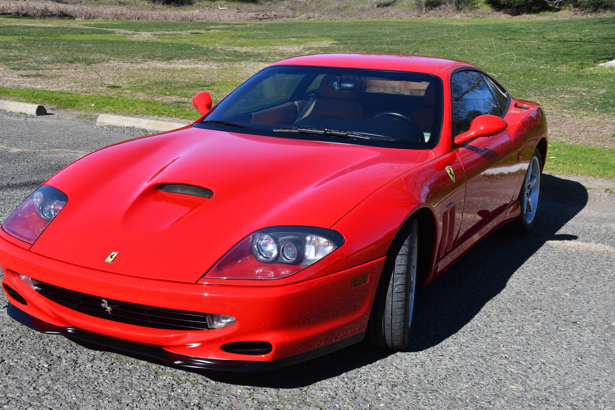 The 18″ five-spoke alloy wheels are mounted with Michelin Pilot Super Sport tires that were installed in August 2021 and measure 255/40 up front and 295/35 out back. Braking is handled by black-finished Ferrari-branded calipers over cross-drilled and ventilated rotors at all four corners. The front rotors and pads were replaced in 2019, and the seller states that the left-rear wheel was replaced after it fell off while driving and caused damage to the brake caliper. The wheels are said to have been refinished in 2006.