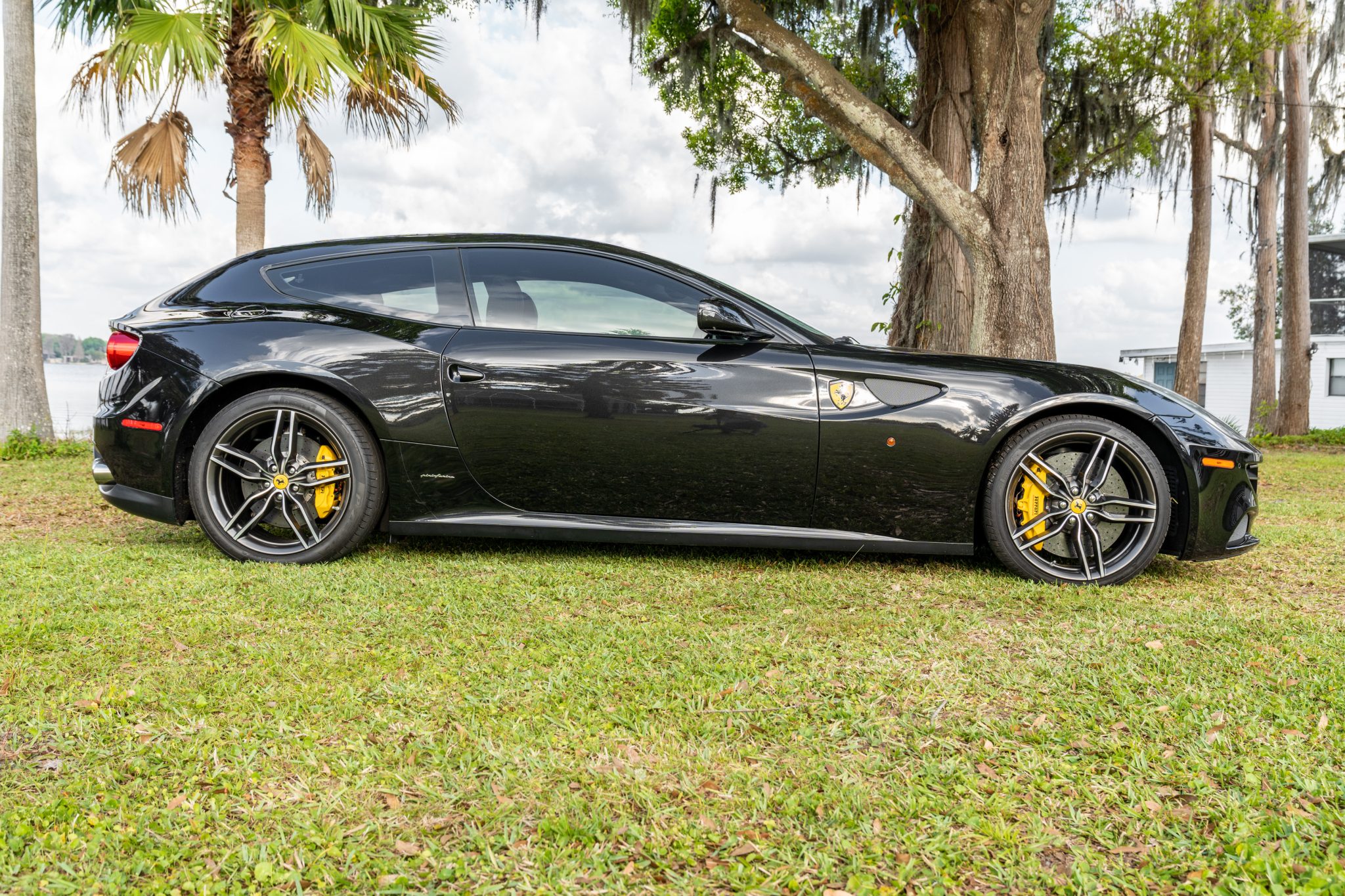 Optional 20″ forged diamond-cut wheels are mounted with Pirelli P Zero tires measuring 245/35 up front and 295/35 out back. Braking is handled by yellow Ferrari-branded Brembo calipers over carbon-ceramic rotors, and the car is equipped with magnetorheological dampers and an optional front-end suspension lift system.