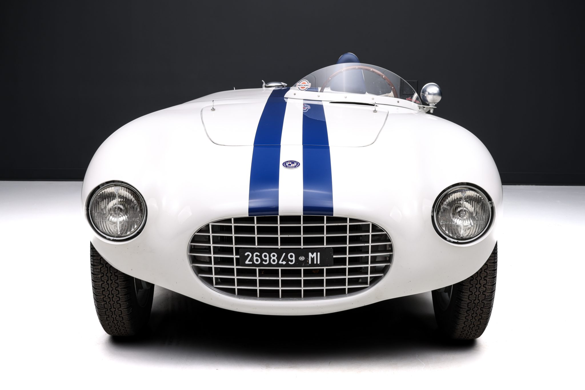Metal repairs performed in 2005 by Highland Automotive in in Highland, New York, are said to have included the fabrication of replacement floor and inner panels as well as work to return previously widened rear fenders to their 1950s configuration. A non-louvered hood skin was fabricated during the refurbishment under subsequent ownership, which also included a repaint in a white and blue livery replicating that worn by the car in Italy in the 1950s.