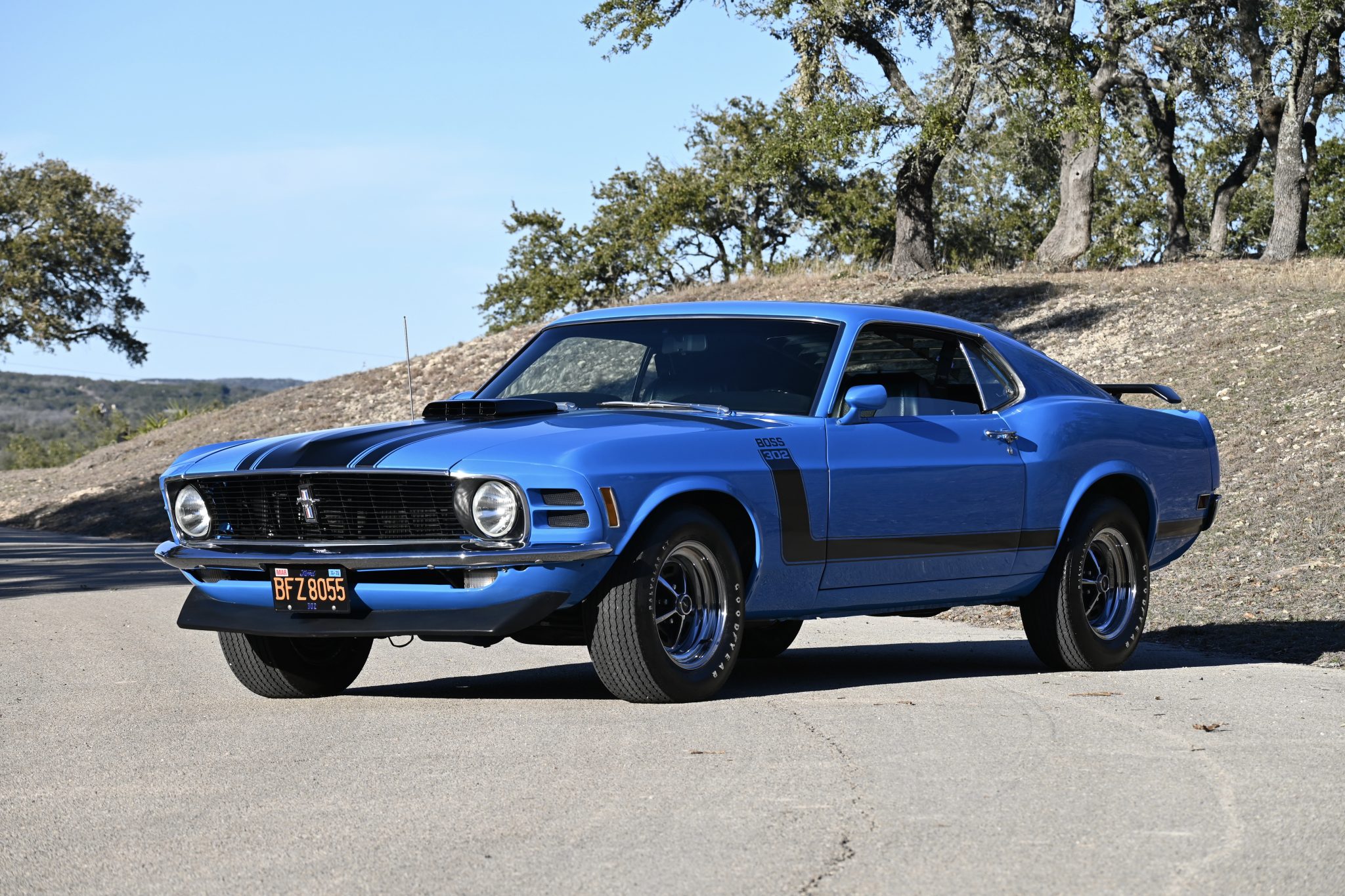 Magnum 500-style 15″ wheels are mounted with F60-15 reproduction Goodyear Polyglas GT white-letter tires. A space-saver spare is housed in the trunk. Power-assisted front disc brakes were standard equipment on the 1970 Boss 302.