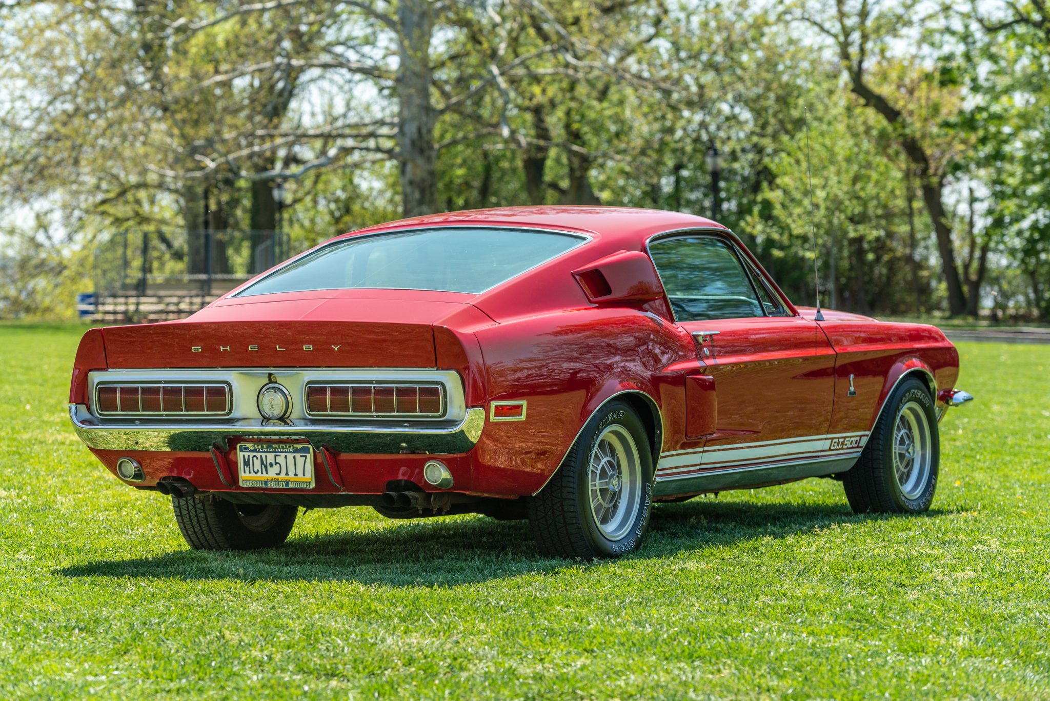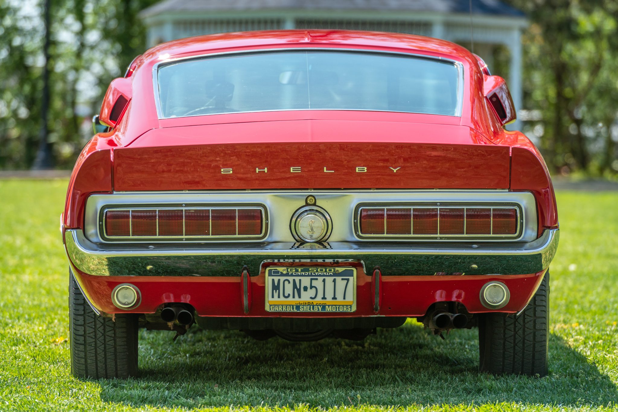Ten-spoke 15″ wheels wear Shelby Cobra center caps and are mounted with 215/65 Goodyear Eagle GT+4 white-letter tires. A space-saving spare is mounted in the trunk. The car is equipped with power steering, and braking is handled by power-assisted front discs and rear drums. The front shock absorbers are said to have been replaced under current ownership.