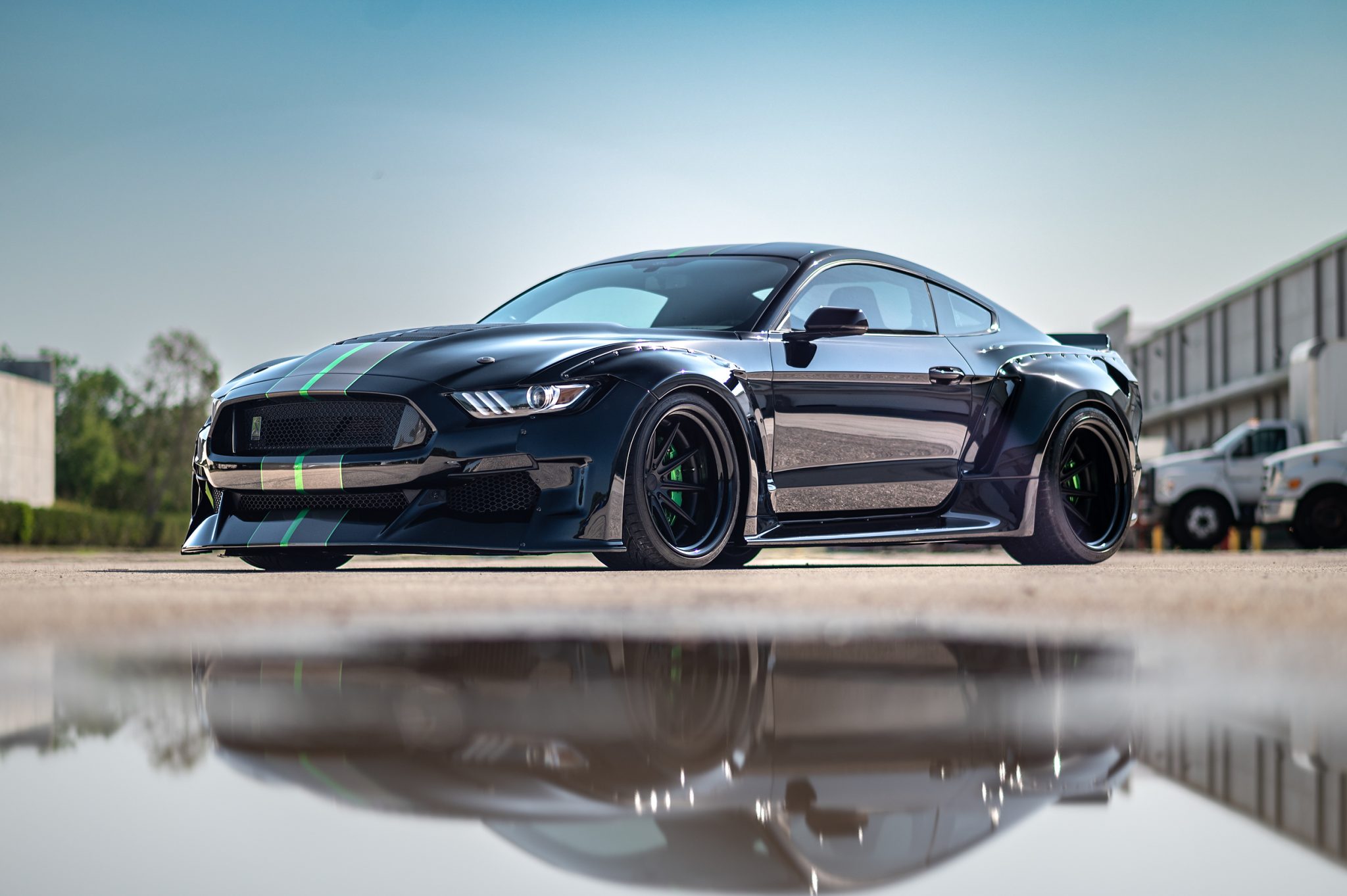 Black-painted 20″ ten-spoke Vossen wheels are mounted with a mixture of Toyo and Michelin tires. Braking is handled by green-painted six-piston front and four-piston rear Brembo brake calipers. The car is equipped with an aluminum front strut tower brace, and an Air Lift Performance air suspension system has been added.